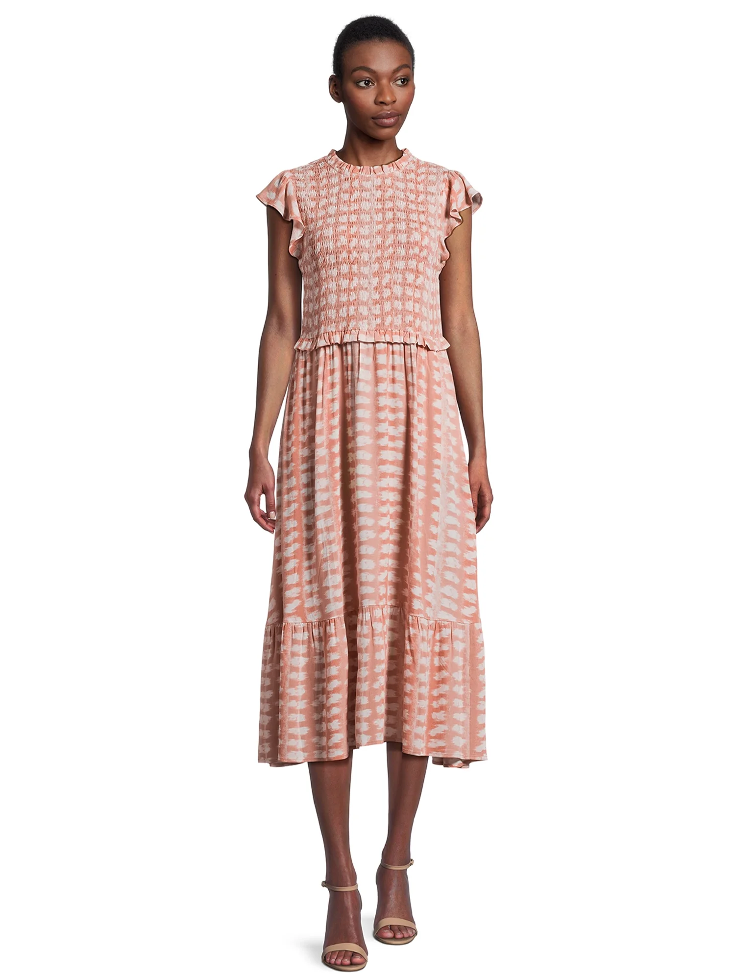 Time and Tru Women's Smocked Bodice Midi Dress, Sizes XS-XXXL
