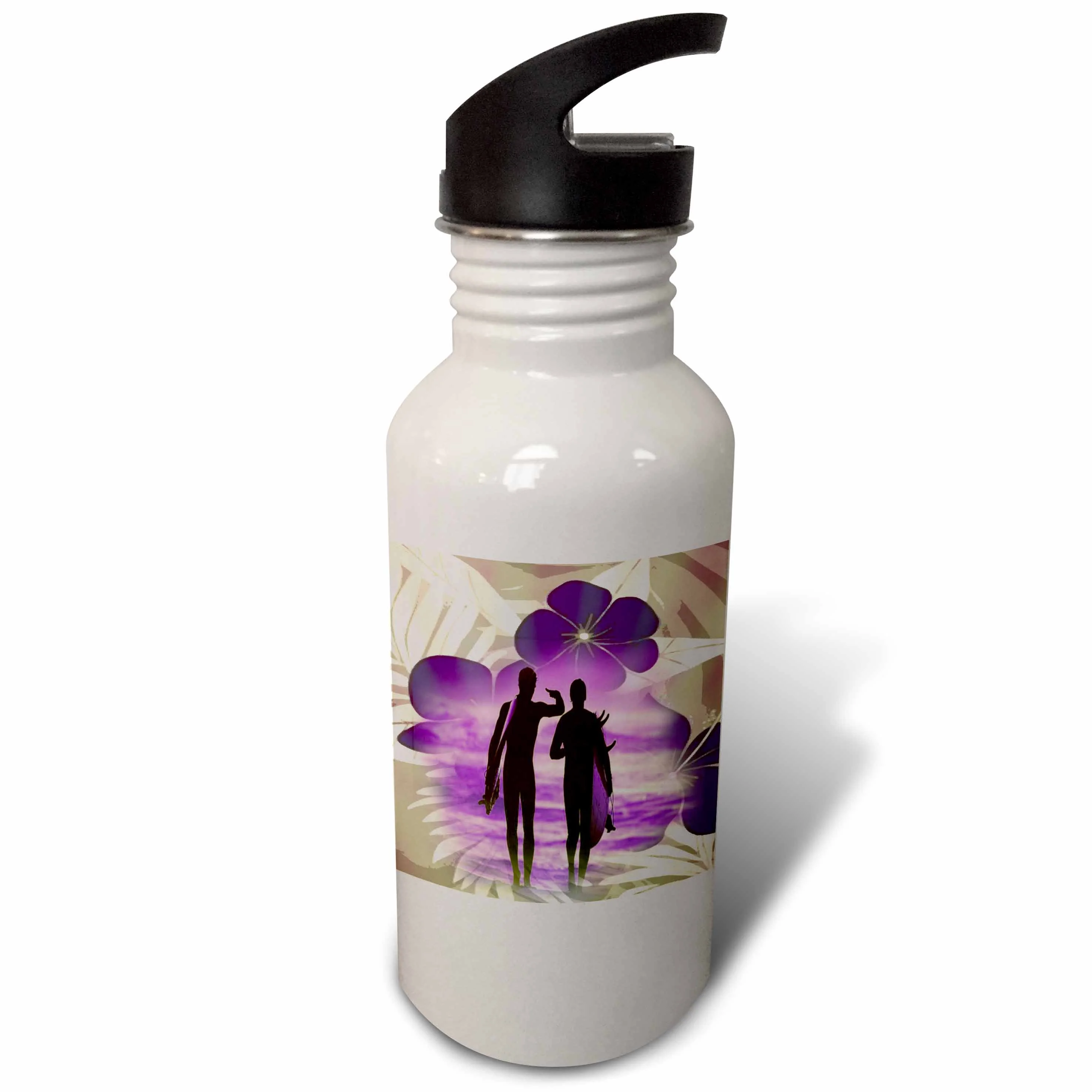 Hawaiian Surf print and surfers in silhouette walking to the surf 21 oz Sports Water Bottle wb-52245-1