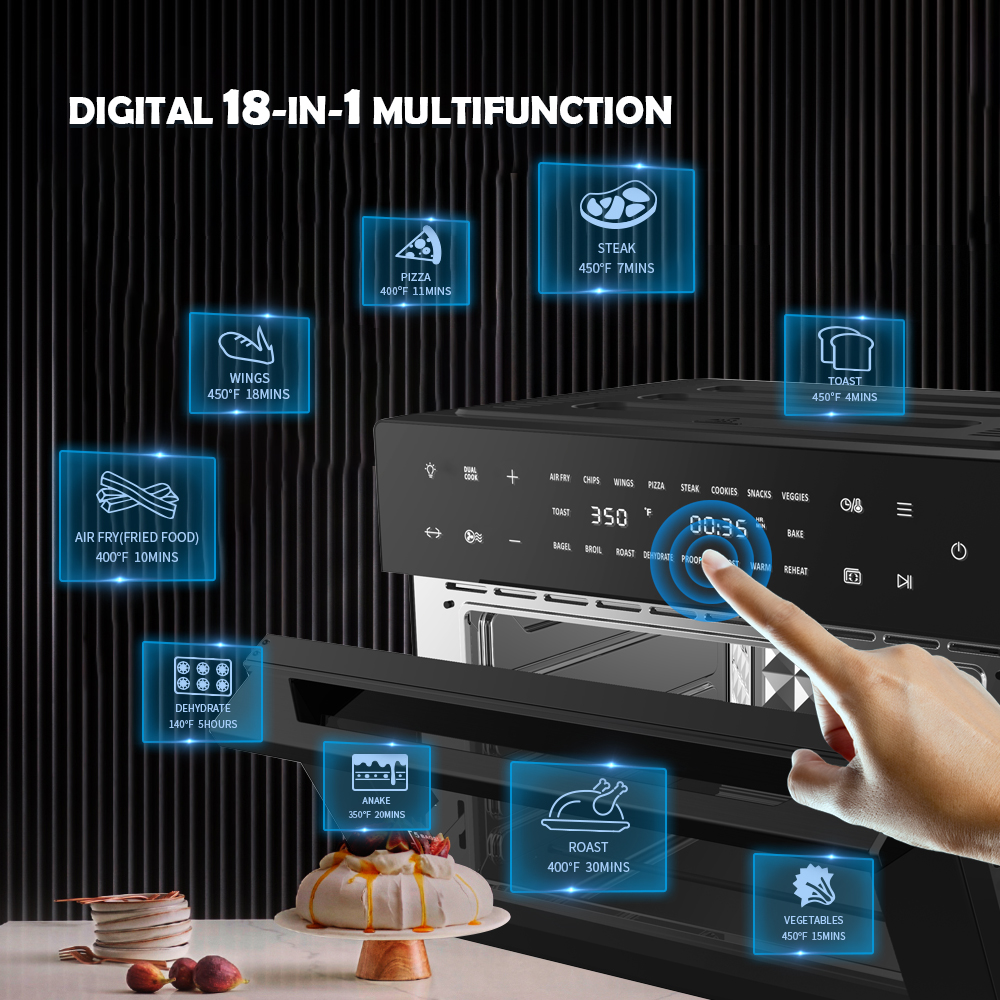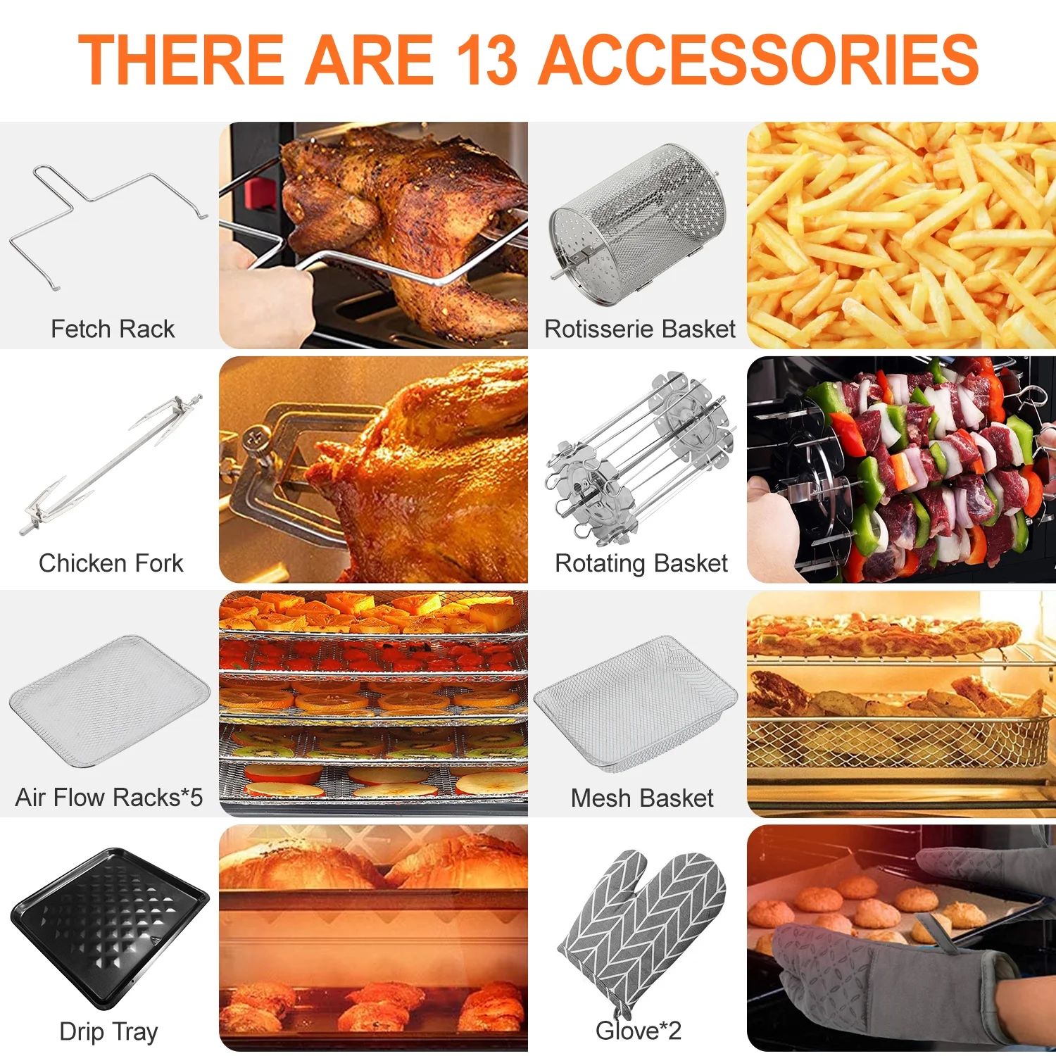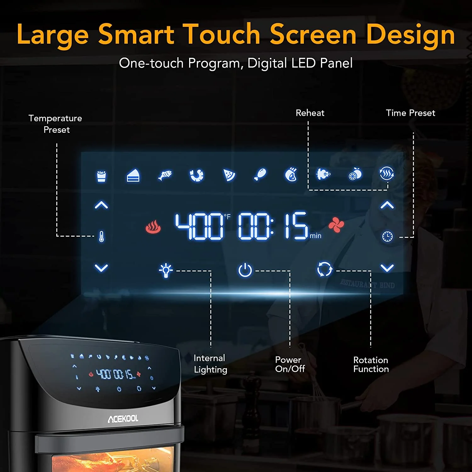 15 qt. Black 16-in-1 Digital Air Fryer Oven with Rotisserie and Dehydrator
