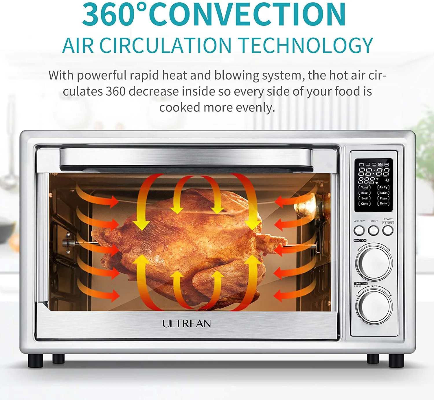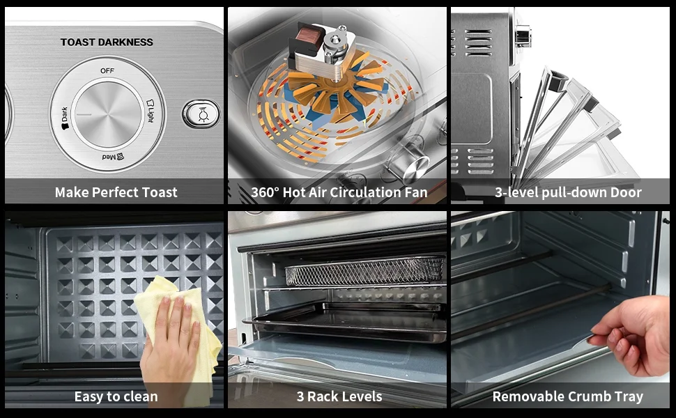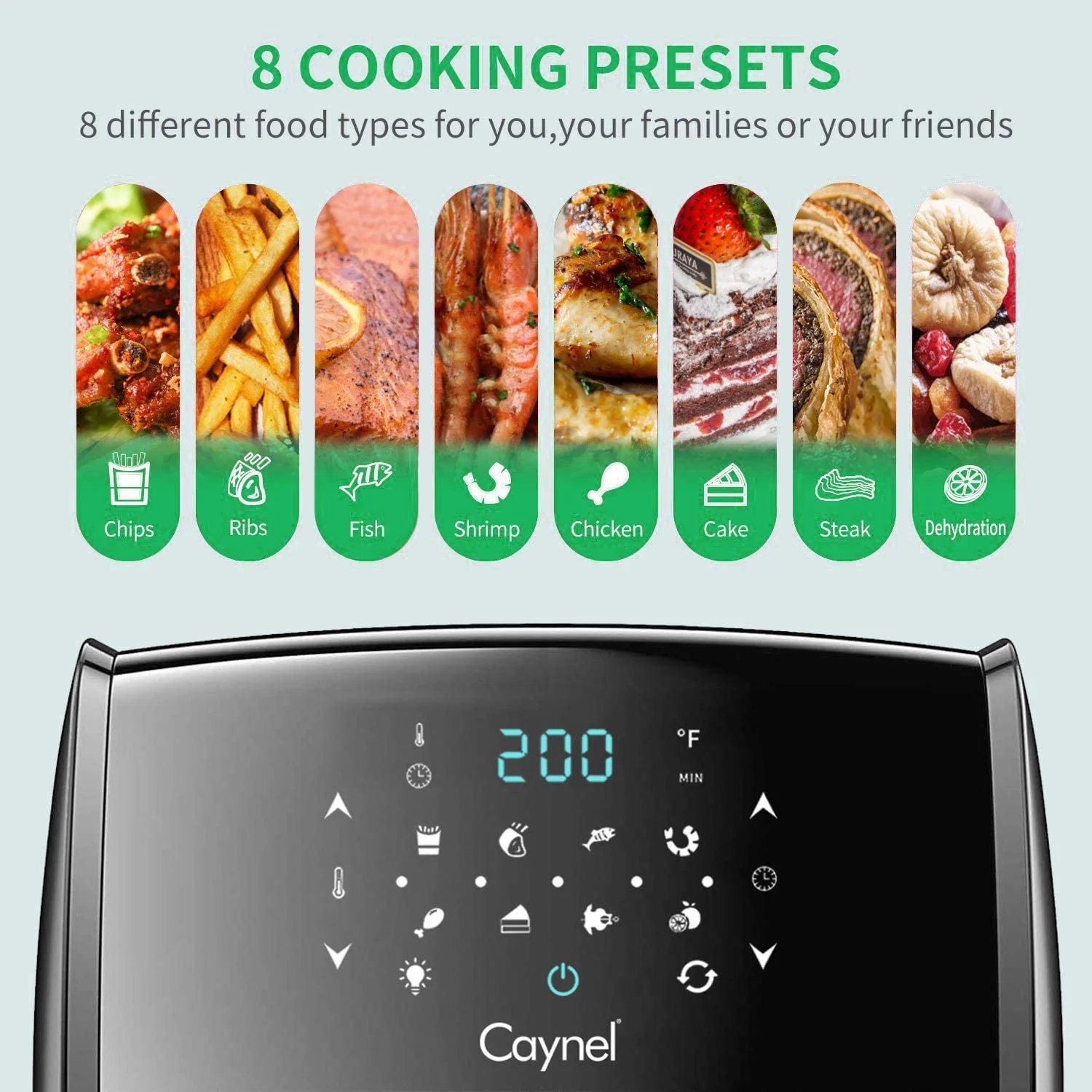 Caynel 8-in-1 Digital Air Fryer Oven 12.7 Qt Countertop Oven, Rotisserie, Dehydrator, Black