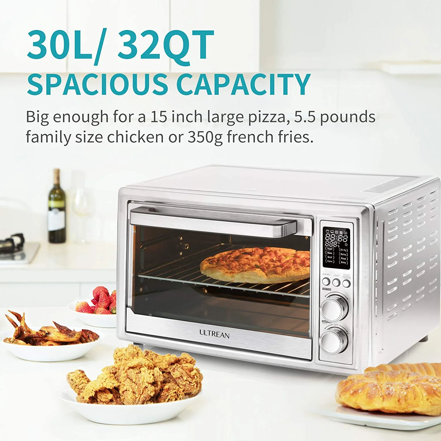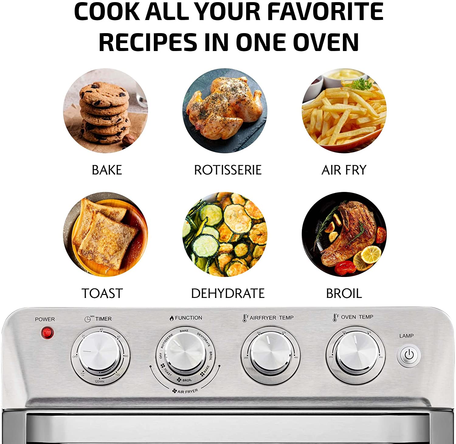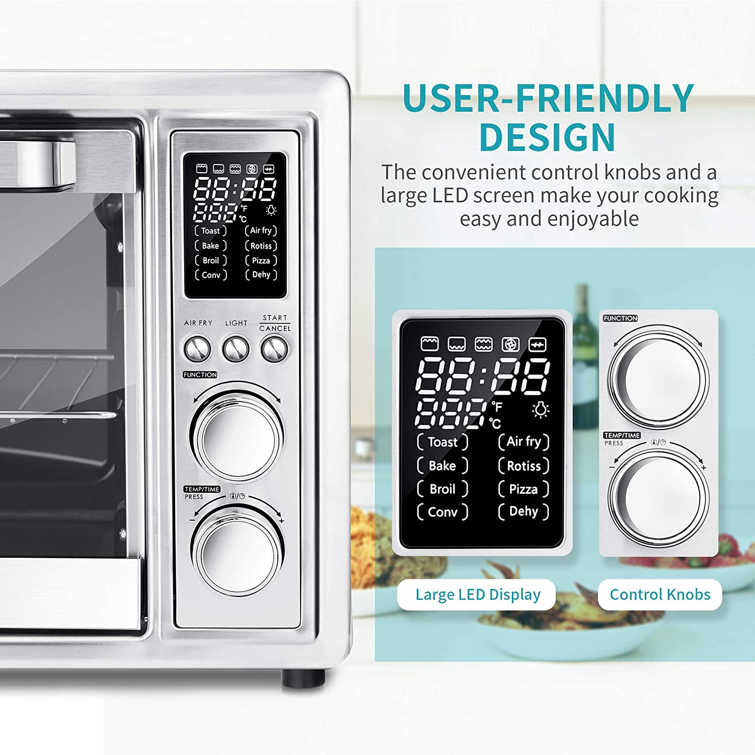 Caynel 8-in-1 Digital Air Fryer Oven 12.7 Qt Countertop Oven, Rotisserie, Dehydrator, Black