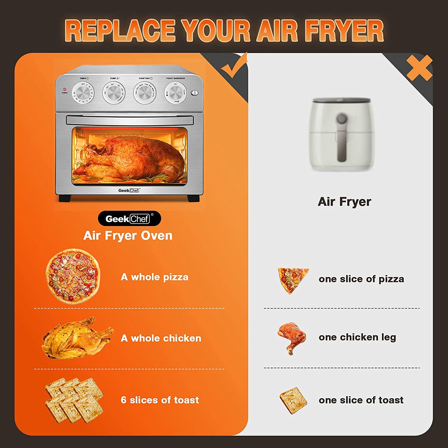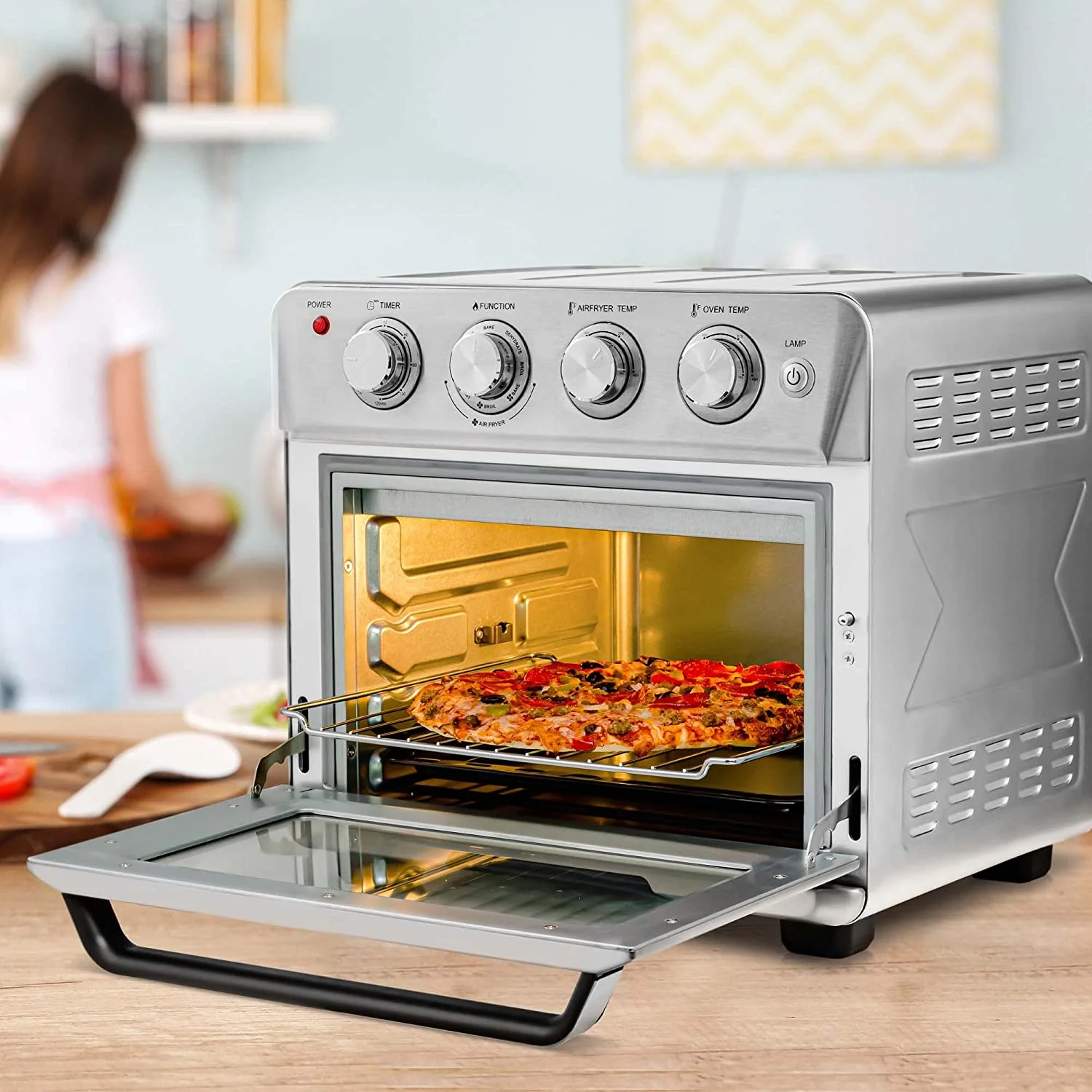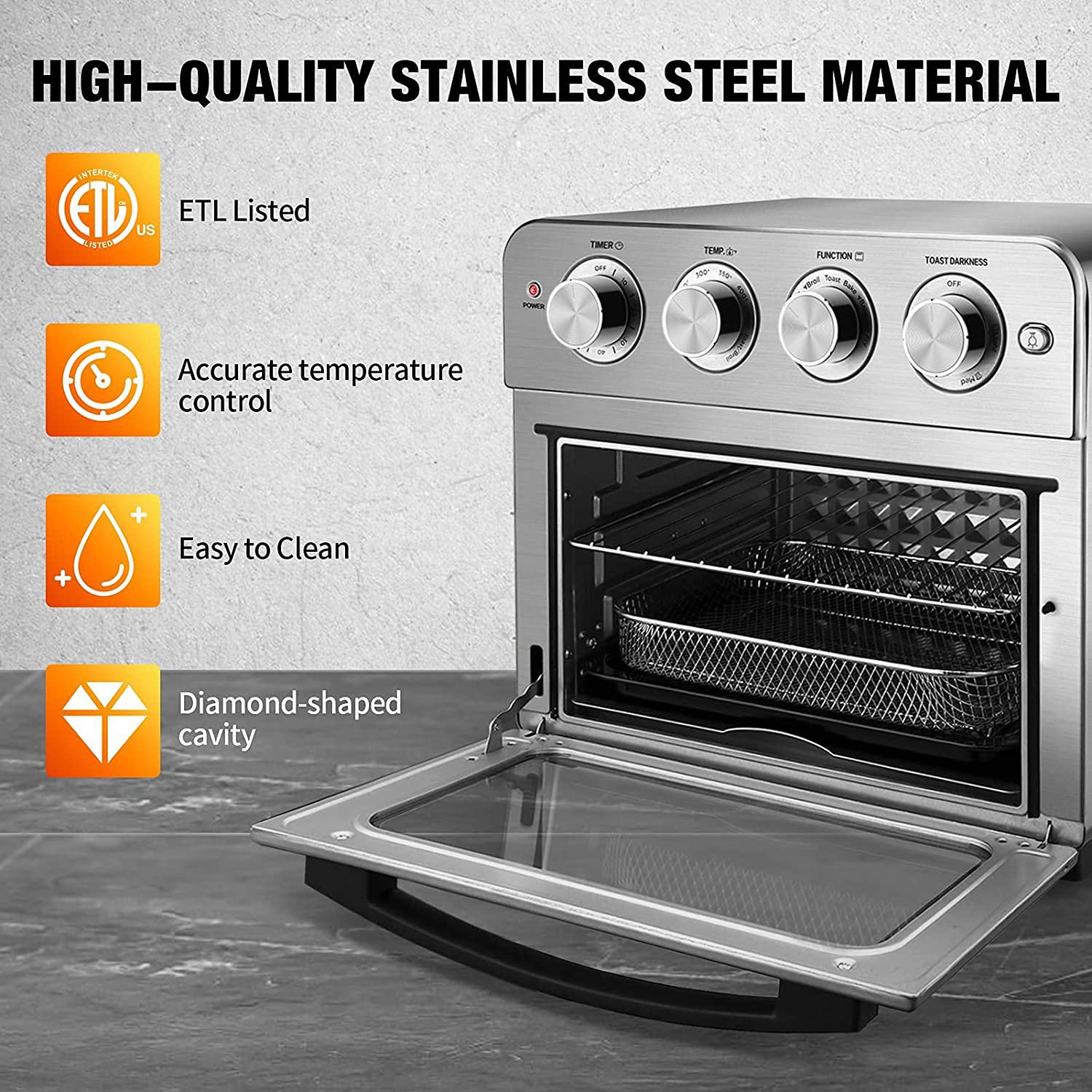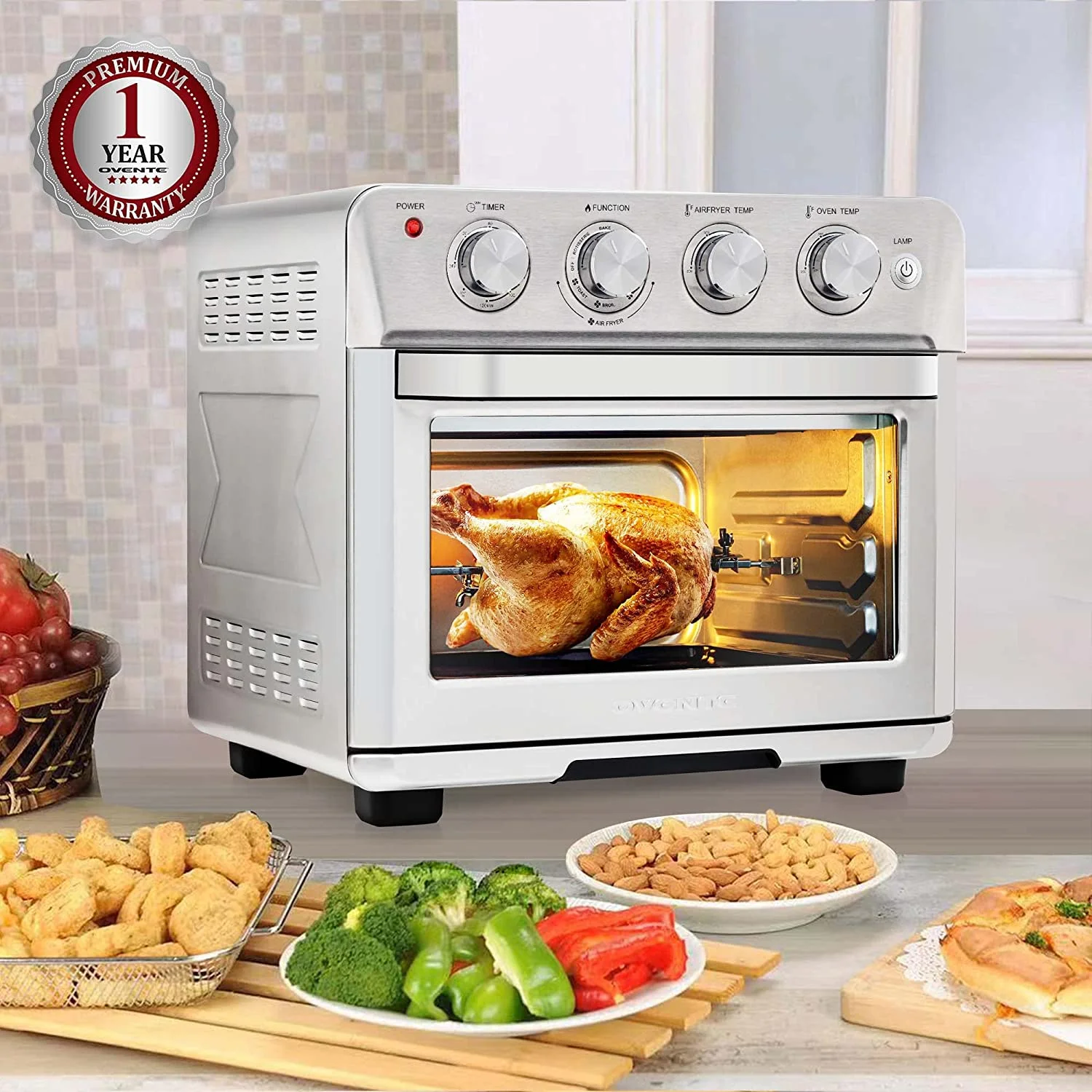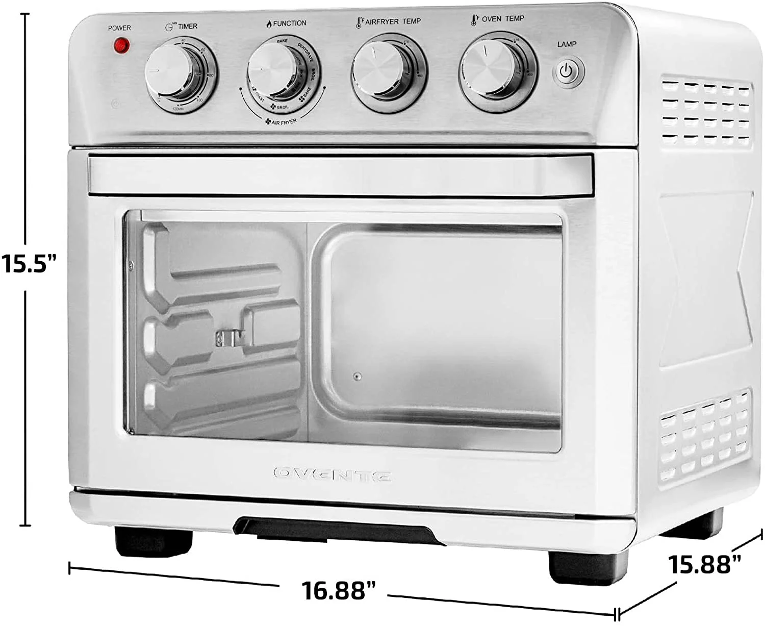 OVENTE Air Fryer Toaster Oven Combo,1700W Power & Free Accessories, New- Silver OFM2025BR