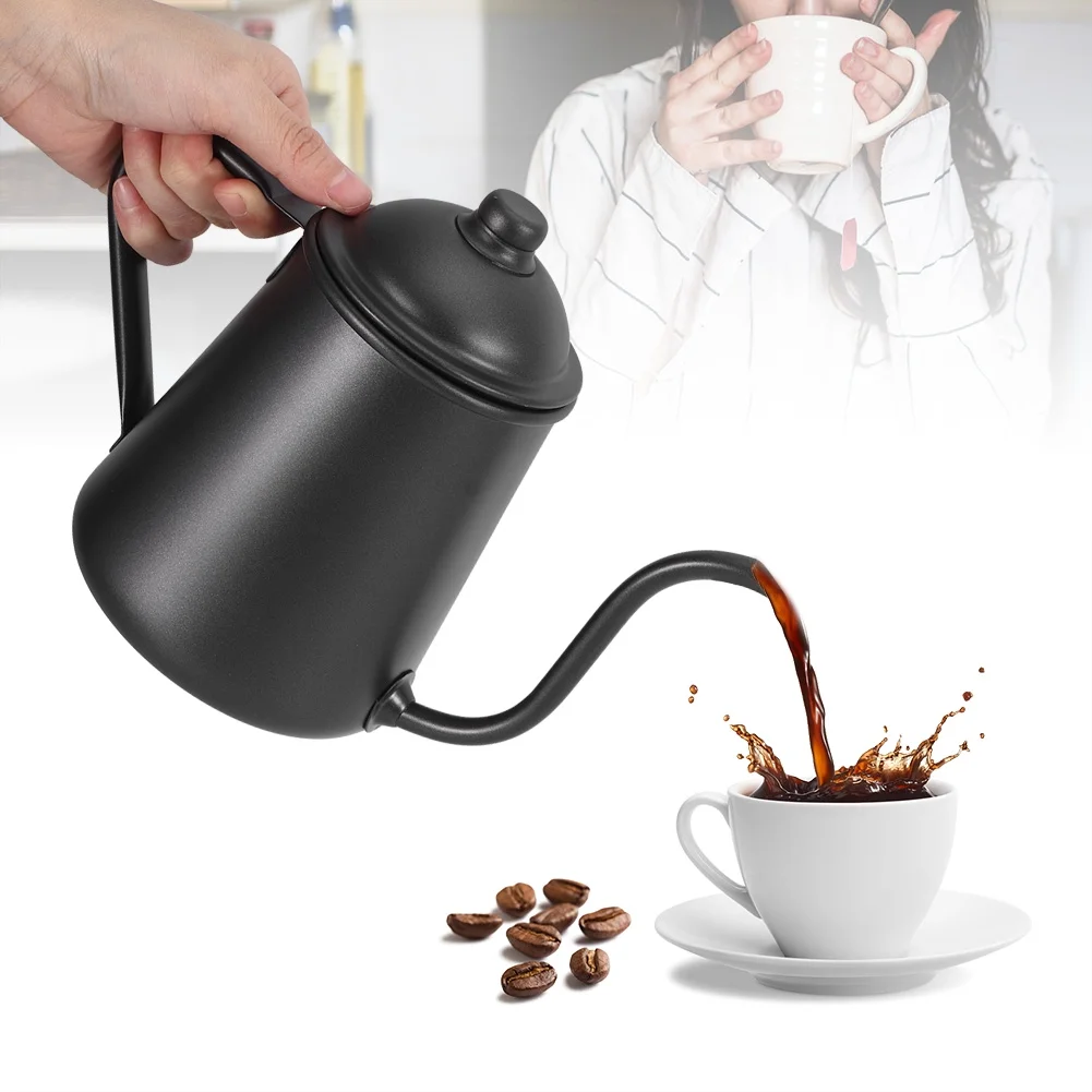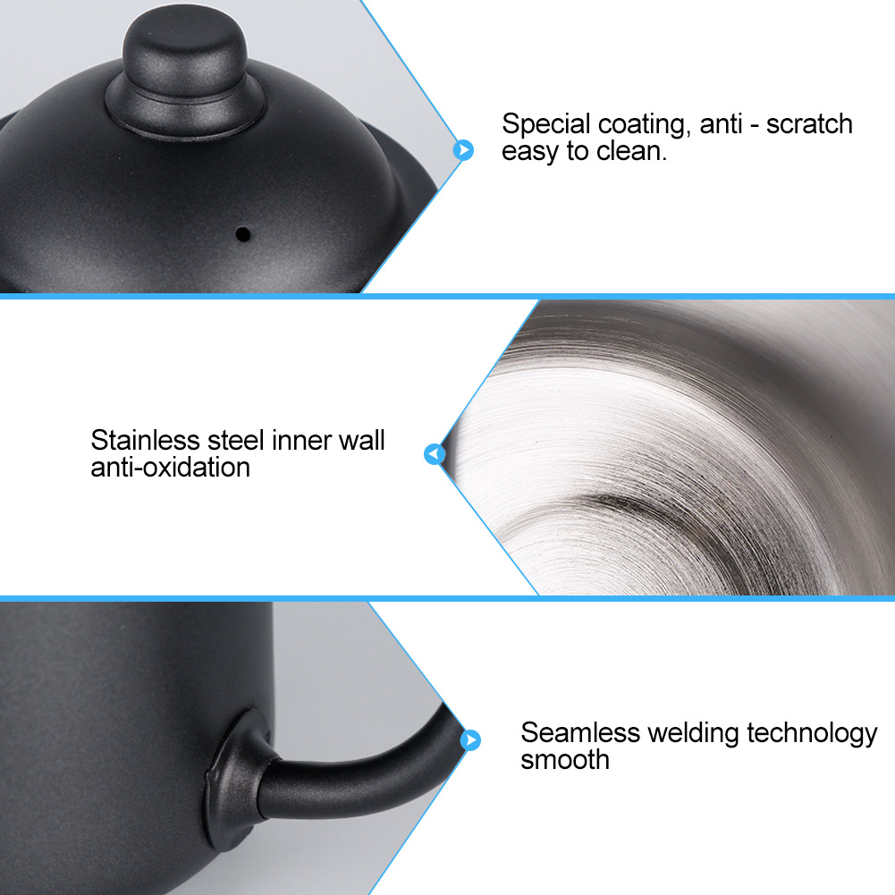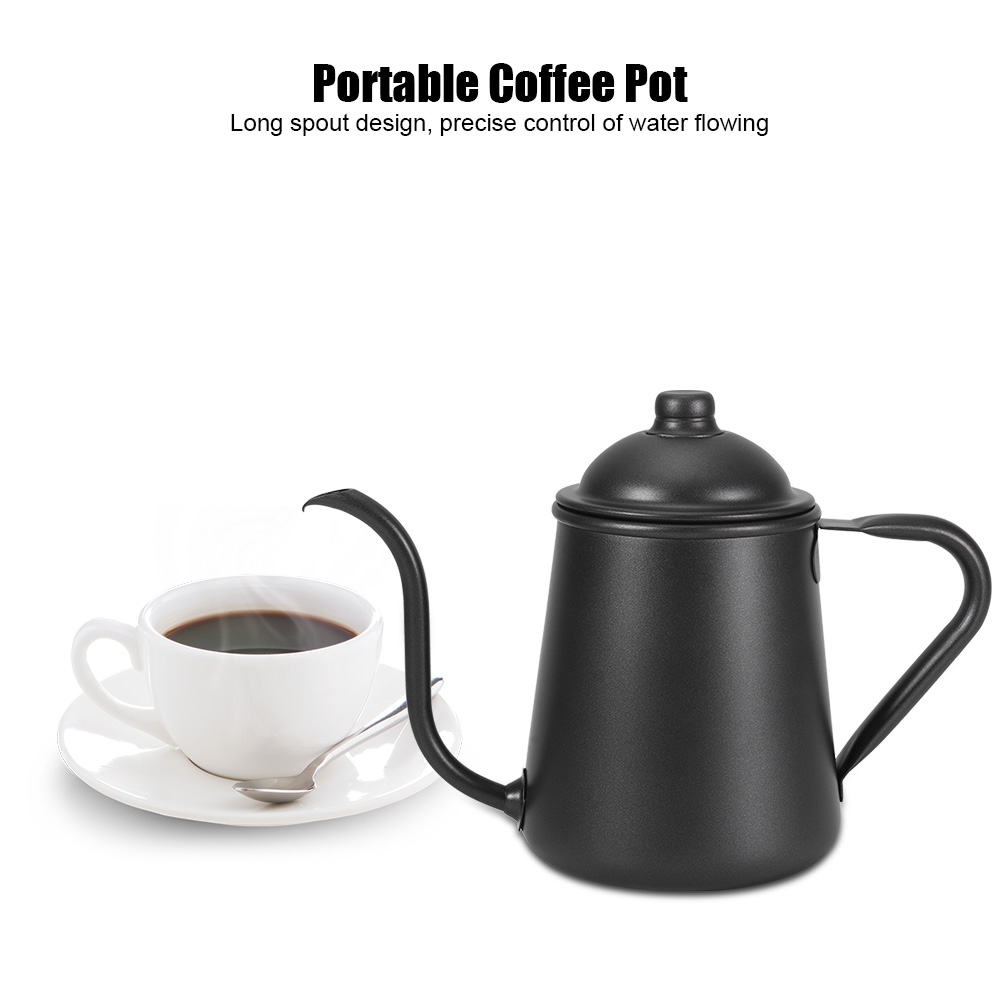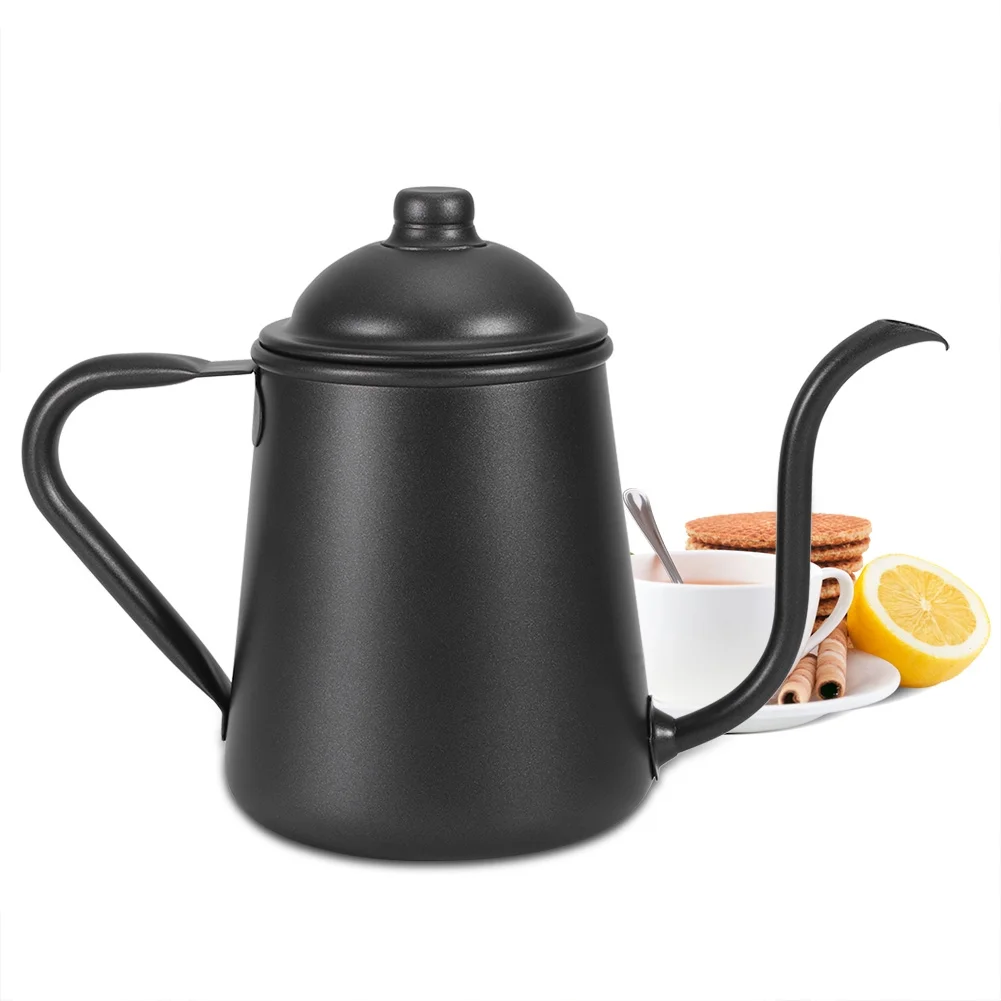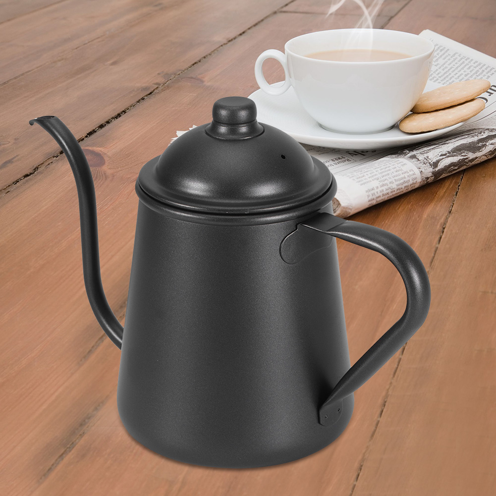 Dekaim Coffee Pot, 900ml Stainless Steel Black Household Portable Narrow Long Mouth Coffee Pot