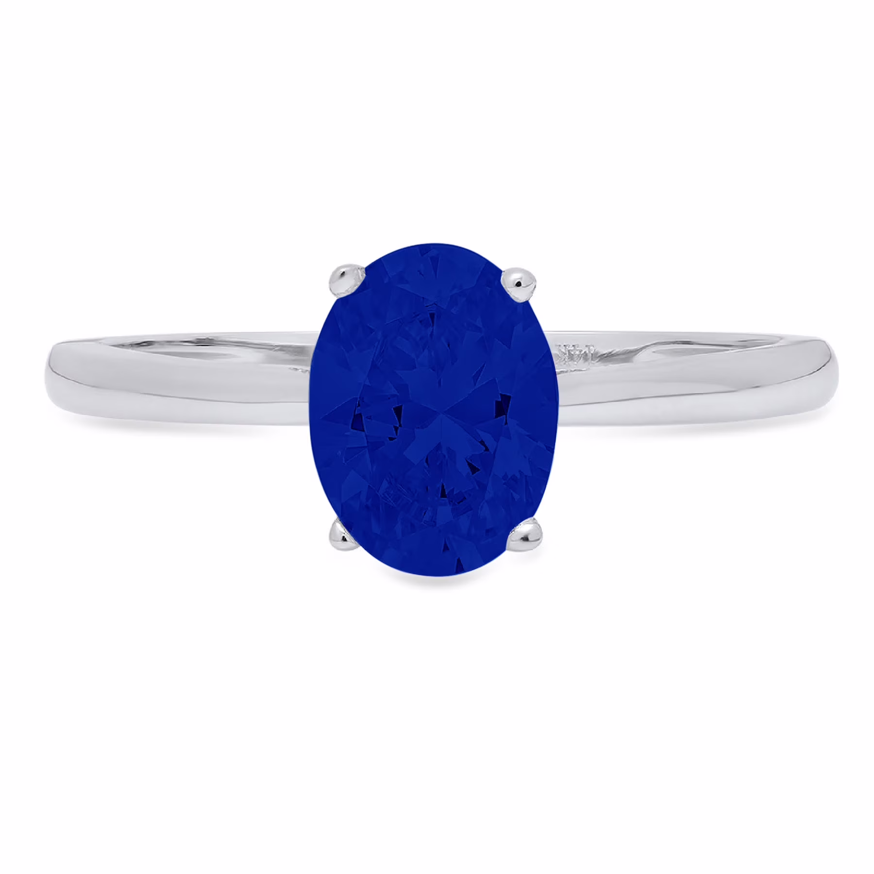1ct oval cut simulated blue sapphire 14k white gold anniversary engagement ring size 10.5