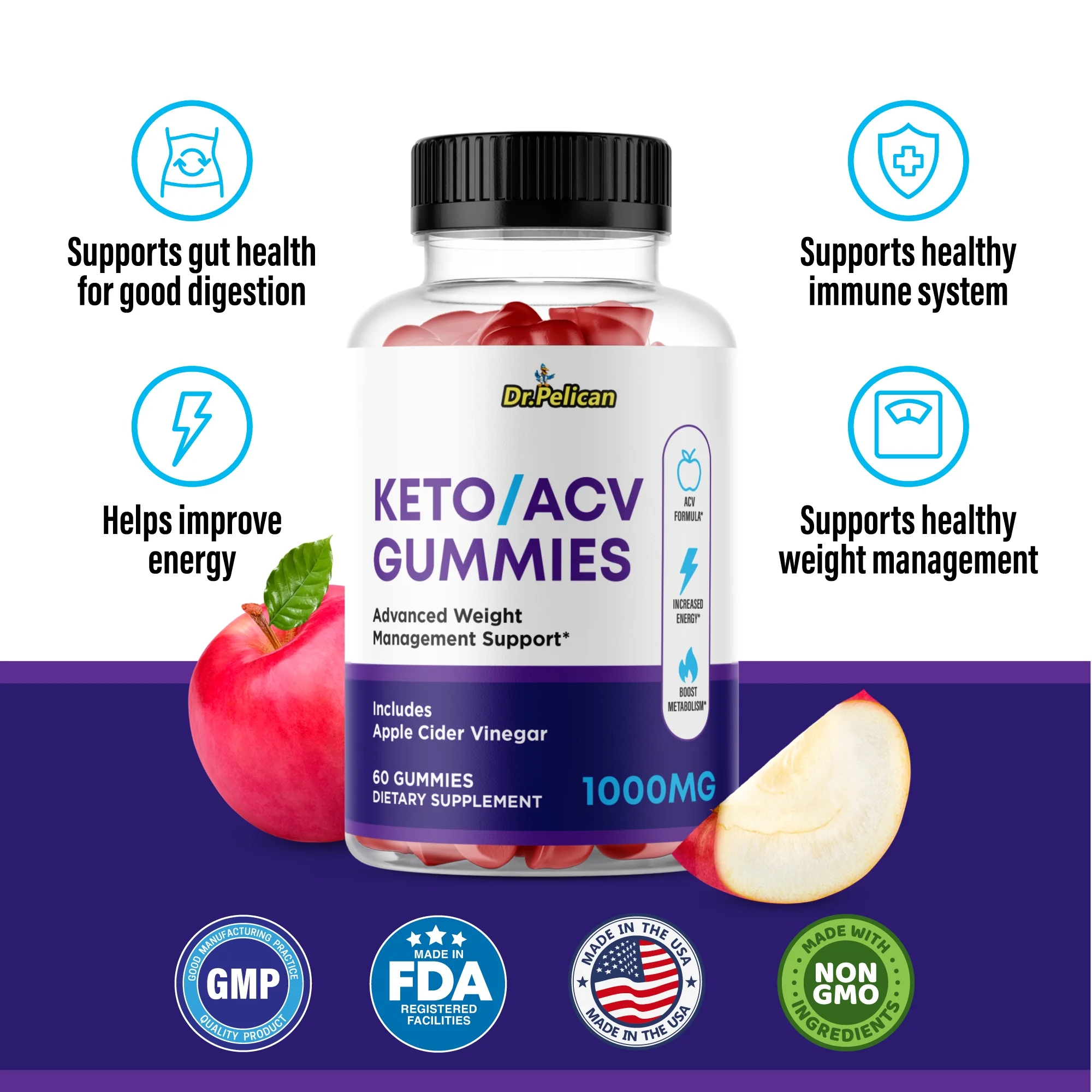 Keto/ACV Gummies 1000MG-Weight Loss, Appetite Suppressant- 60 Gummies- Dr. Pelican