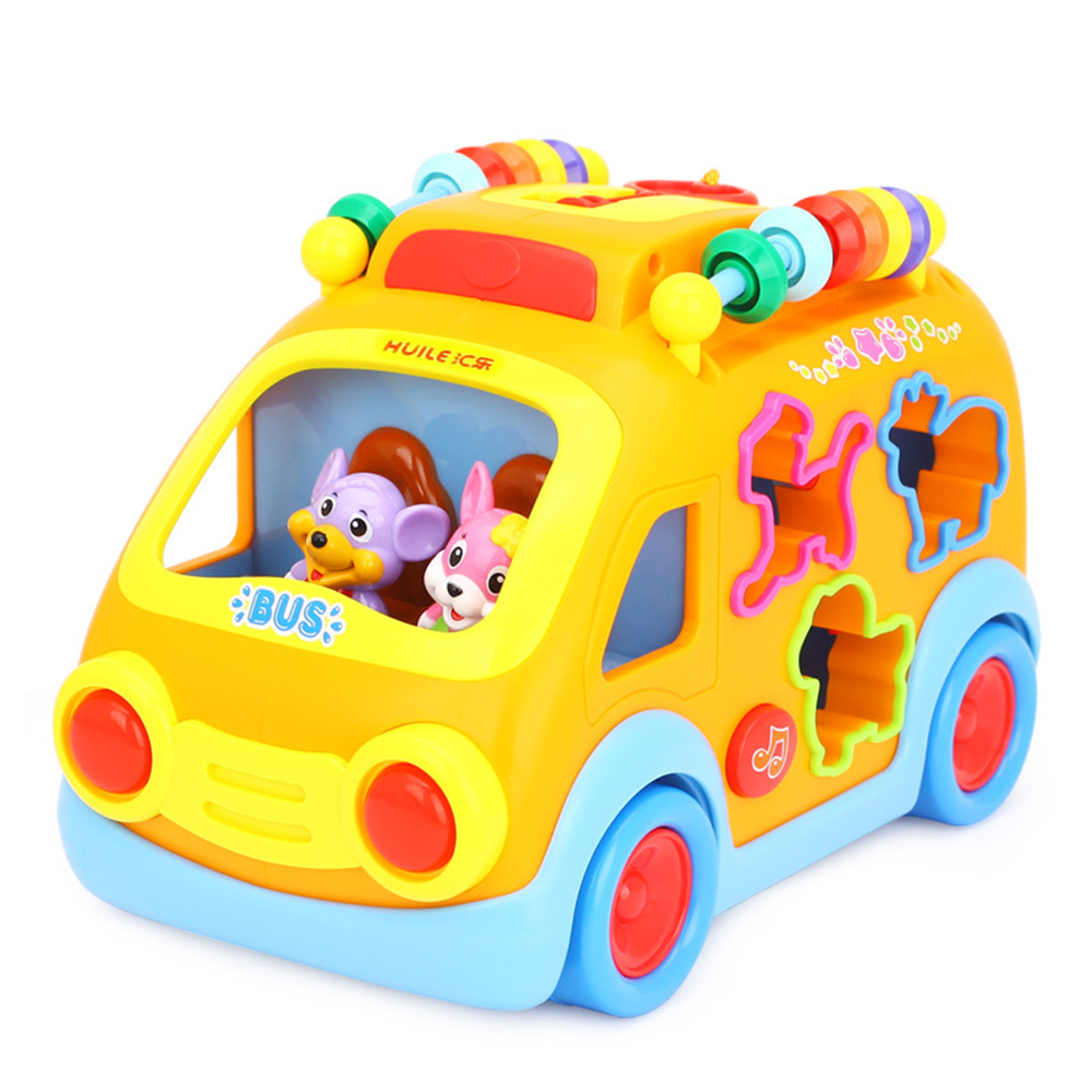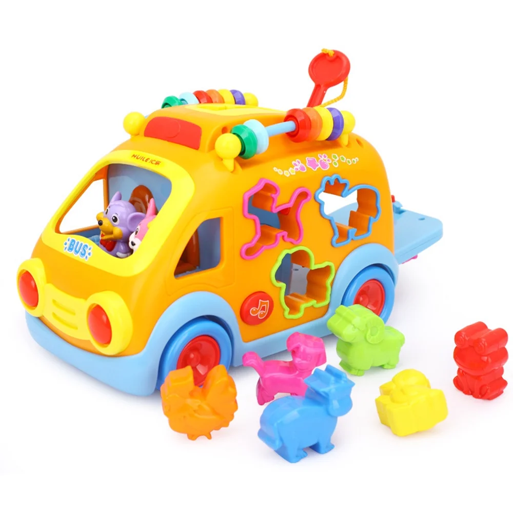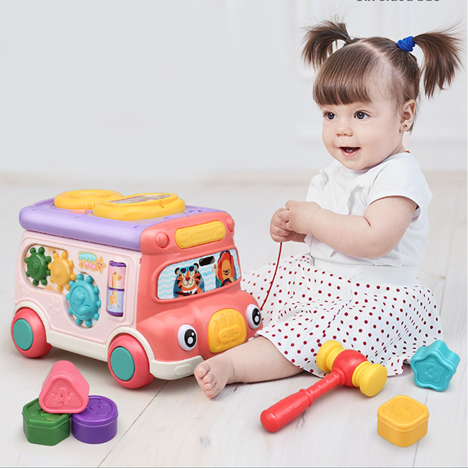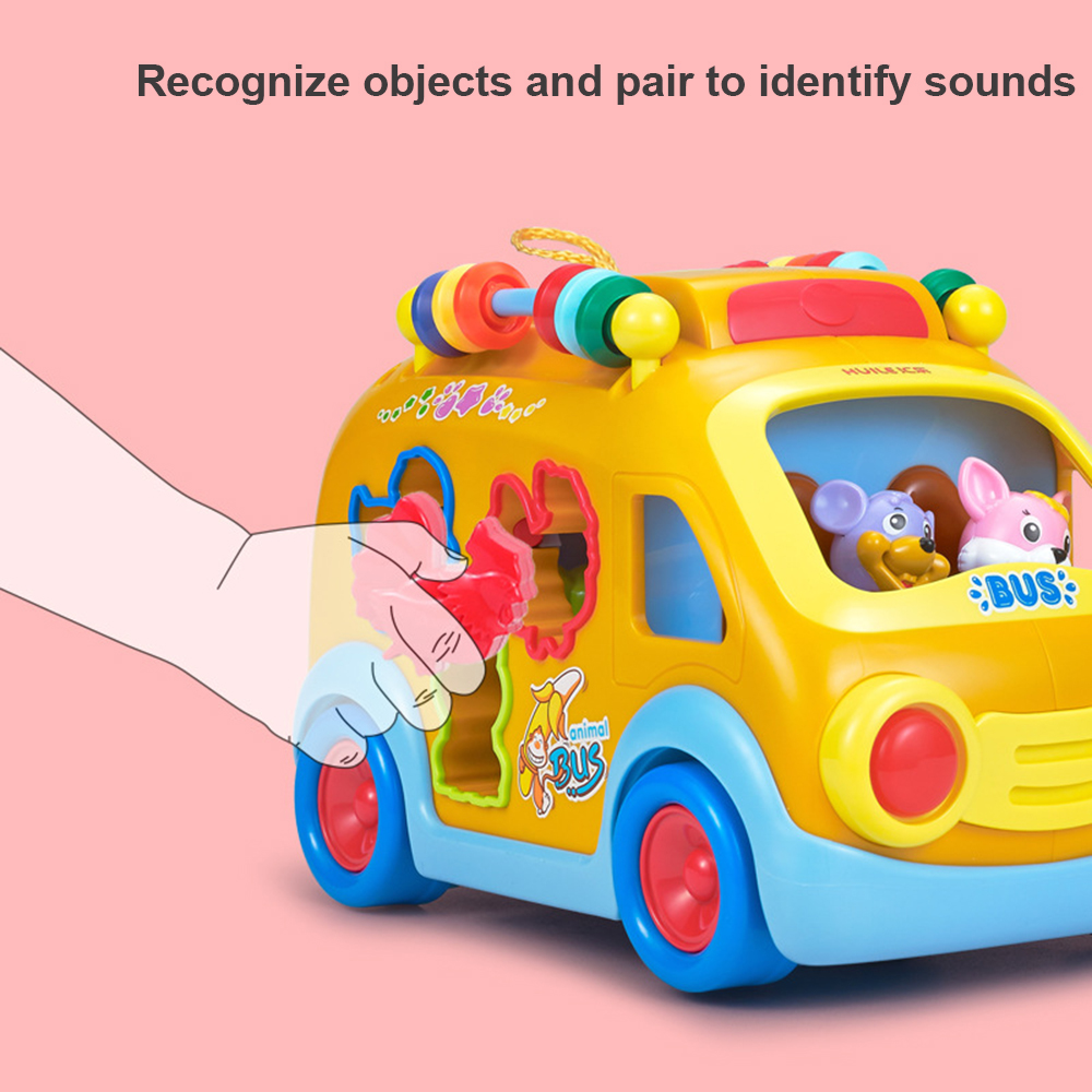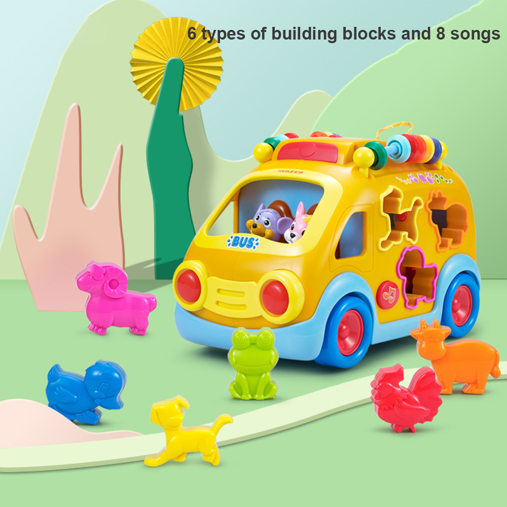 FUNNYFAIRYE Toddler Music Bus Toys, Baby Musical Busy Learning Toy Animal Matching, Gear, Key, Infant Electronic Car Birthday Gifts for 2 3 Year Old Kid Boy Girl