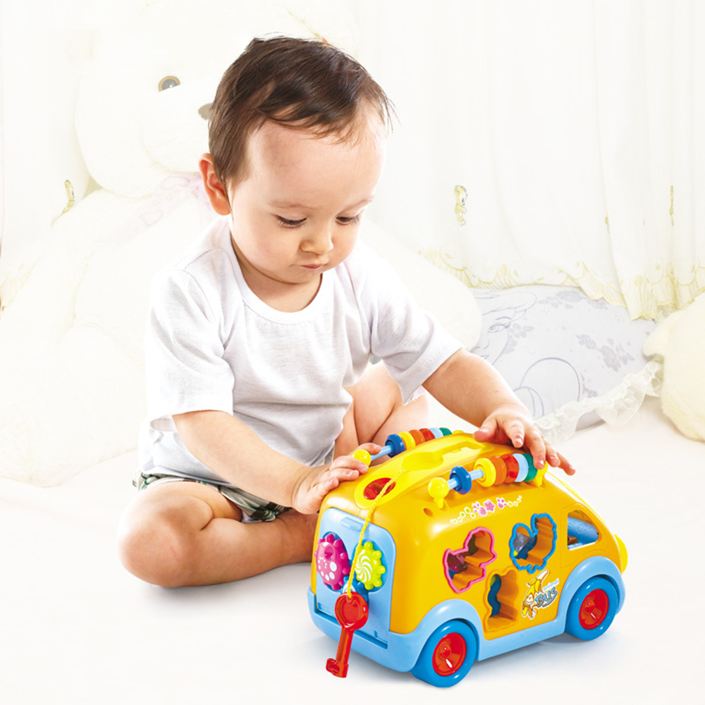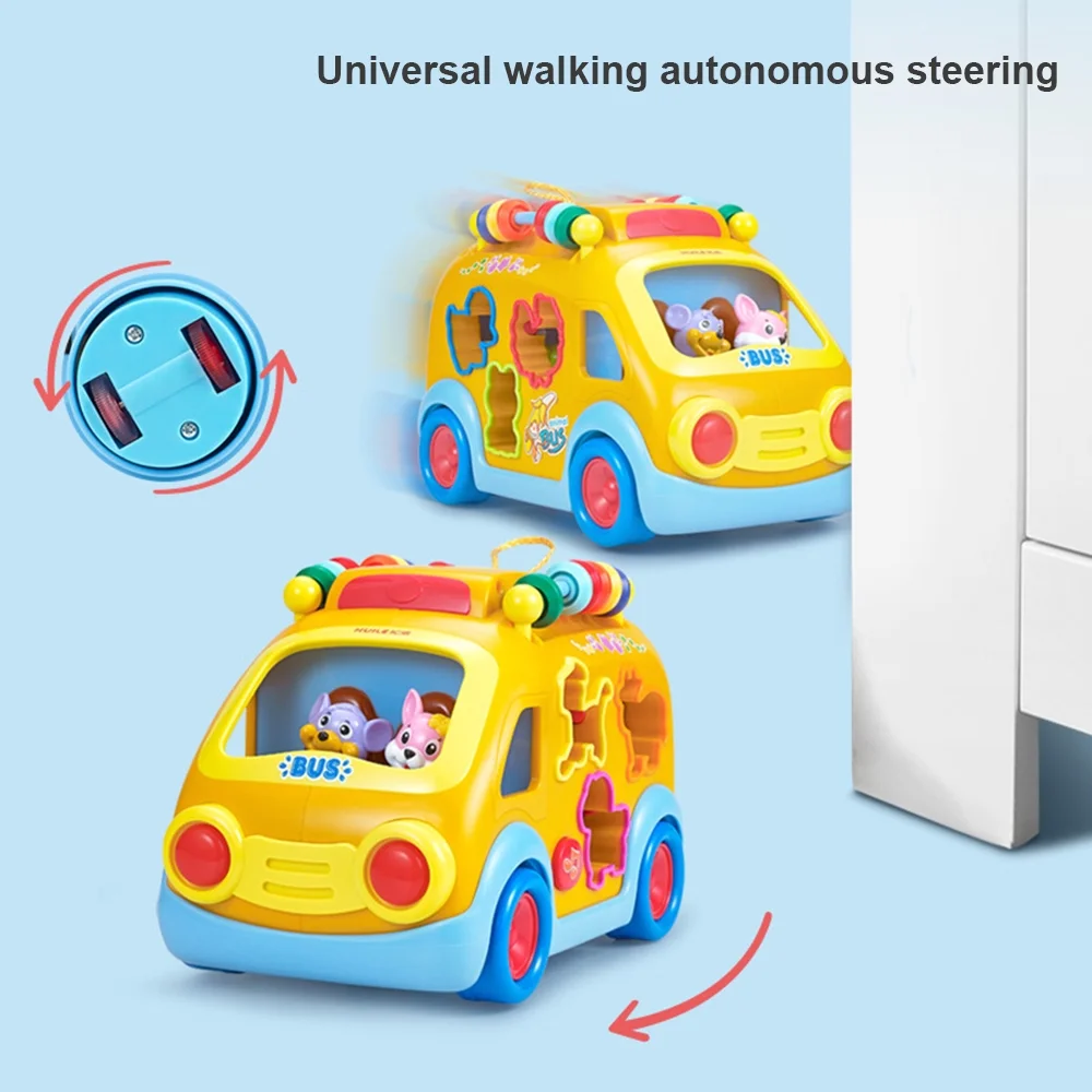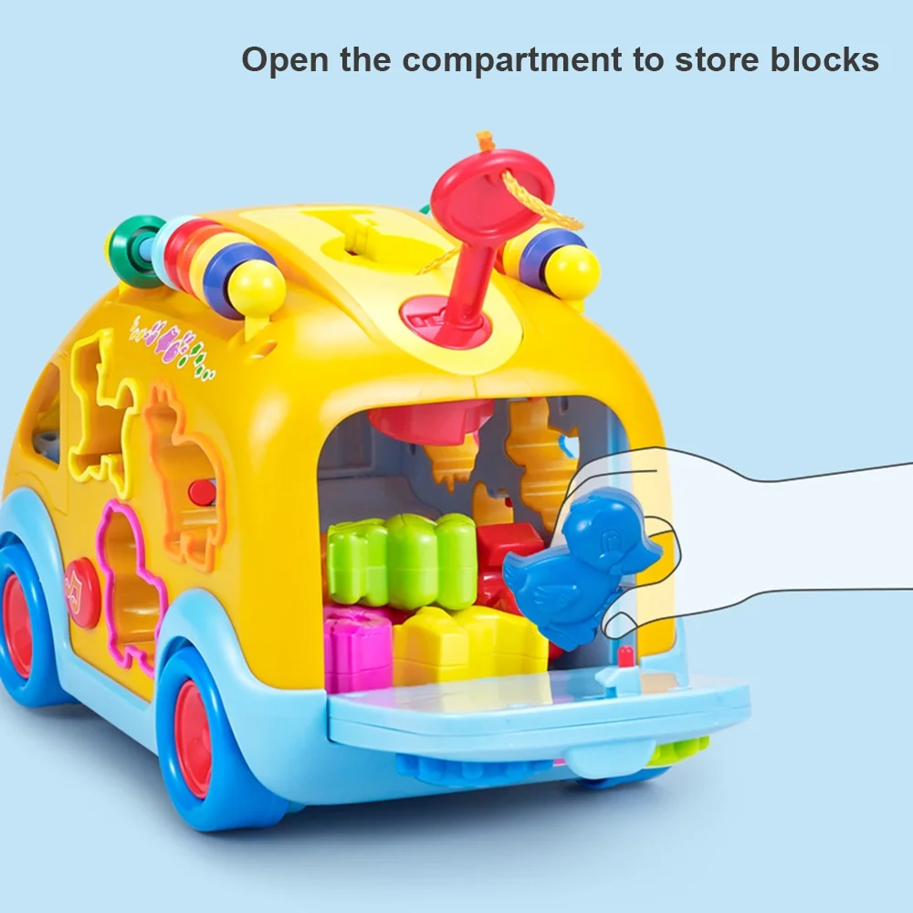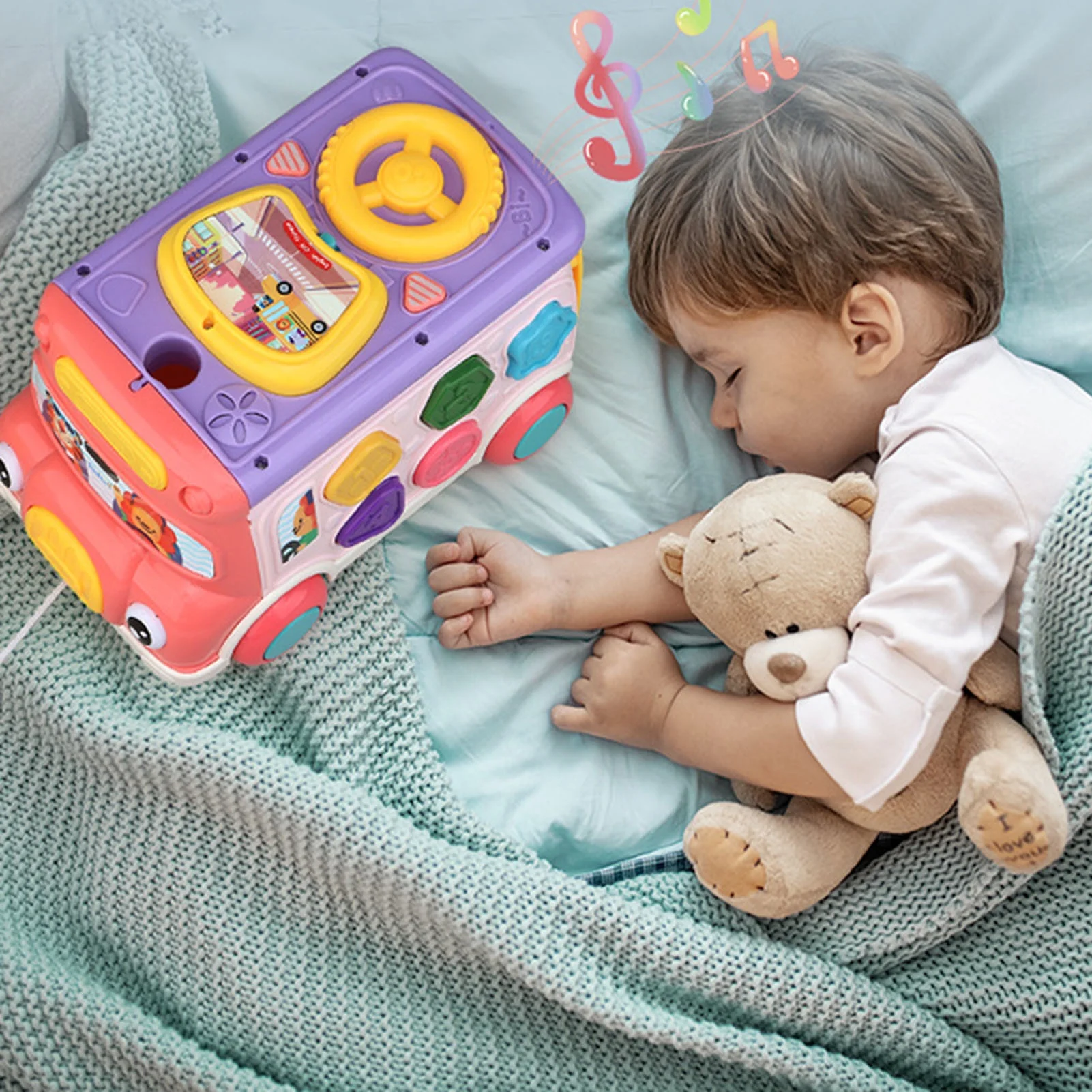 Travelwant Toddler Music Bus Toys, Baby Musical Busy Learning Toy W/ Animal Matching, Gear, Key, Infant Electronic Car W/ Light Sound, Birthday Gifts