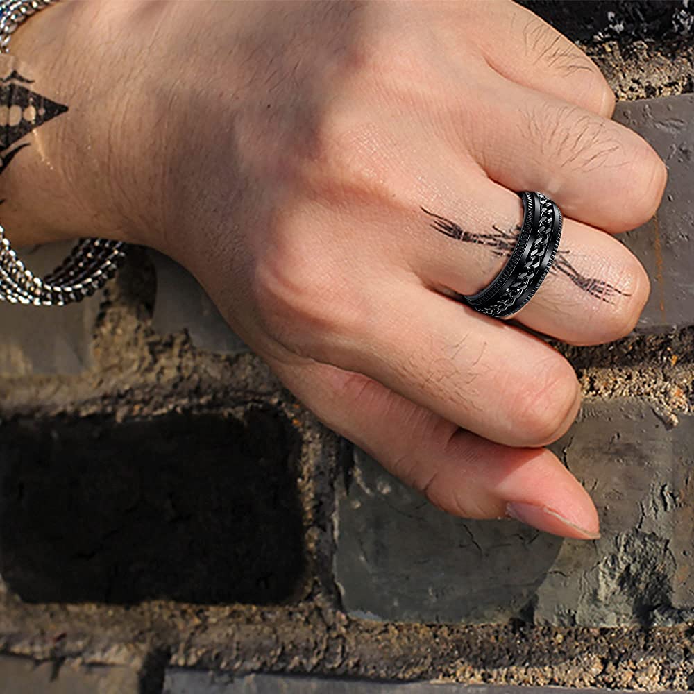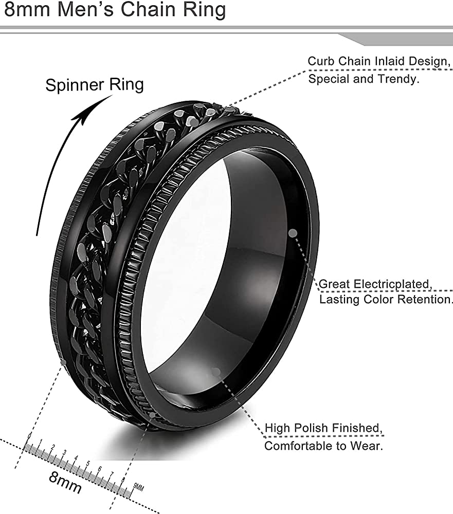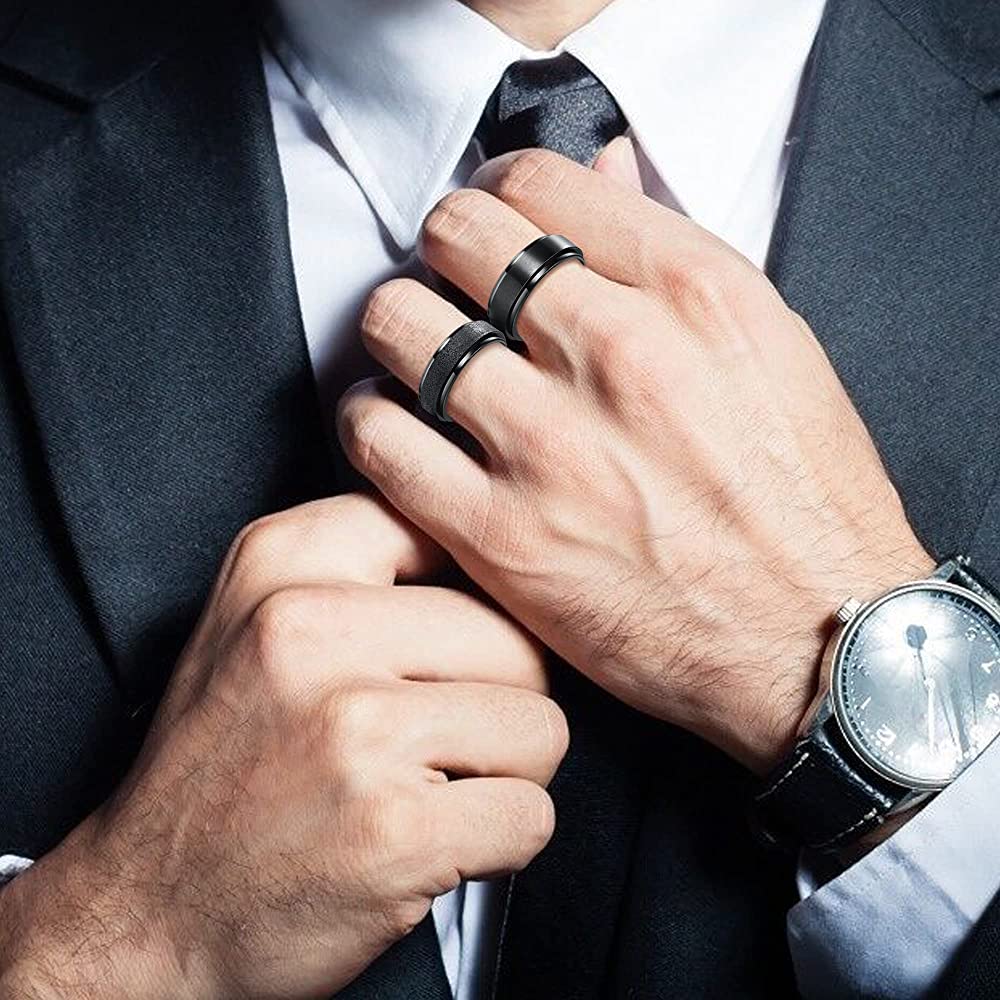 Briana Williams 3 PCS Fidget Spinner Ring Black Anxiety Rings for Unisex Size 7