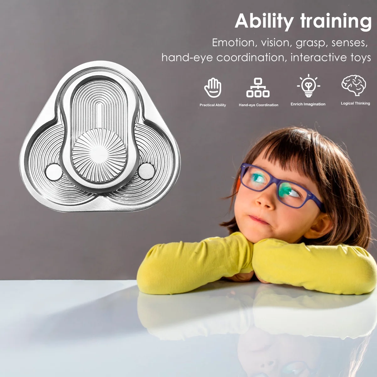 Retrok Rotary Push Toy Finger Spinner Toy Stainless Steel Triangle Sensory Hand Toy Magnetic Toy for Men Women Adults