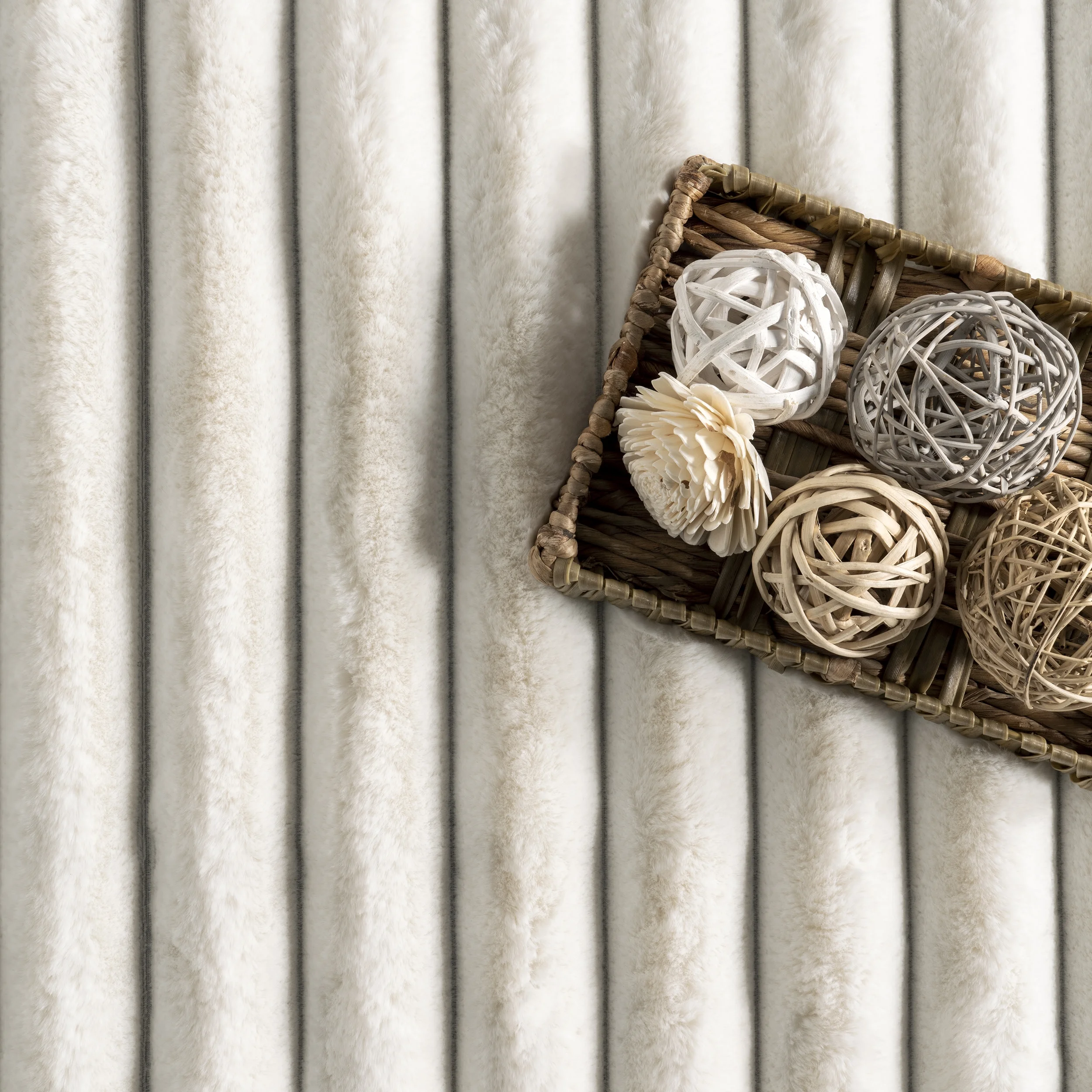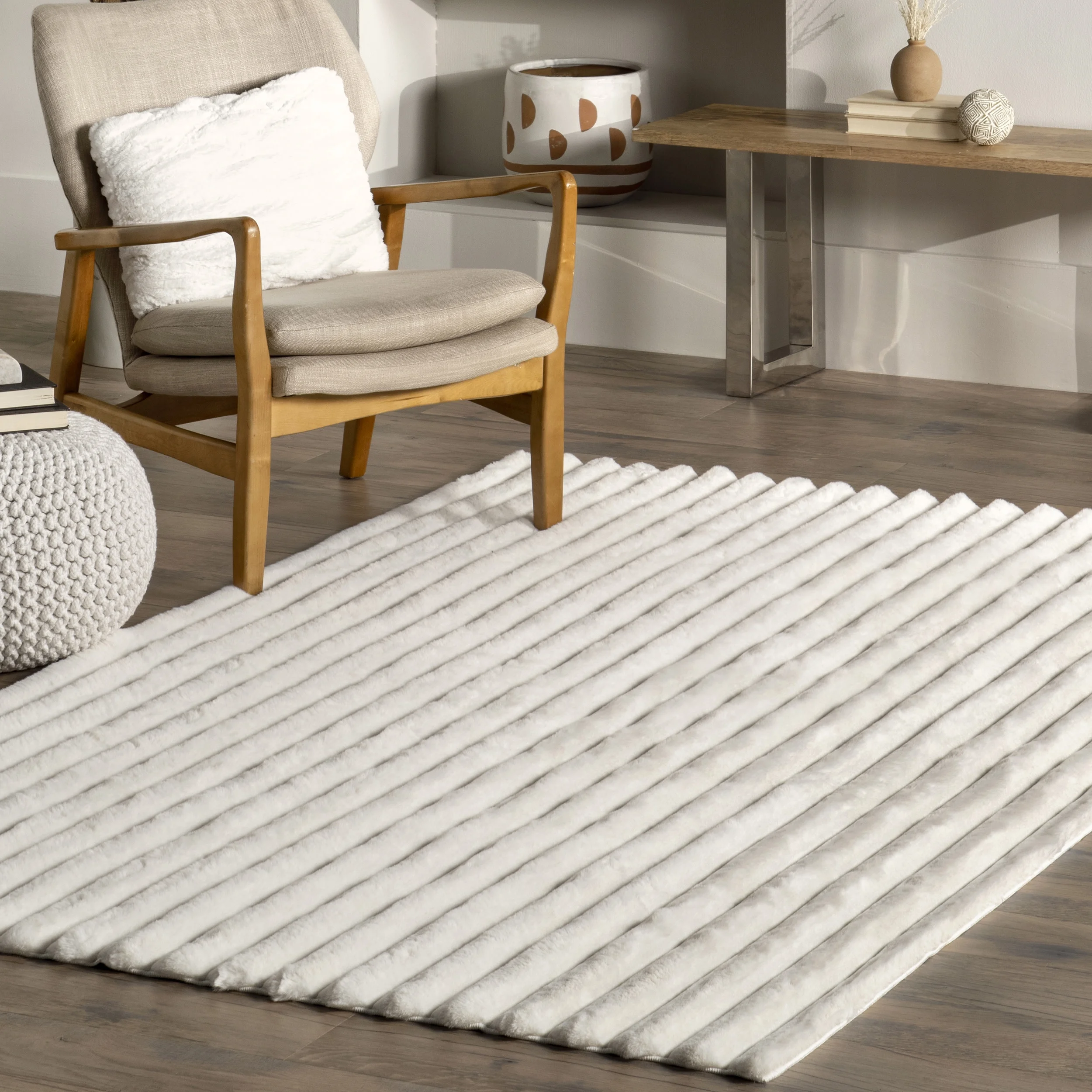 nuLOOM Kai Stripe Faux Rabbit Machine Washable Area Rug, 7' 6" x 9' 6", White