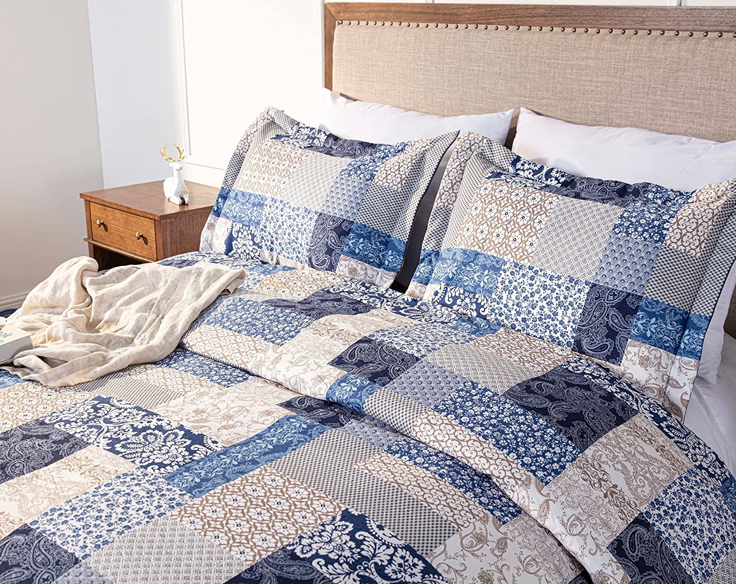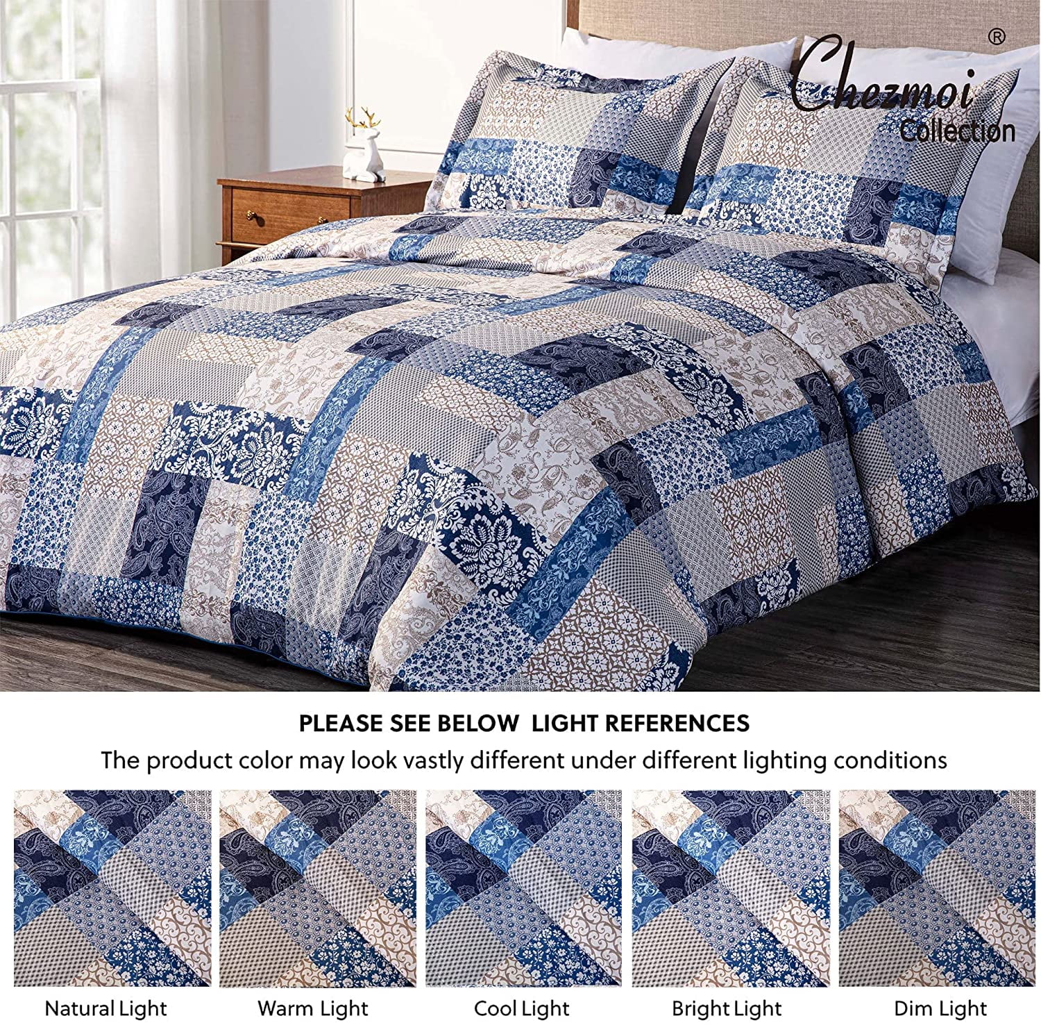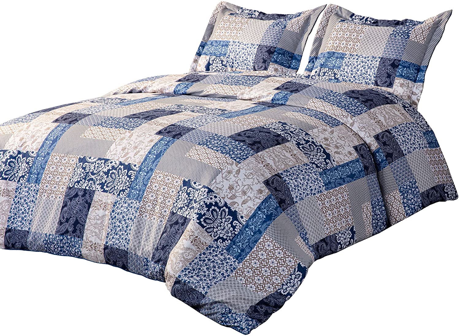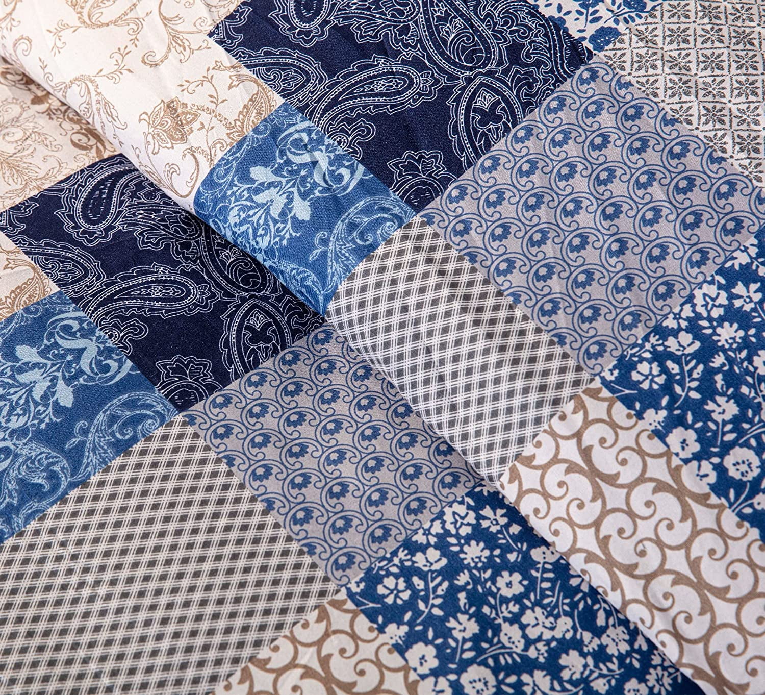 Chezmoi Collection Kai 3-Piece Floral Paisley Patchwork Printed Comforter Set, Navy Blue