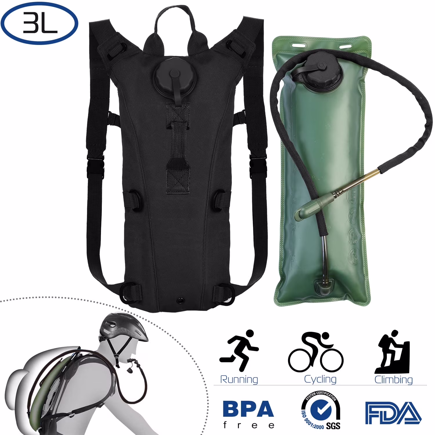 iMounTEK Water Backpack Hydration Pack 3L Drink Backpack for Hiking Cycling Climbing Running, Black