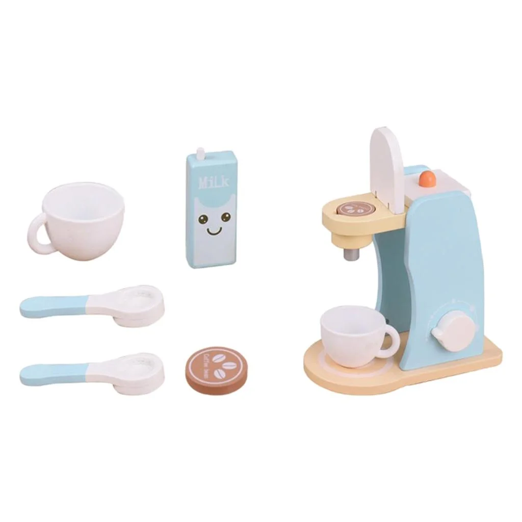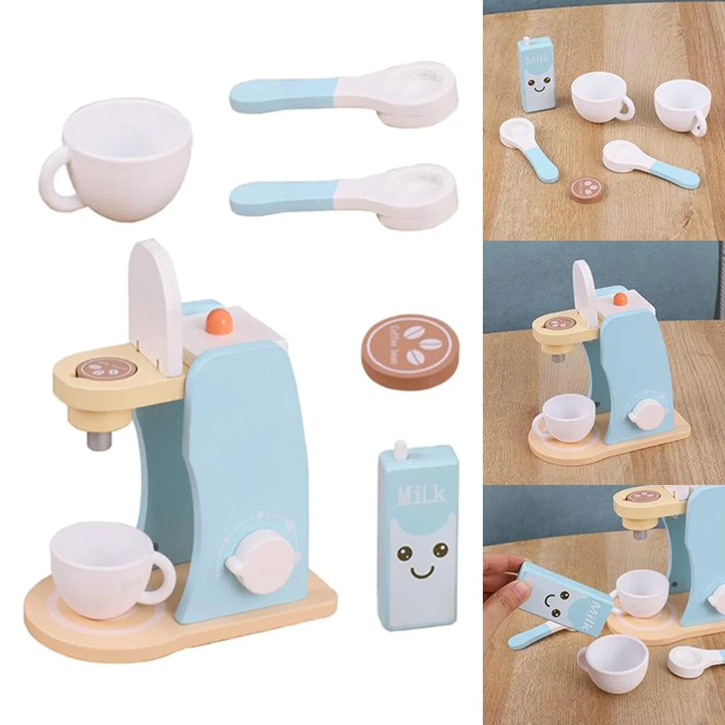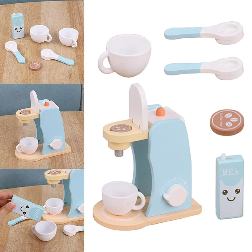 Kids Children Kitchen Pretend Cooking Set Cookware PlaySet Food Wooden Kitchenware Little Chef Learning Educational Gifts - Coffee Machine