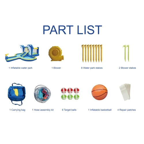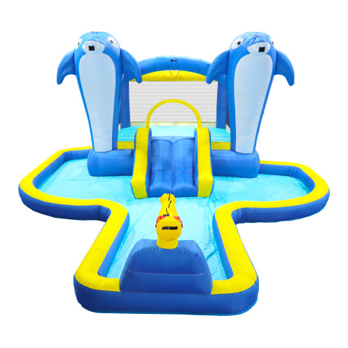CJC 6 in1 Kids Inflatable Water Slide Park with Climbing Wall Water Cannon and Dolphin sprinkler & Splash Pool