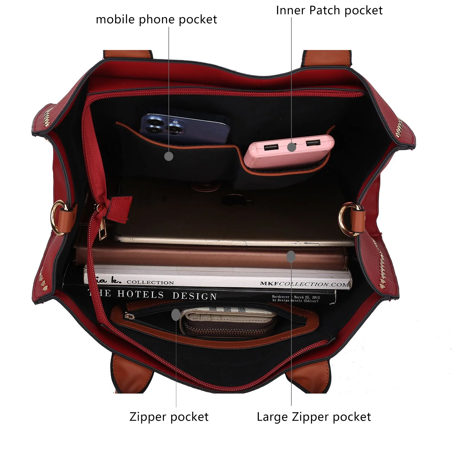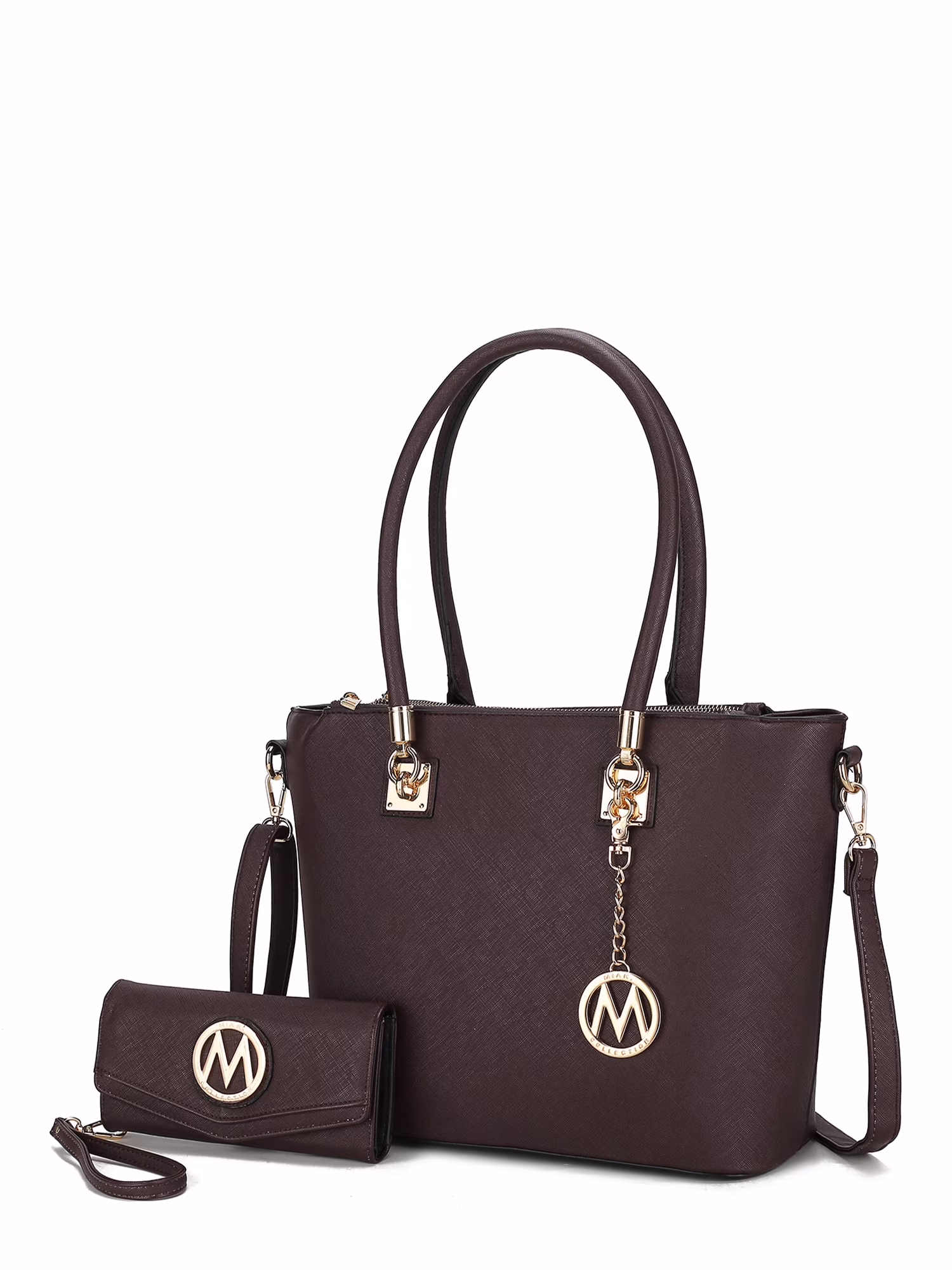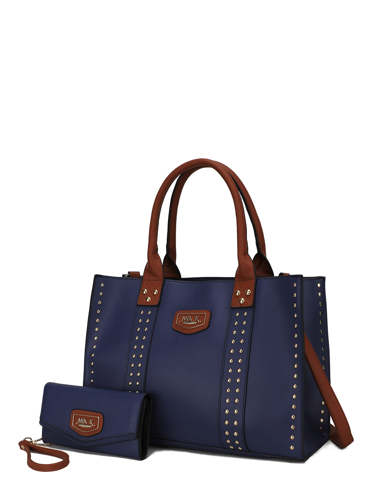 MKF Collection Women's Davina Faux Leather Tote Bag and Wallet Set, 2-Piece, Navy