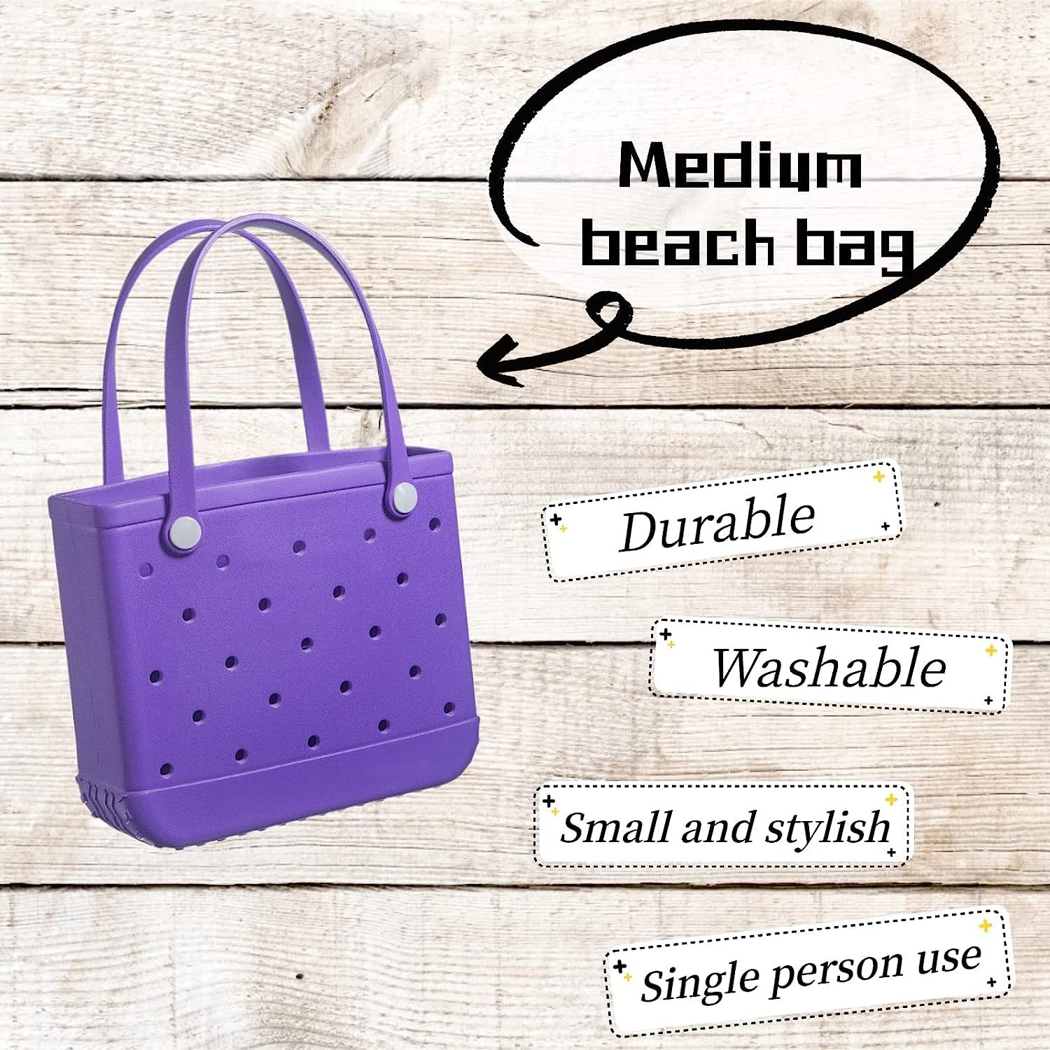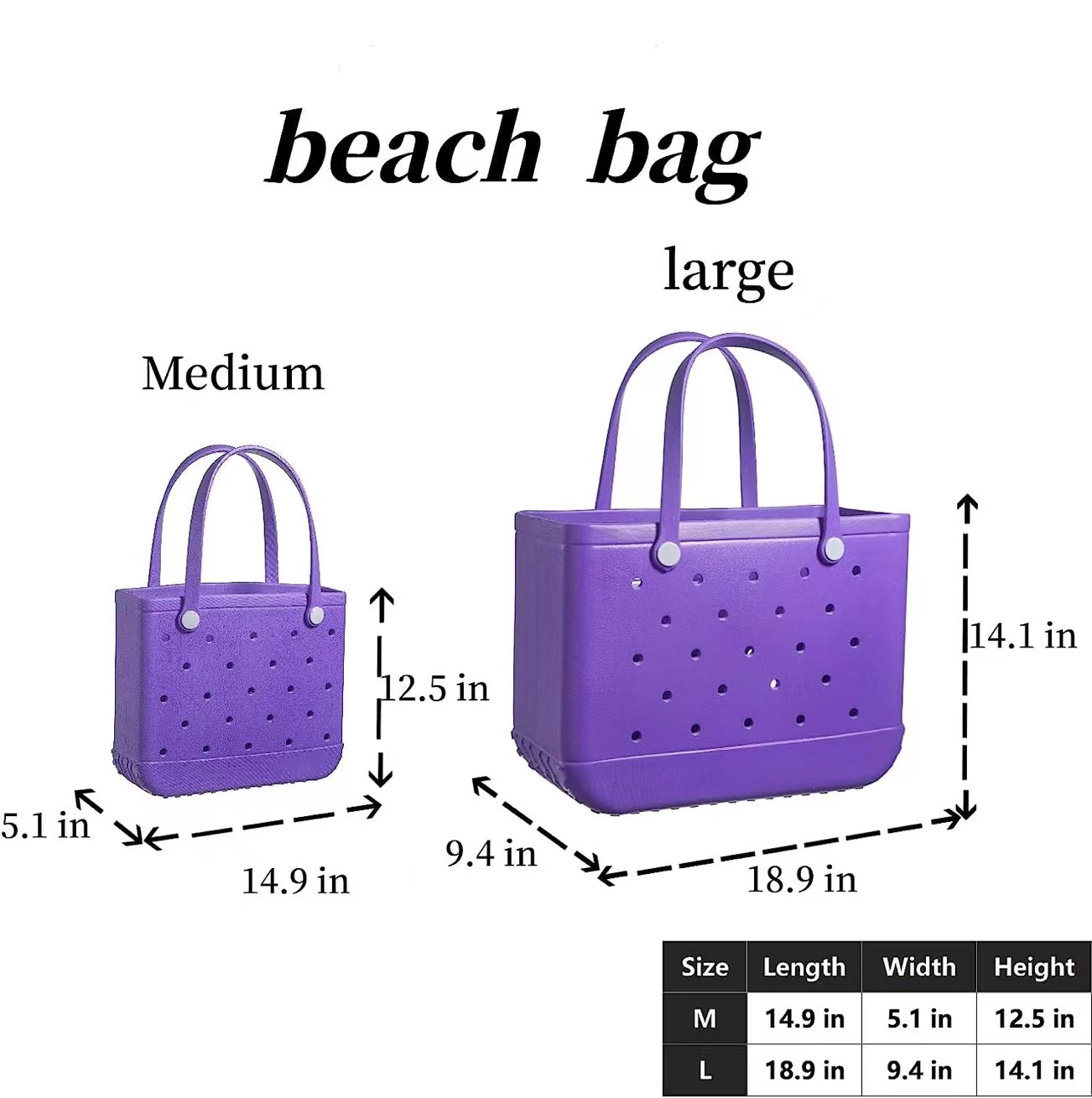 Gomayee EVA Beach Bag,Waterproof and Sandproof Outdoor Rubber Tote Bag for Beach Sports,Purple.Medium