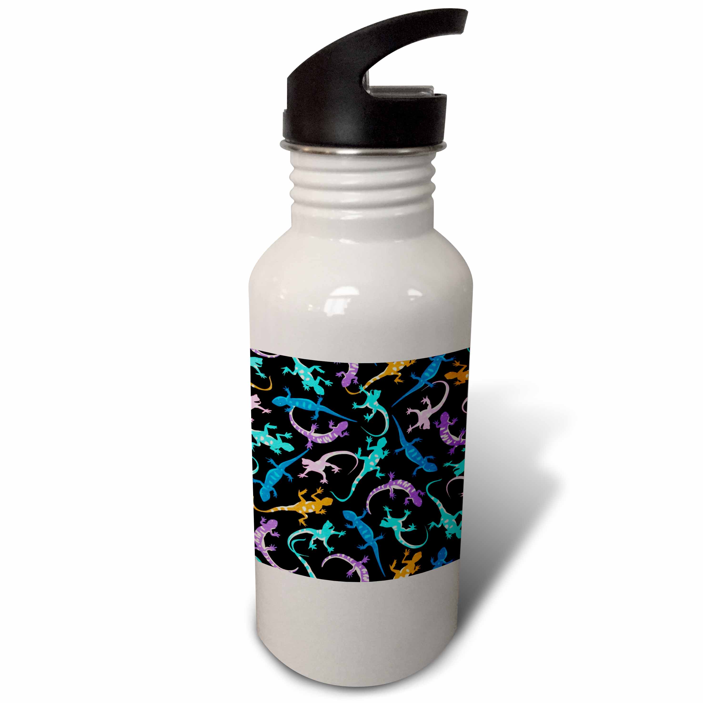 Pink Purple Blue n Aqua Geickos n Lizards On Black 21 oz Sports Water Bottle wb-80638-1