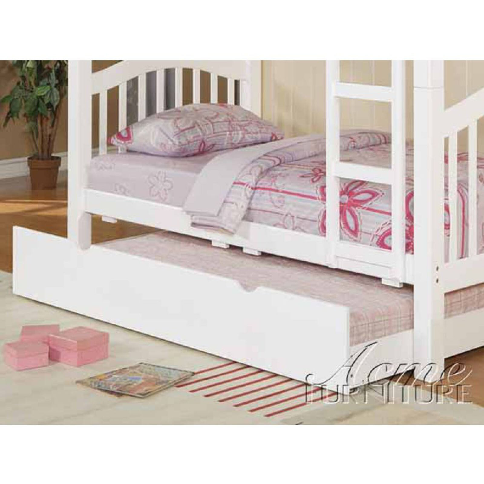 WTGEGF Contemporary Heartland Trundle (Twin) in White With Pull Down Bed, Space Saving