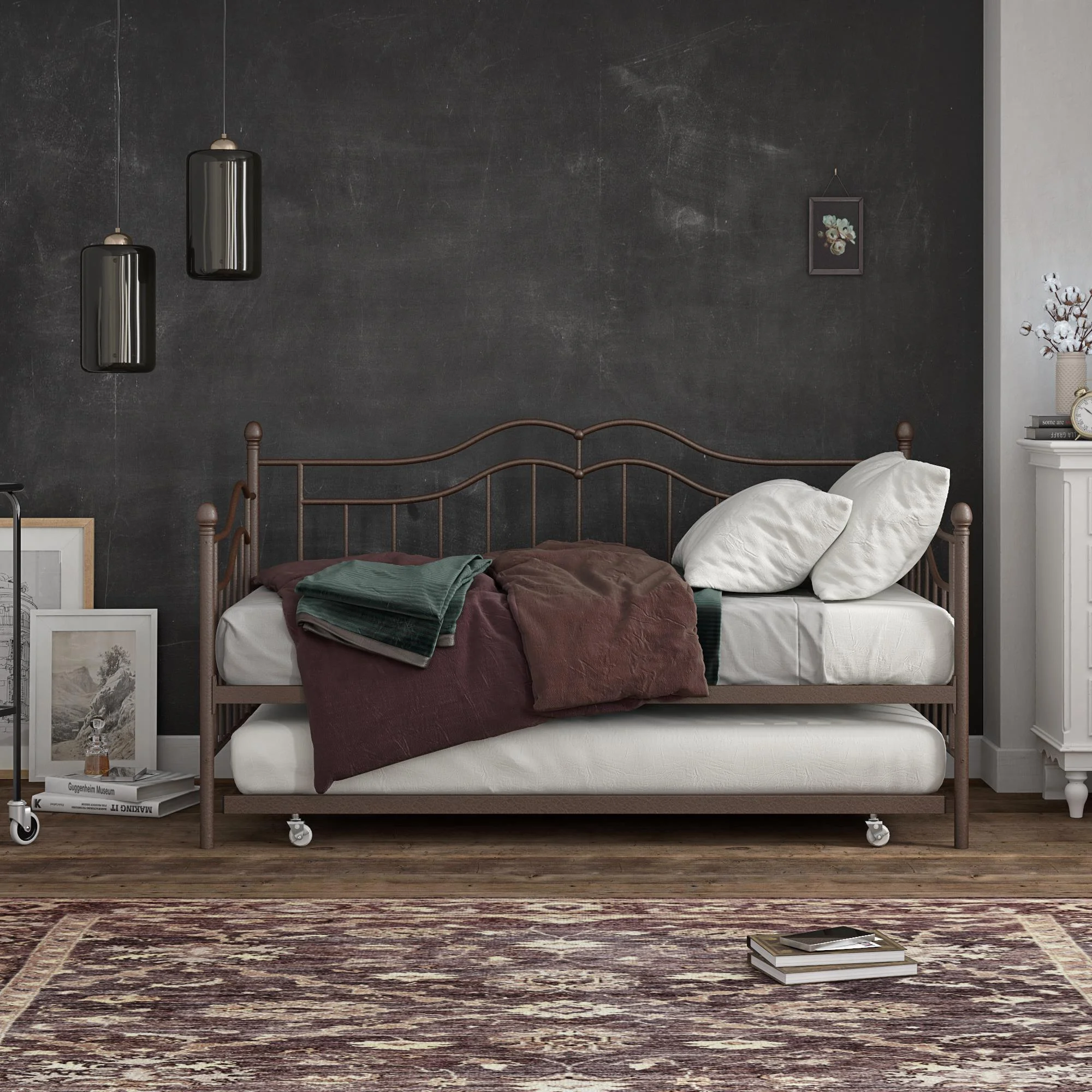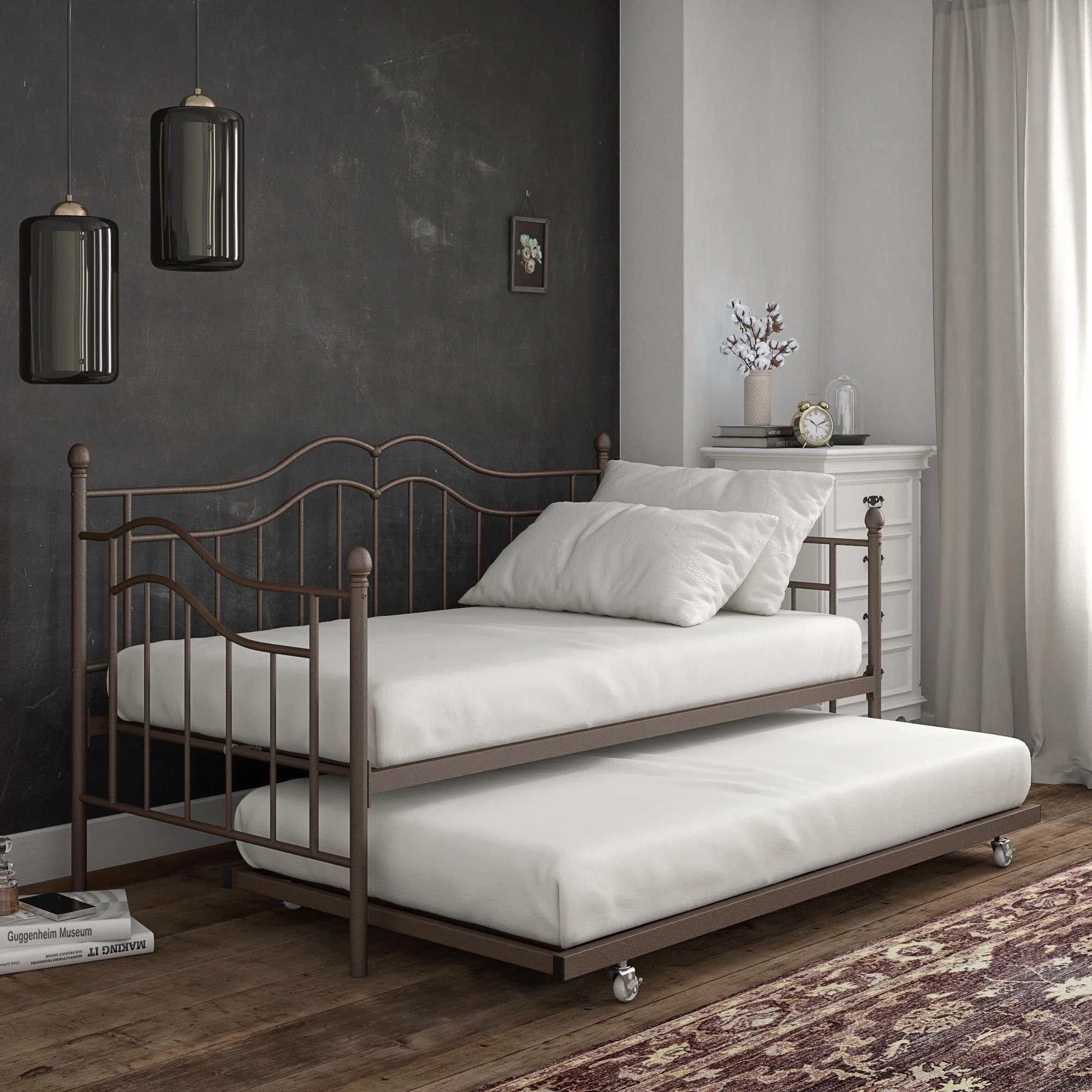 Desert Fields Tokyo Metal Daybed And Trundle, Twin/Twin Size Frame, Bronze