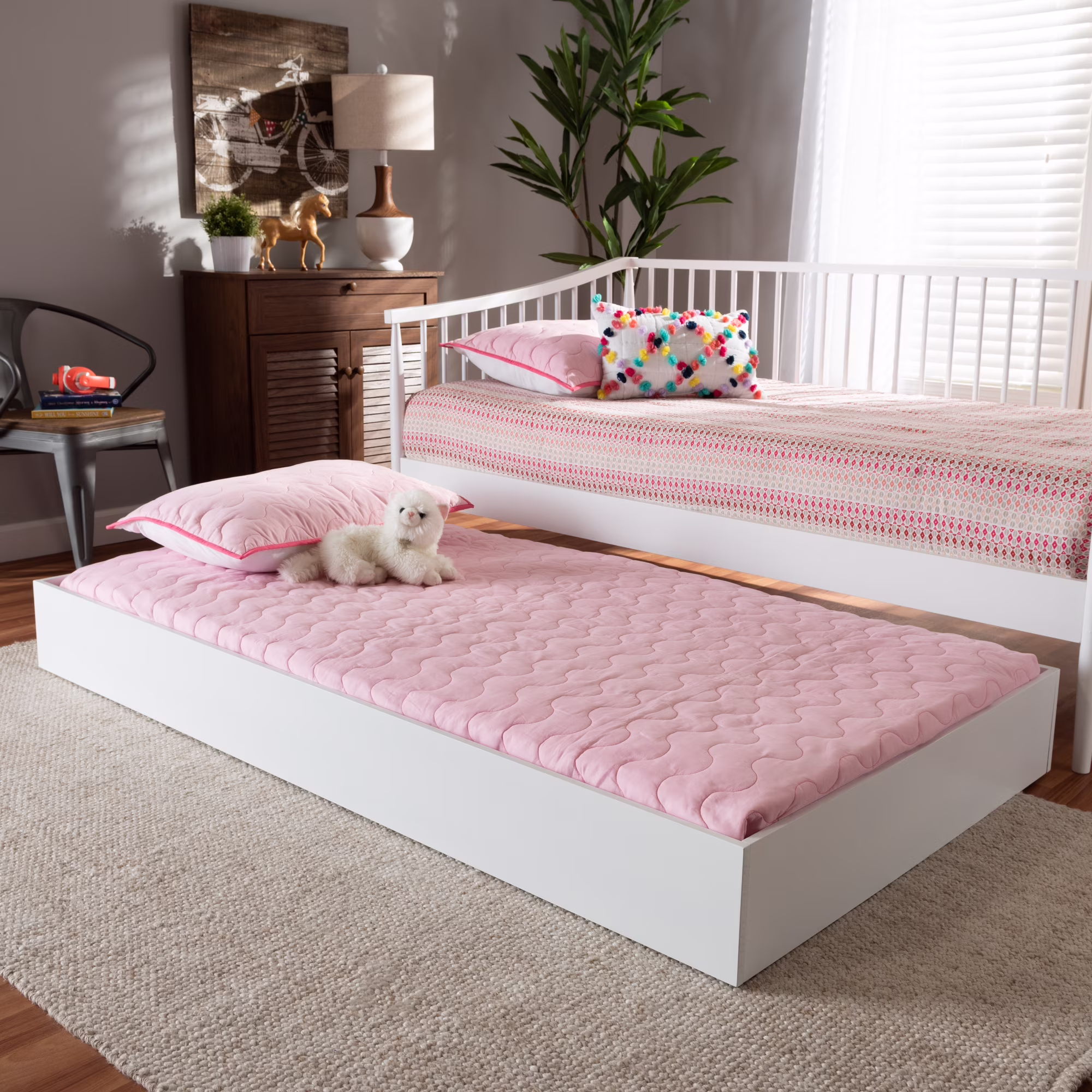 Baxton Studio Alya Classic Traditional Farmhouse White Finished Wood Twin Size Trundle