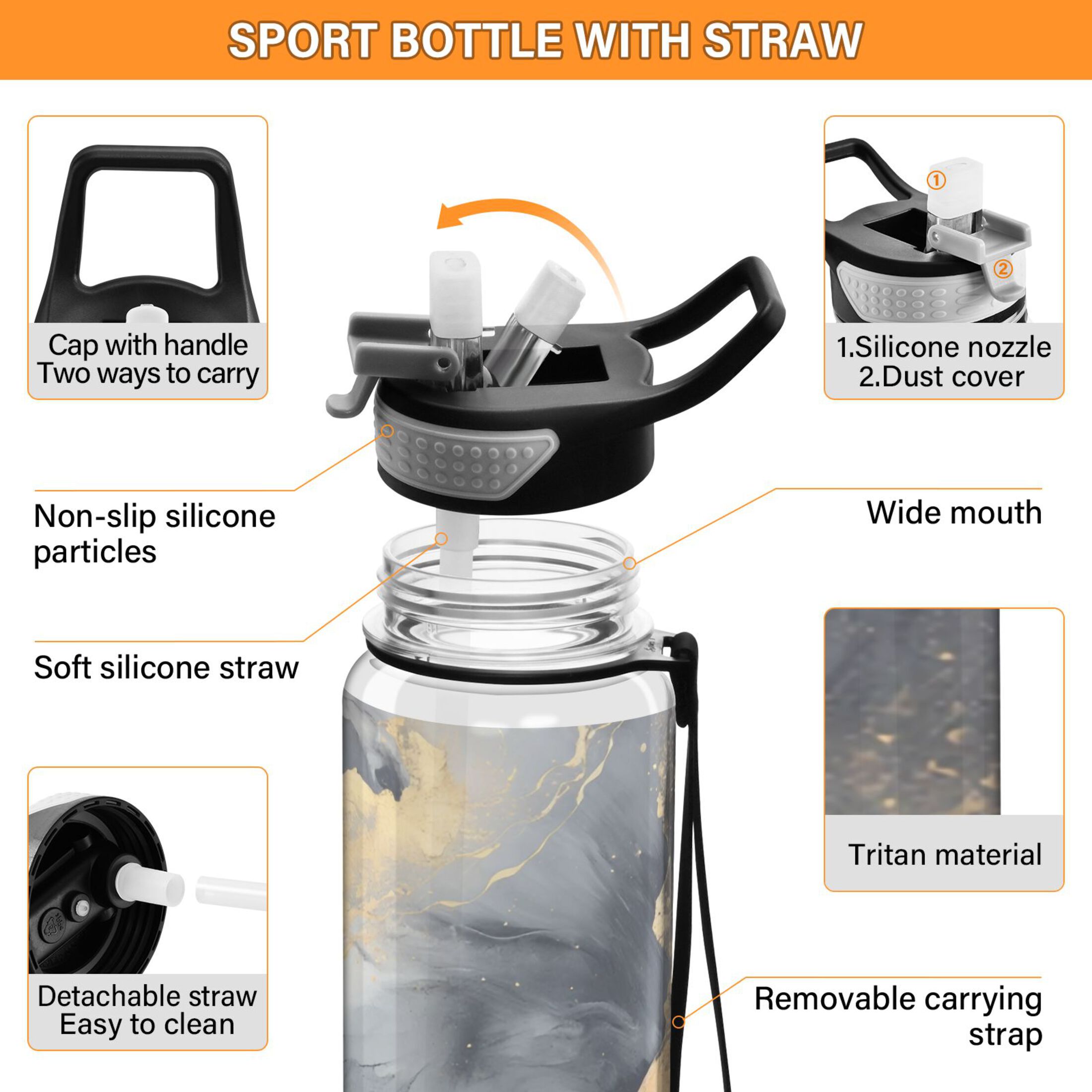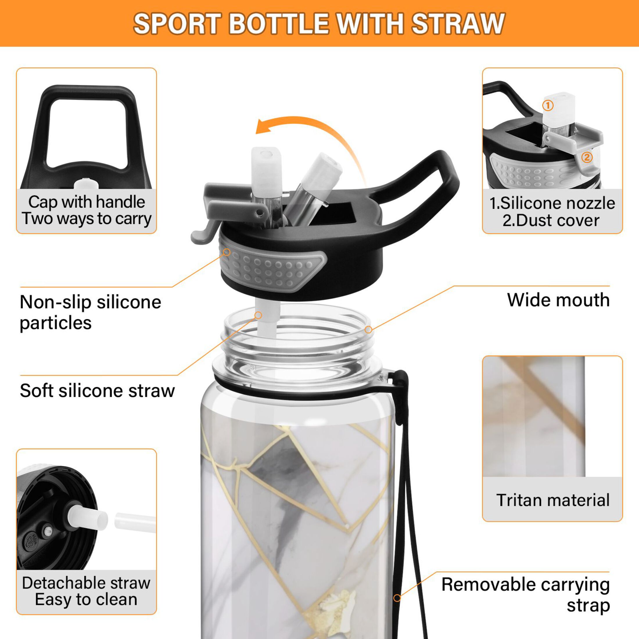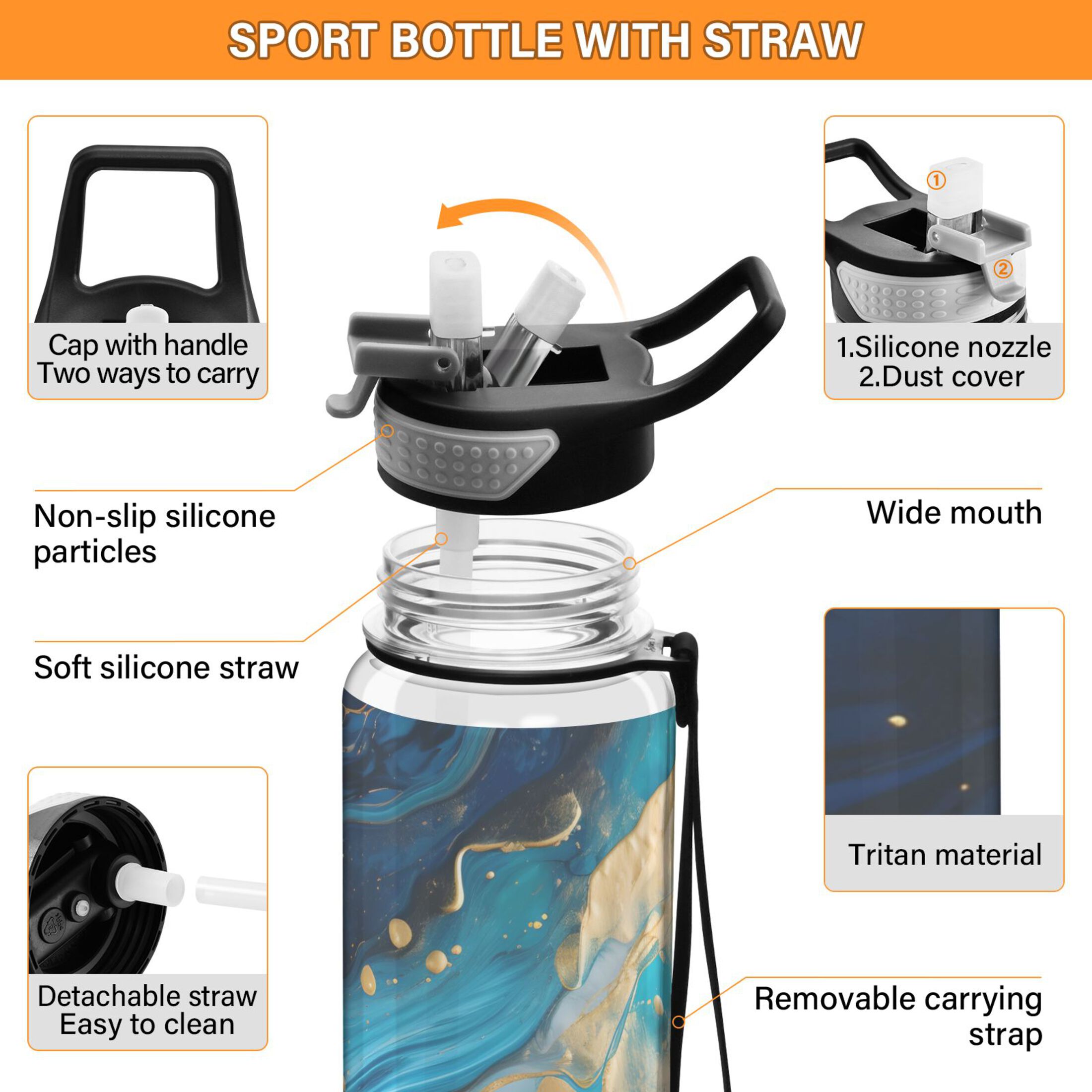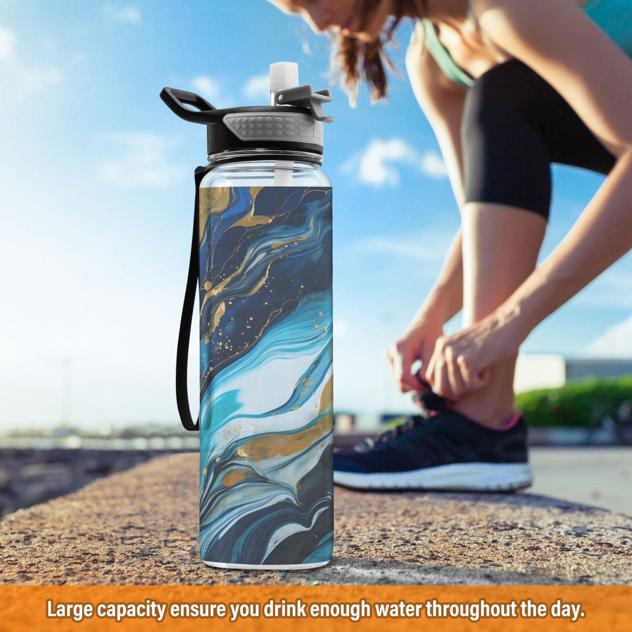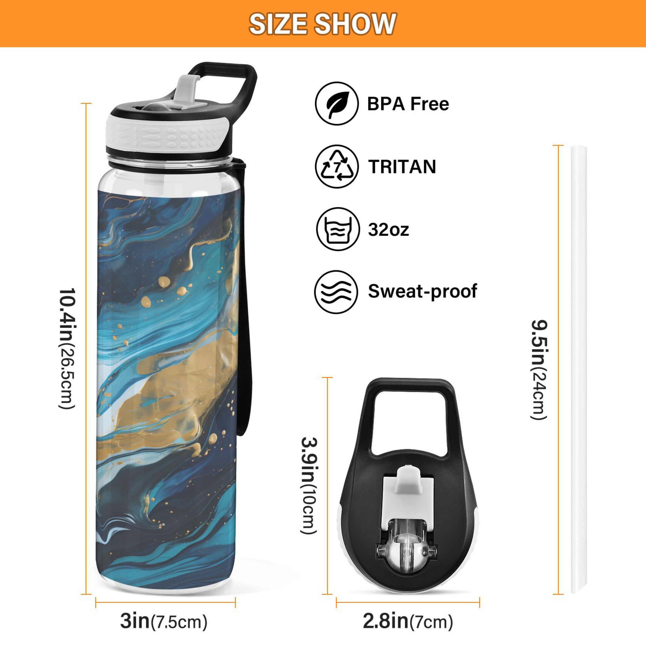 Aqua and Blue Text Design- Totes Adorbs on White Background 21 oz Sports Water Bottle wb-220792-1