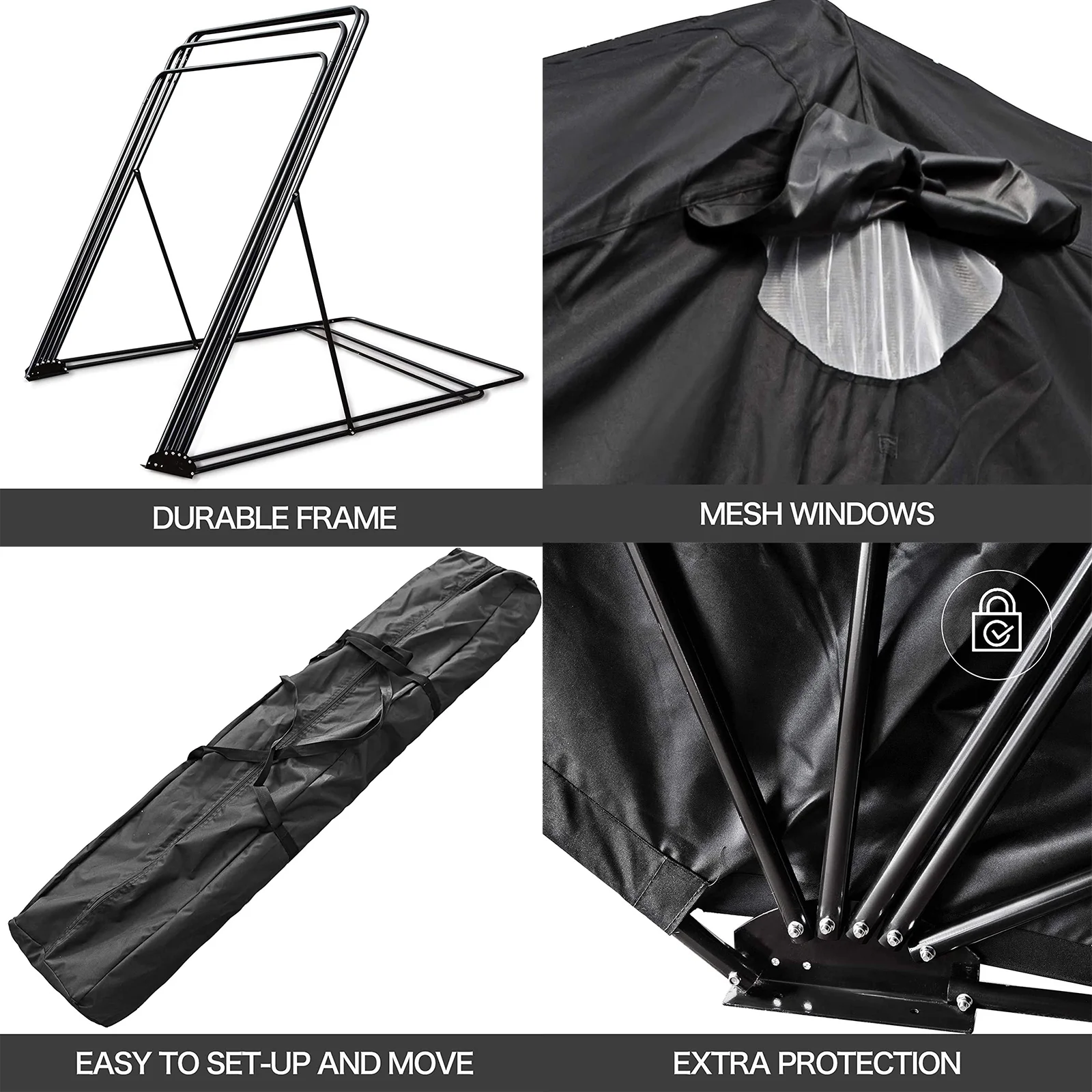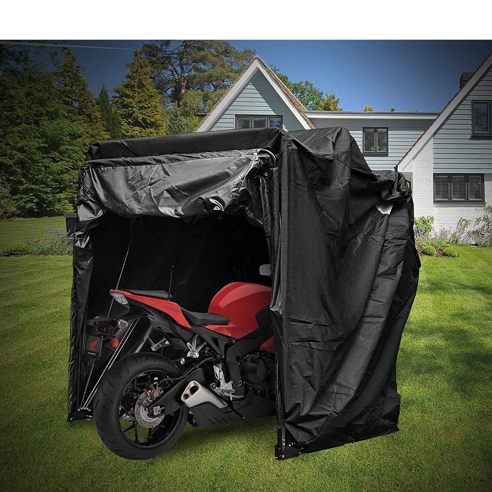 INTBUYING Small Motorcycle Cover Tent Shelter Bicycles Scooter Storage Shed 106.3x41.34x6in Black