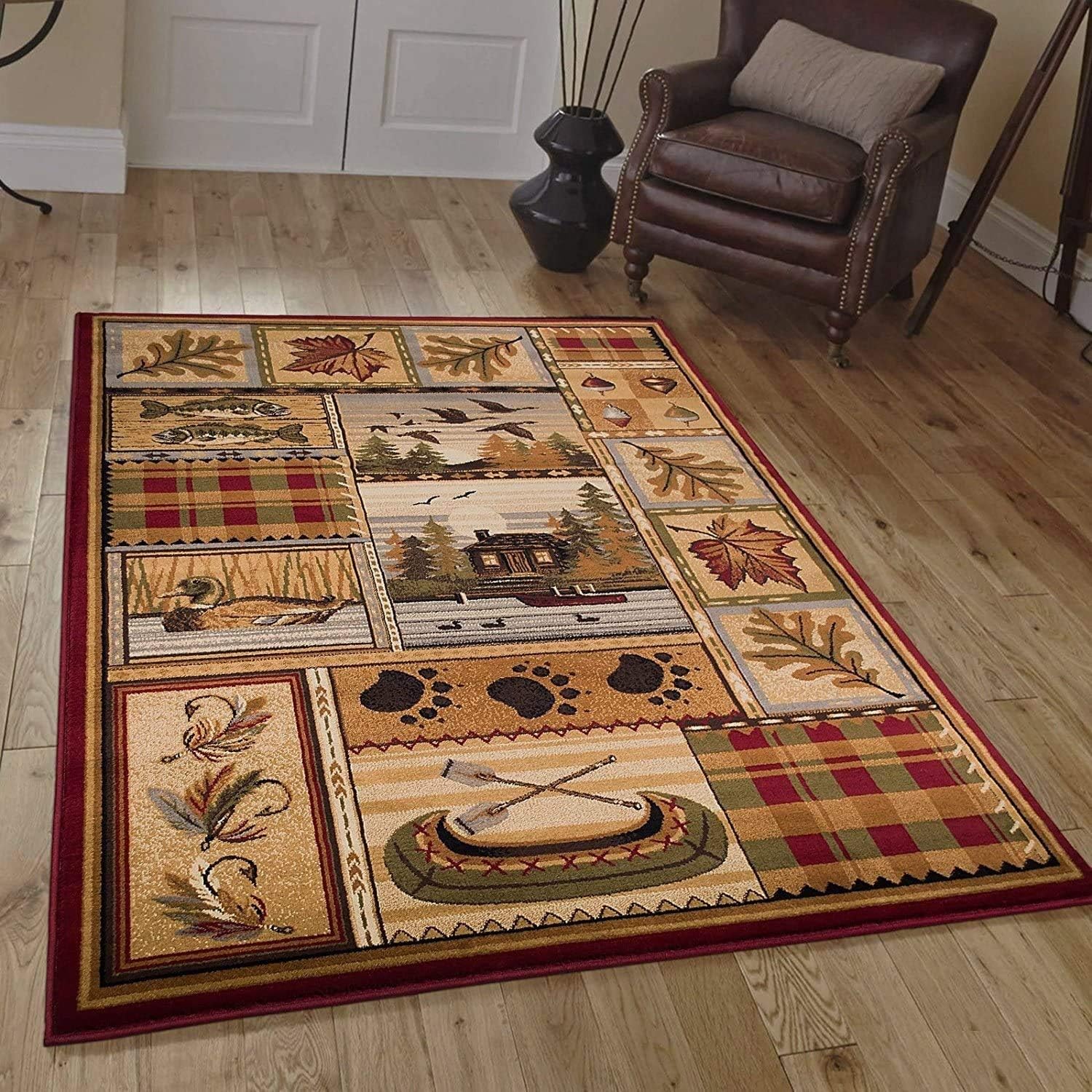 Wildlife Nature Cabin Lodge Scene Boat Fish Flying s Area Rug Carpet (2 Feet X 3 Feet)
