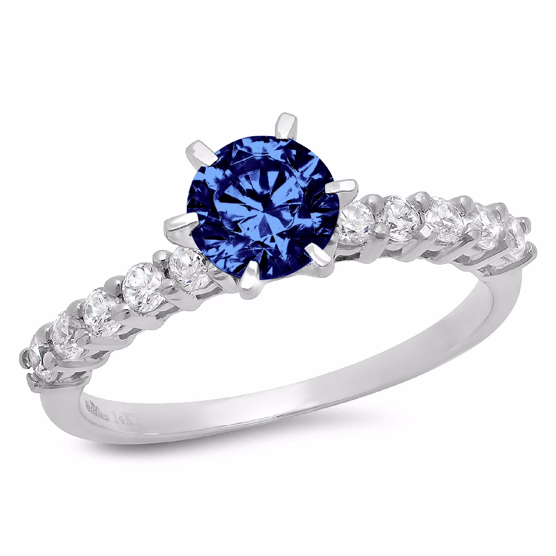 1.05ct round cut blue simulated tanzanite 14k white gold anniversary engagement ring size 10.5
