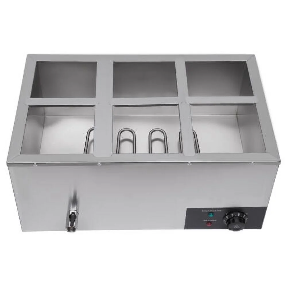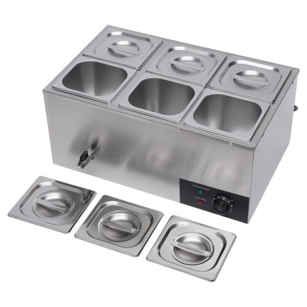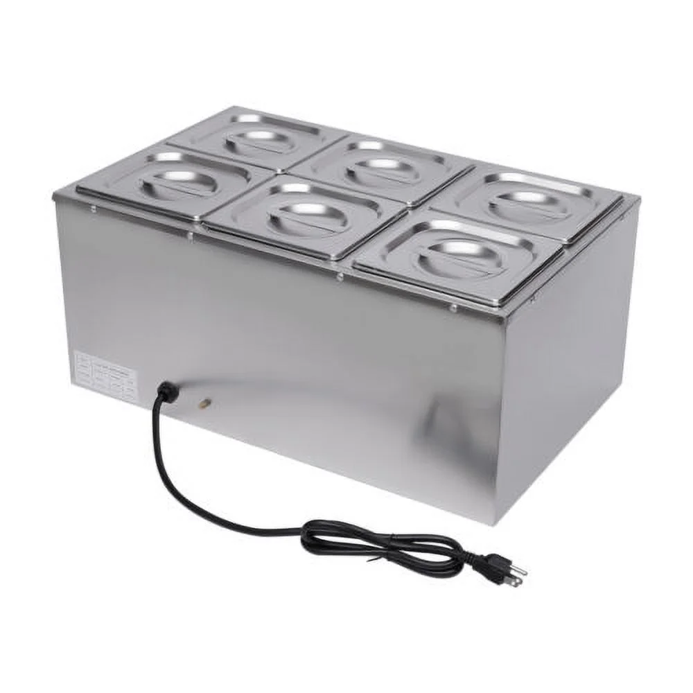 600W 110V Bain Marie 6 Pots Pans Commercial Buffet Food Warmer Stainless Steel