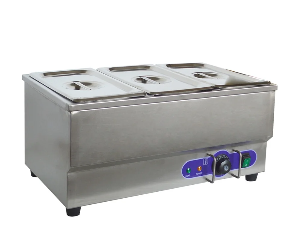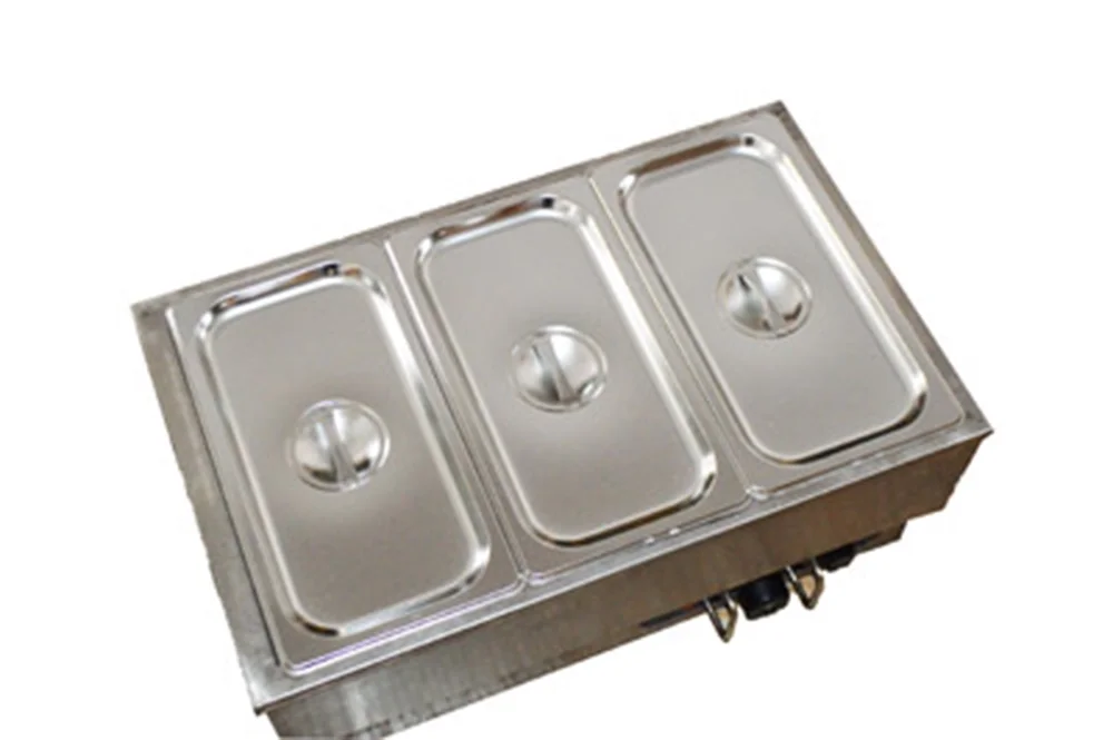PreAsion 3-Pot Buffet Warmer Steam Table Food Soup Heat Canteen Kitchen Desk Type
