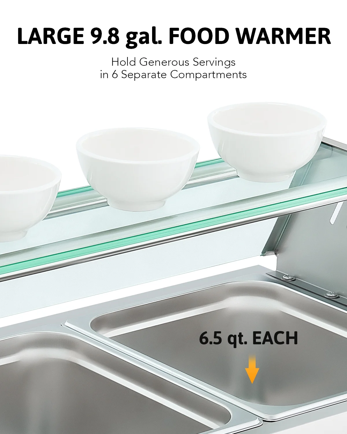 Wilprep Commercial Food Warmer 1200W Bain Marie Food Warmer with 6 Stainless Steel Pans