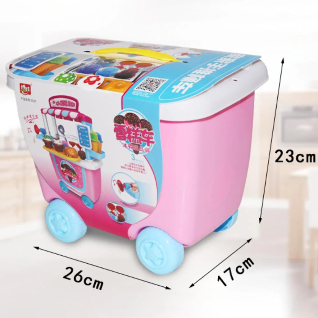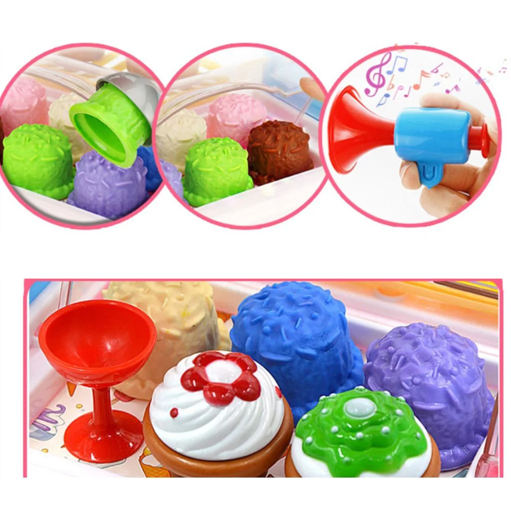 Cream Candy Cart Food Dessert and Cash Trolley Set Toy with Music and Lighting Kids and Girls Toys Ice Cream Shop
