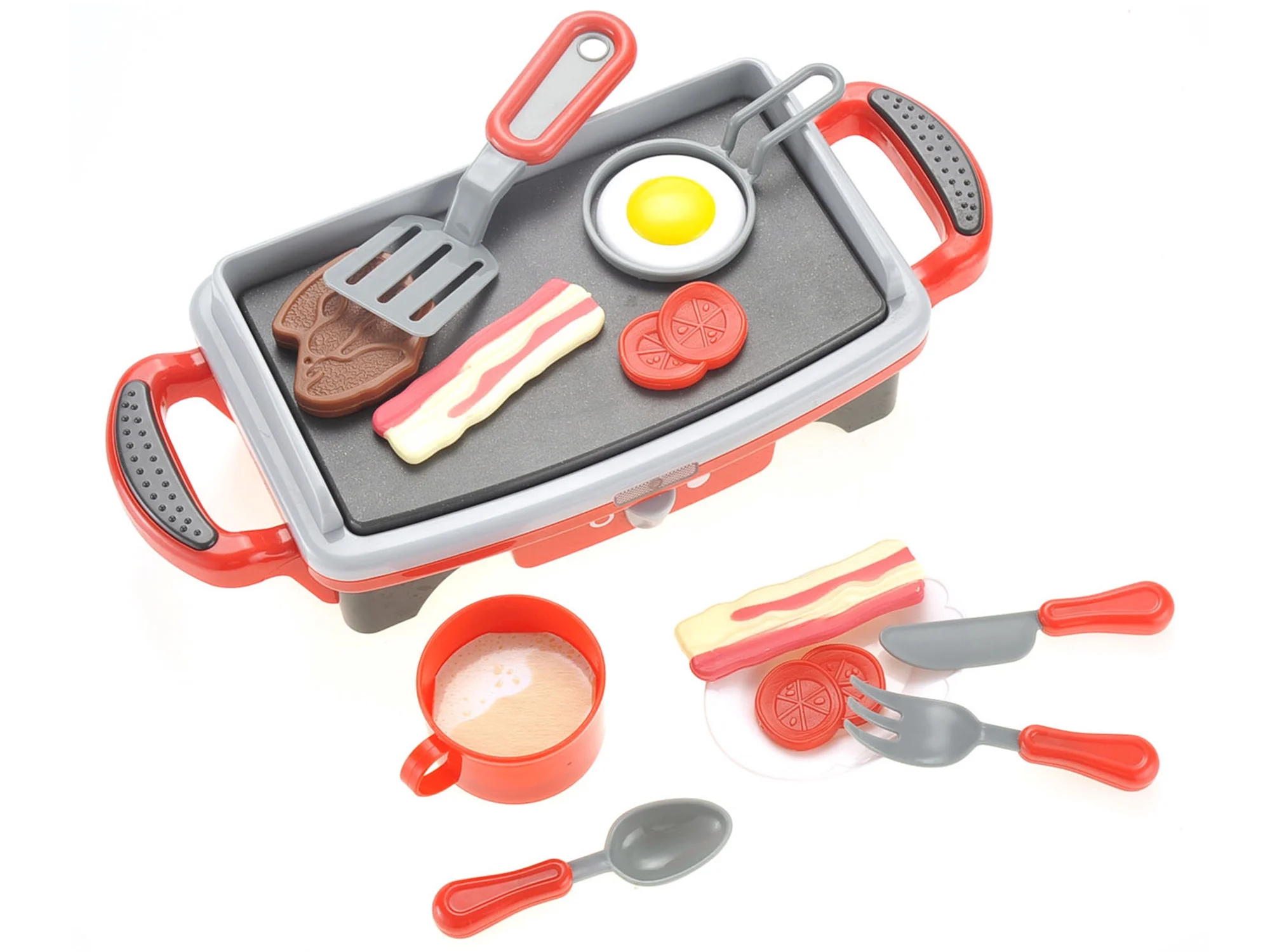 Pretend Play Kitchen Toy with Foods, Cookware and Electric Griddle, Realistic Light and Sound, Learning Gift for Girls Boys