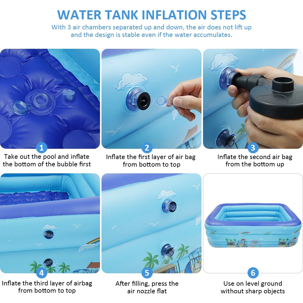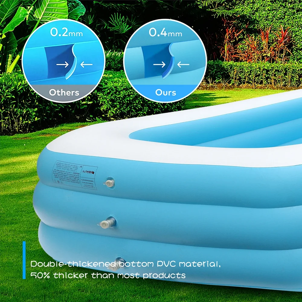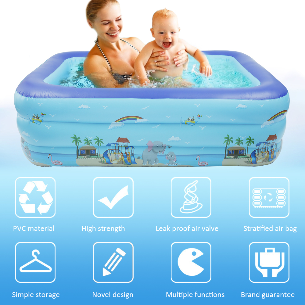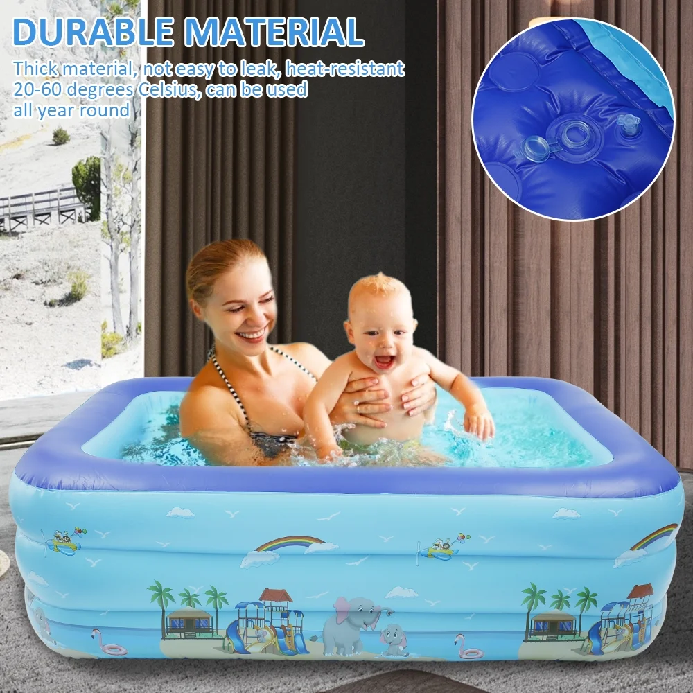 Inflatable Swimming Pool Padding Pool Swim Centre Pools Children Bathing Tub Rectangular for Kids Adults Family Indoor Outdoor Garden Toys Game Above Ground, Backyard, Garden, Summer Water Party