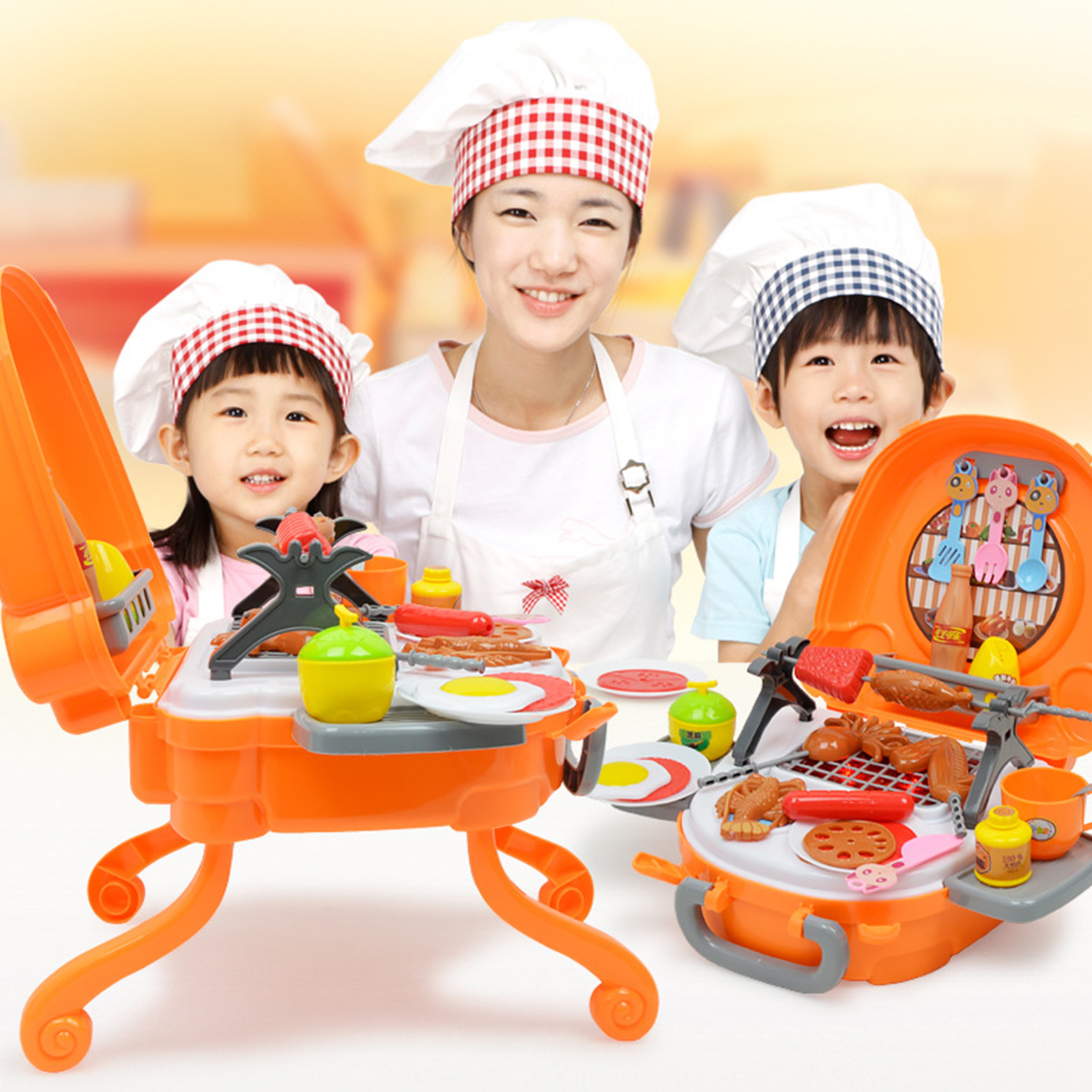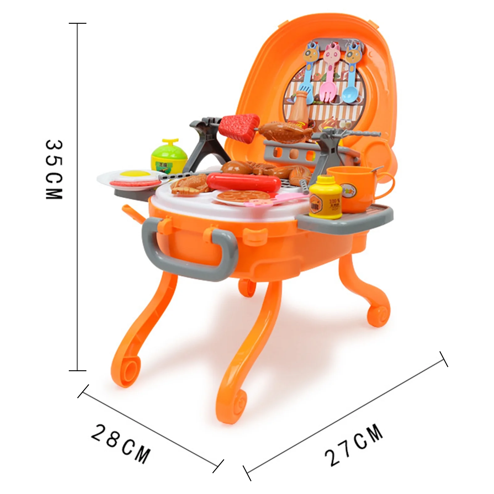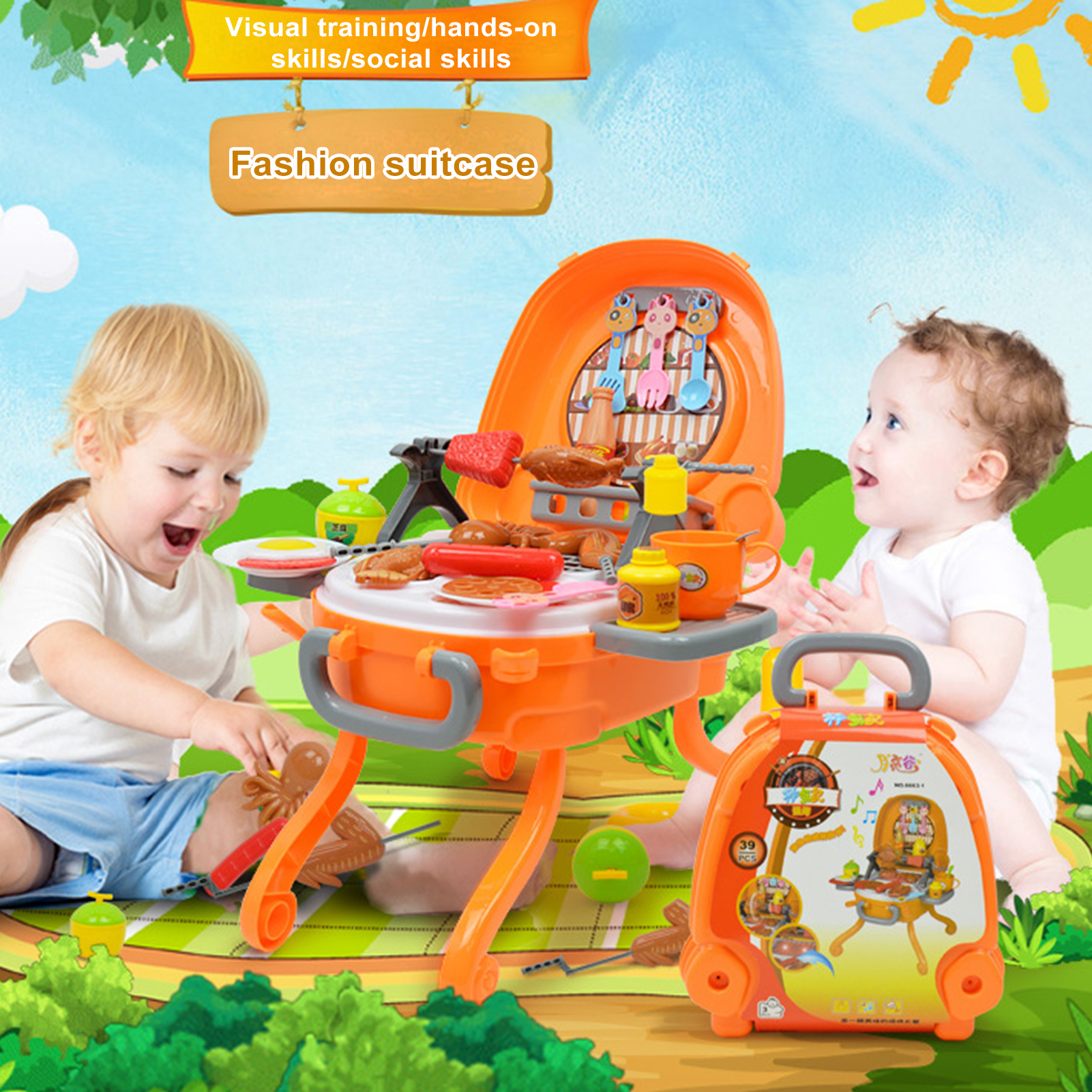 Riguas 1 Set Portable BBQ Toy Set Learn Food Cognition Tableware Skills Creative Suitcase Design Play House Toys for Kids