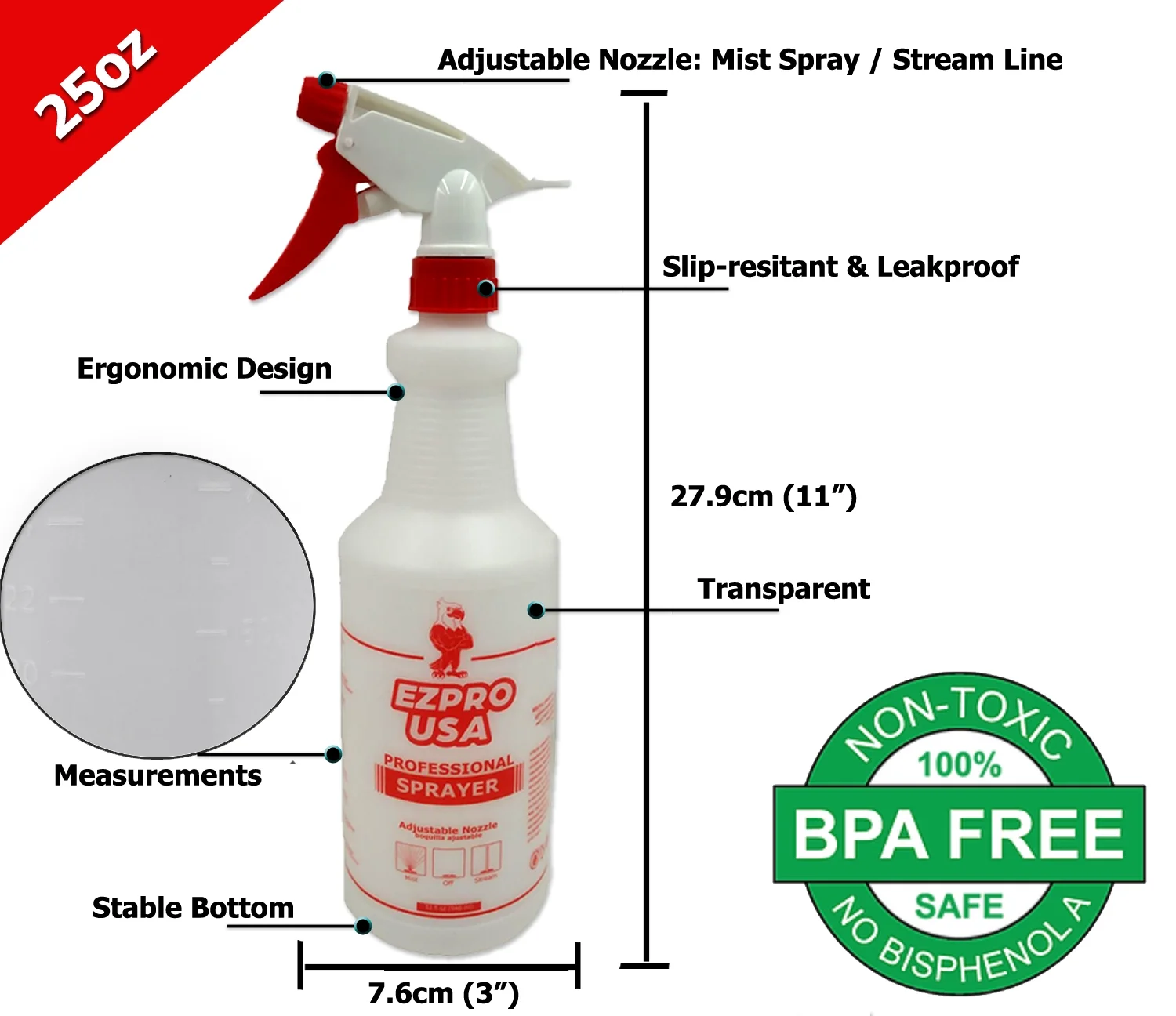 EZPRO USA 24 oz Empty Plastic Spray Bottle for Cleaning Solutions Measurements 4 Pack