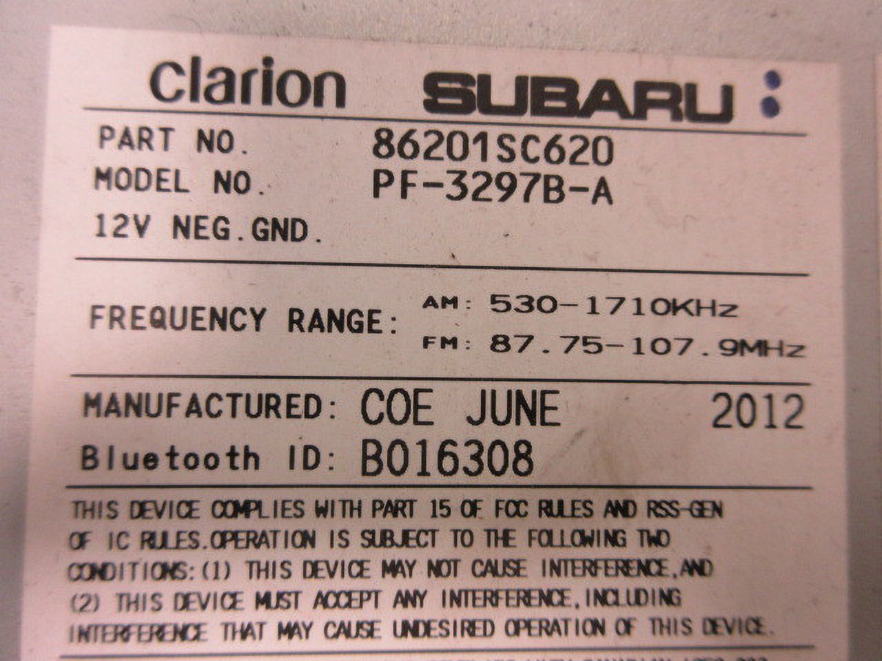 Pre-Owned 2012 Subaru Forester AM FM CD Radio Receiver CP625U1 OEM LKQ (Good)