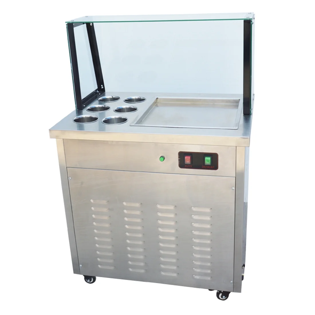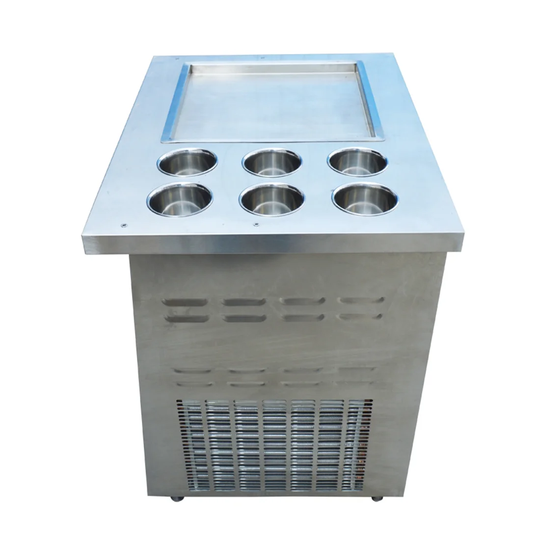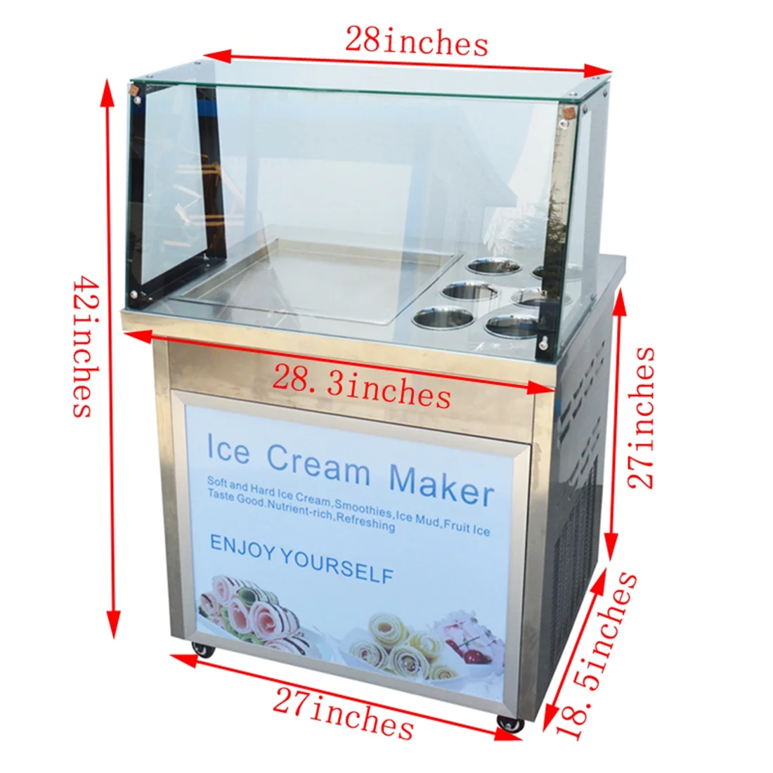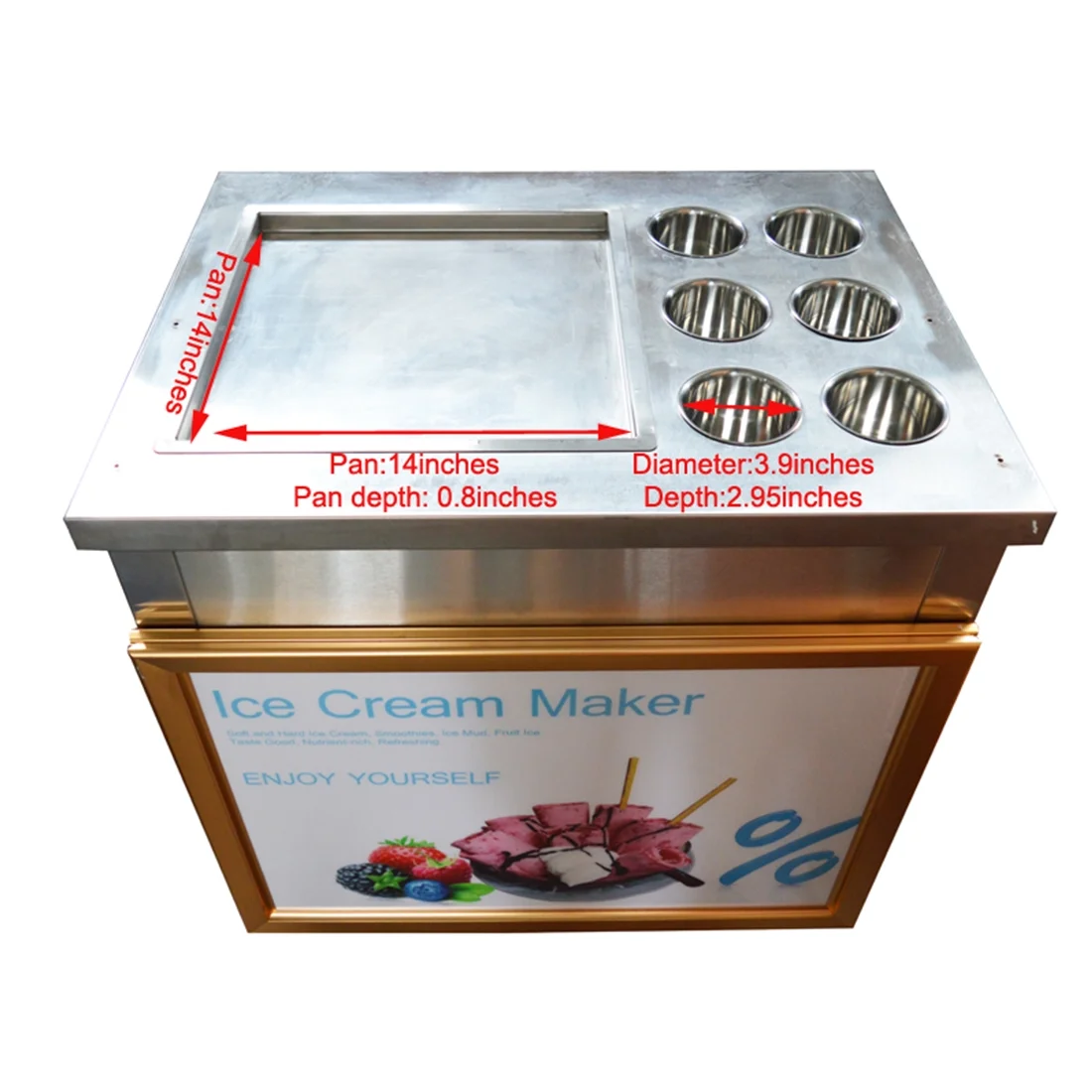 INTBUYING Commercial Fried Yogurt Machine Fried Ice Cream Maker with Dust Cover & 6 Buckets
