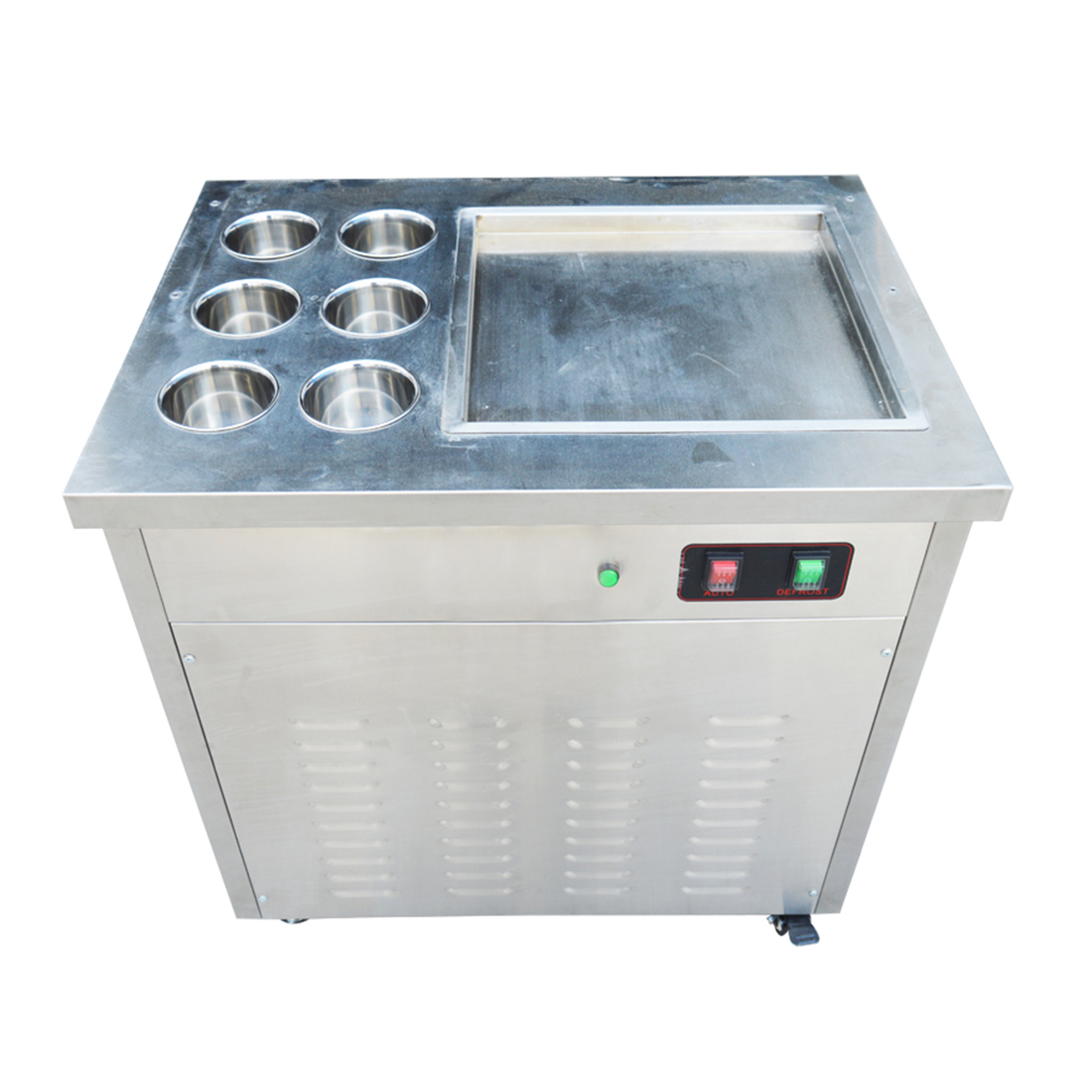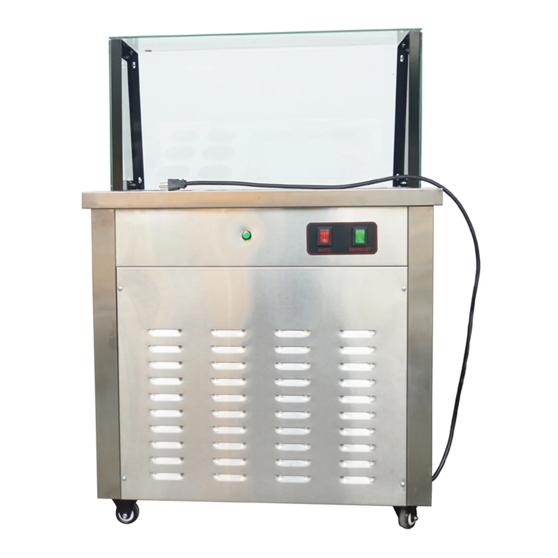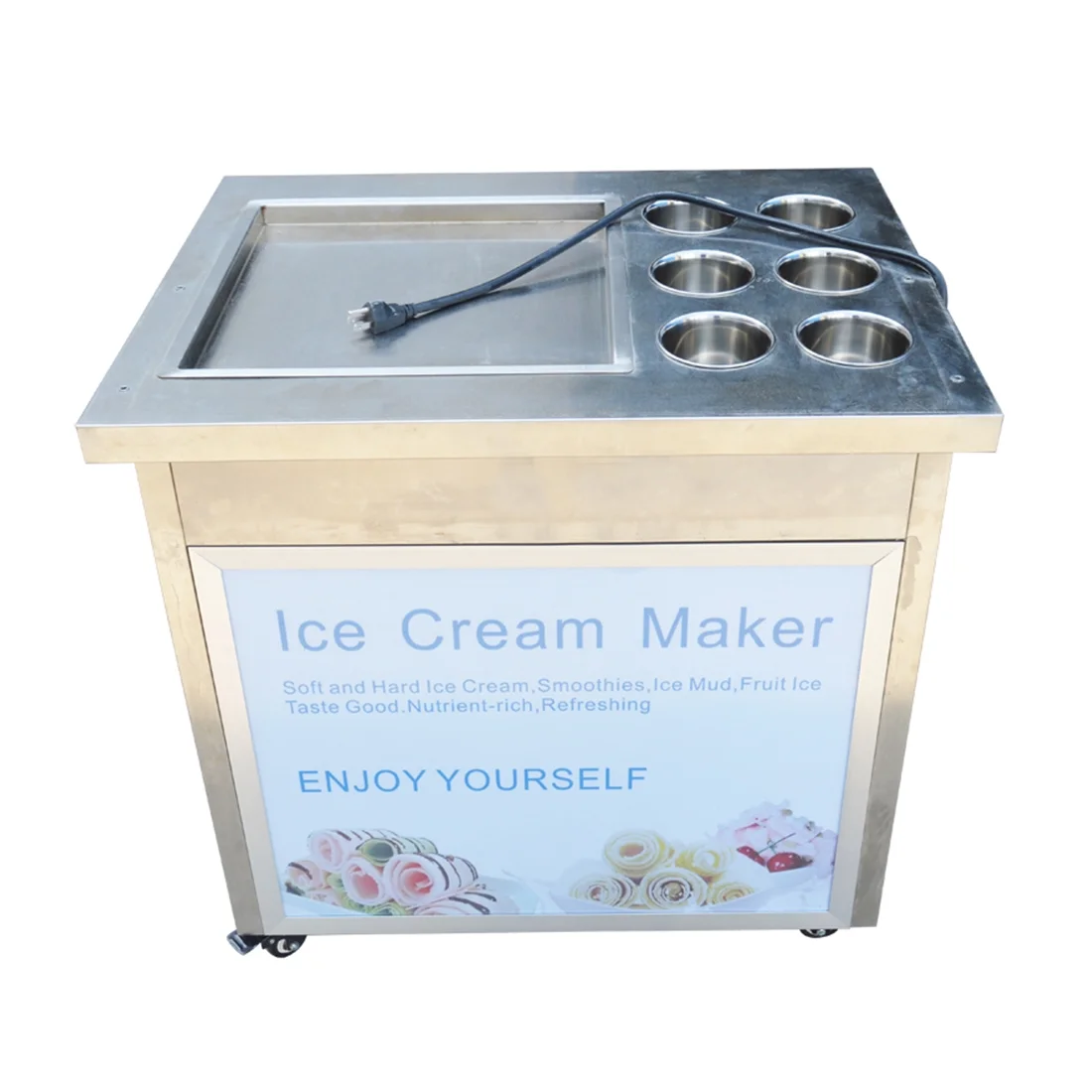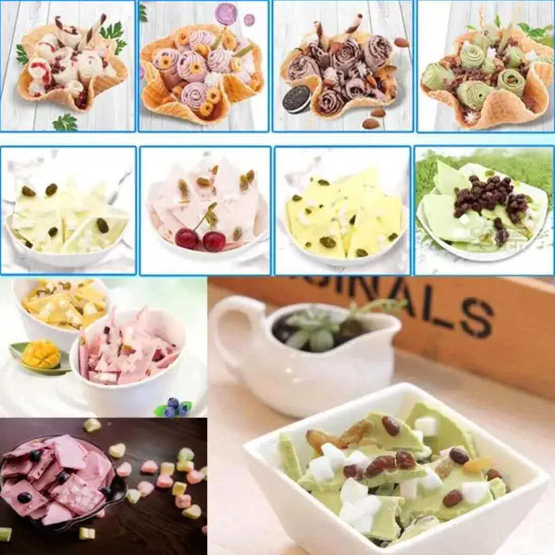INTBUYING Commercial Fried Yogurt Machine Fried Ice Cream Maker with Dust Cover & 6 Buckets