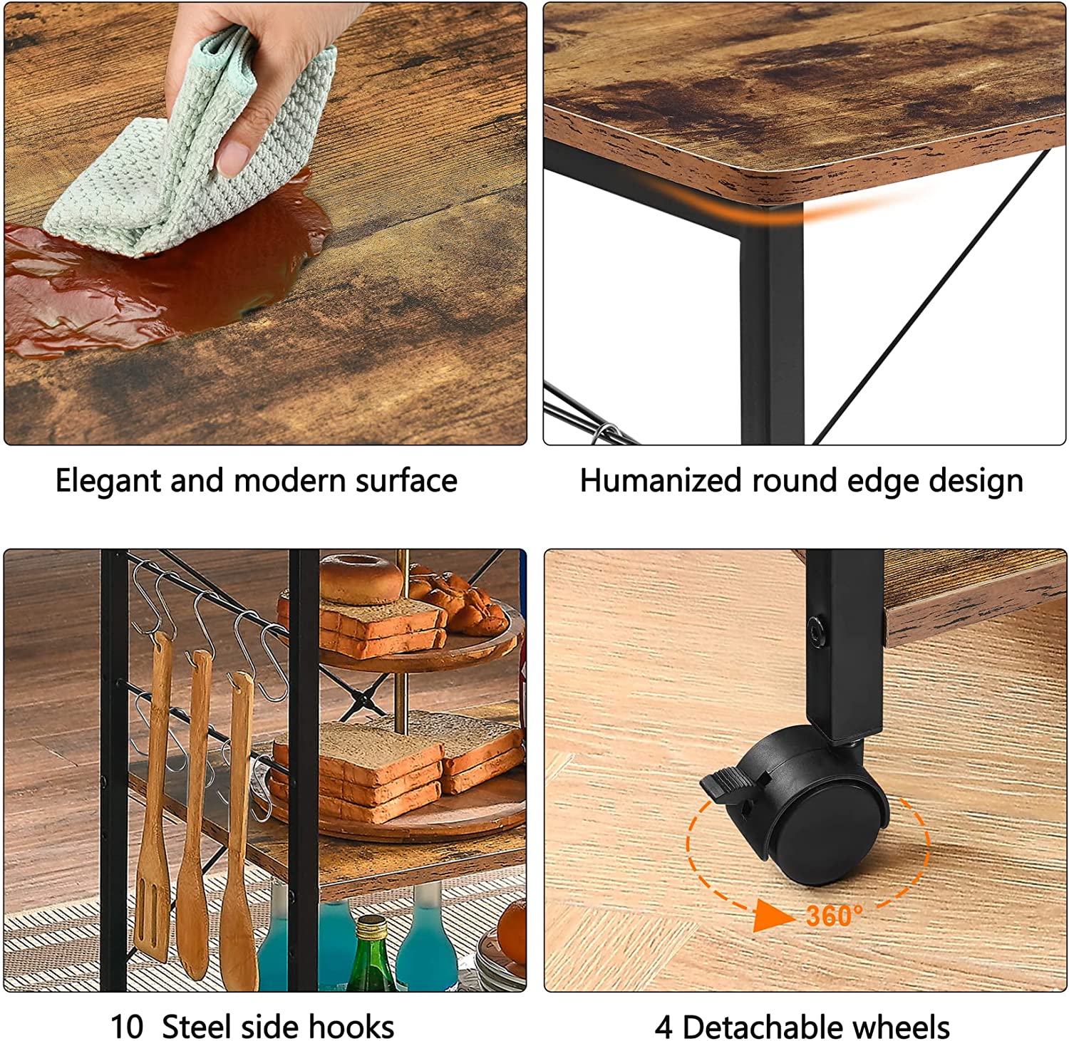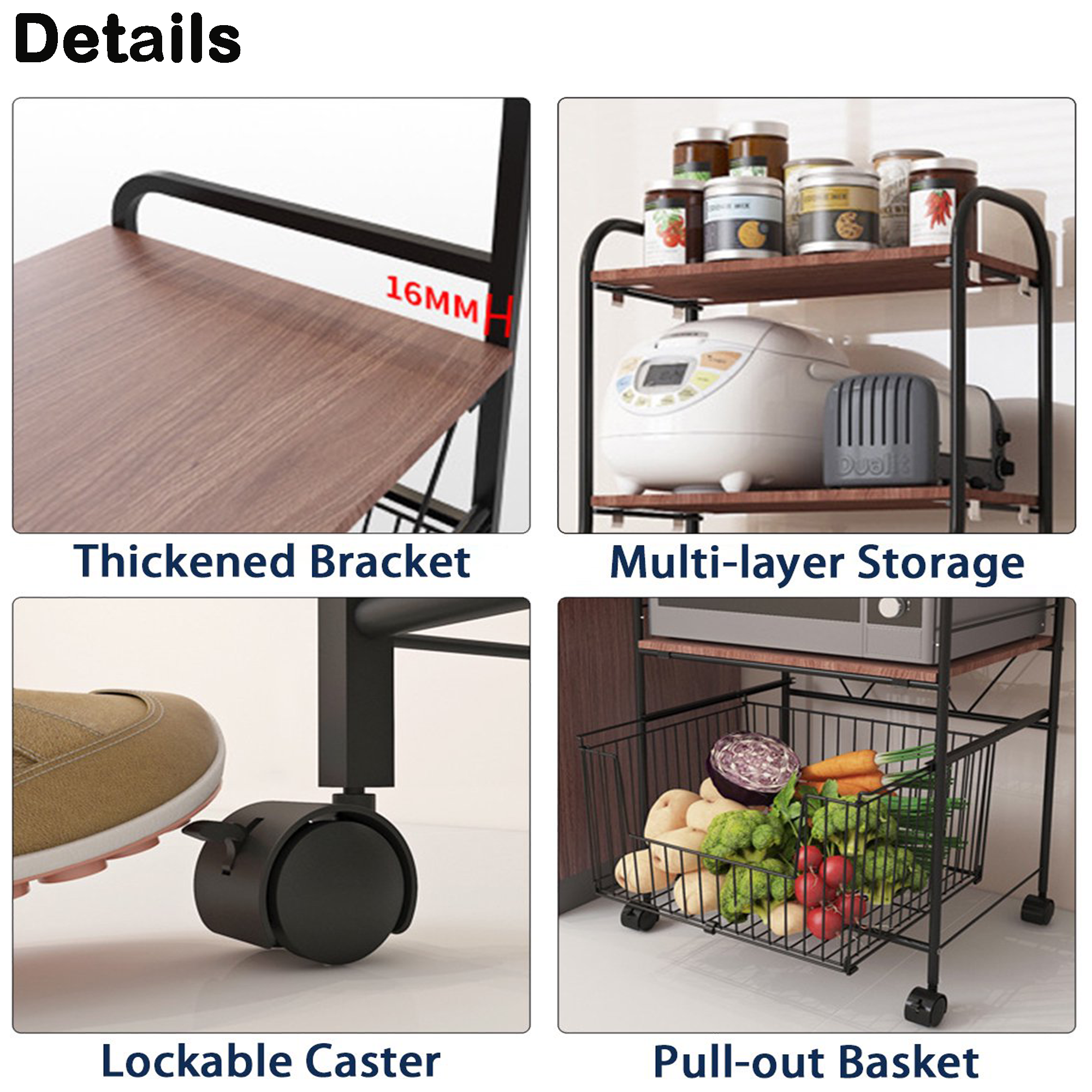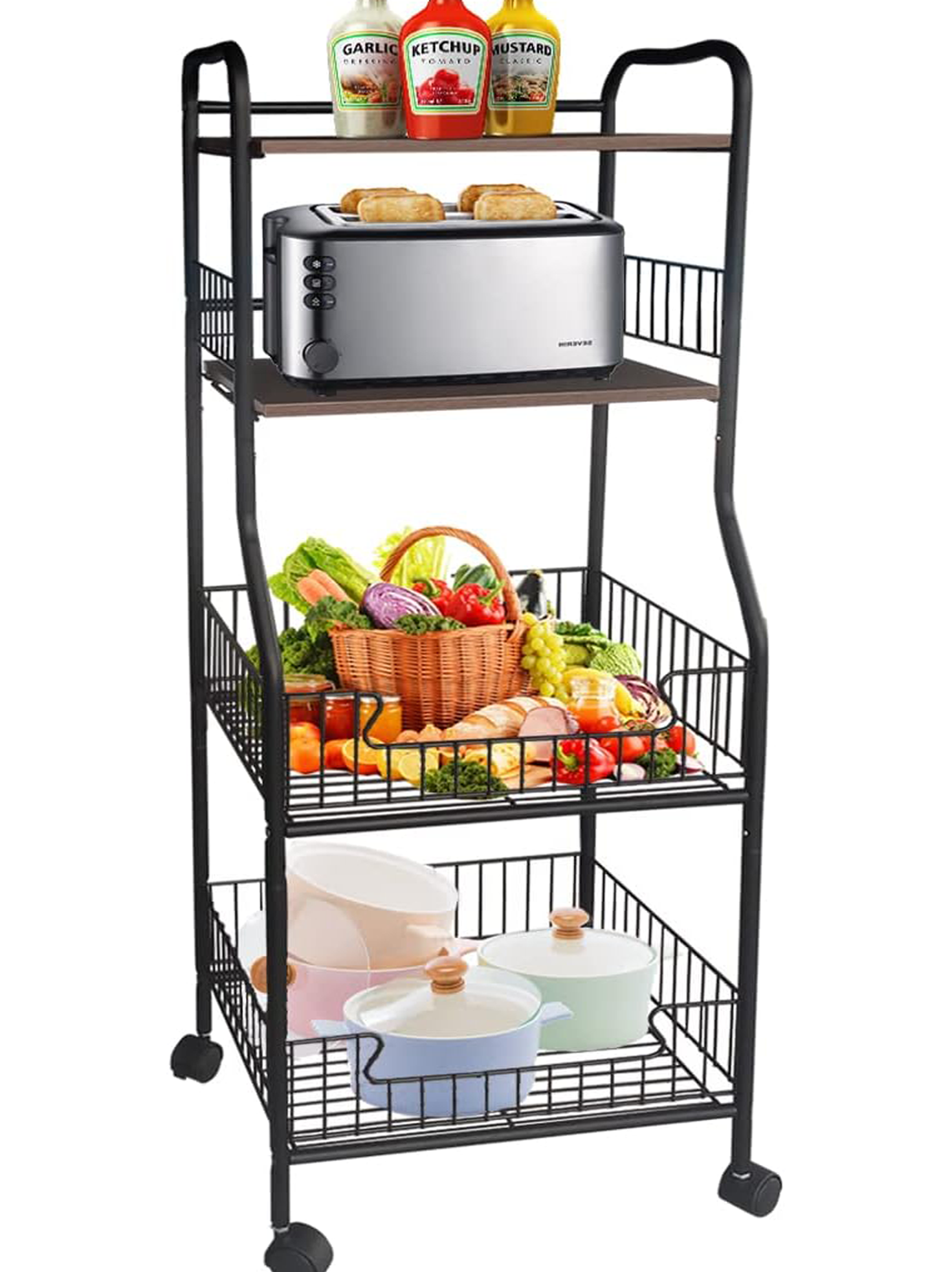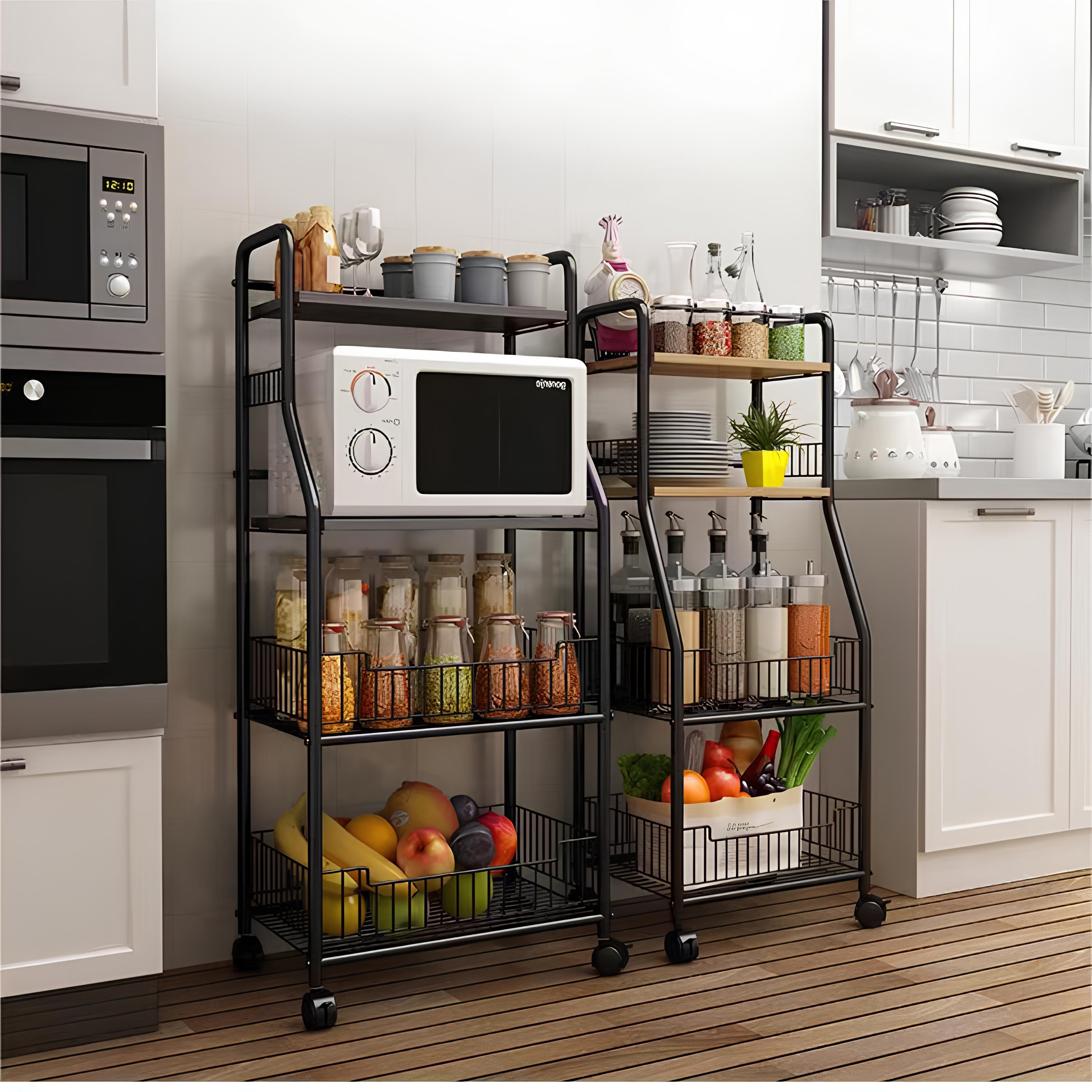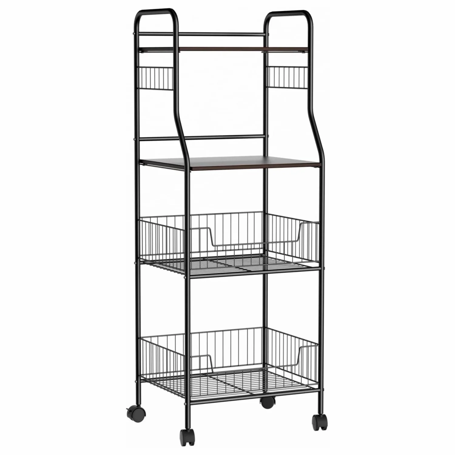 Nisorpa 4 Tiers Kitchen Baker's Rack, Microwave Oven Storage Organizer with Wheels
