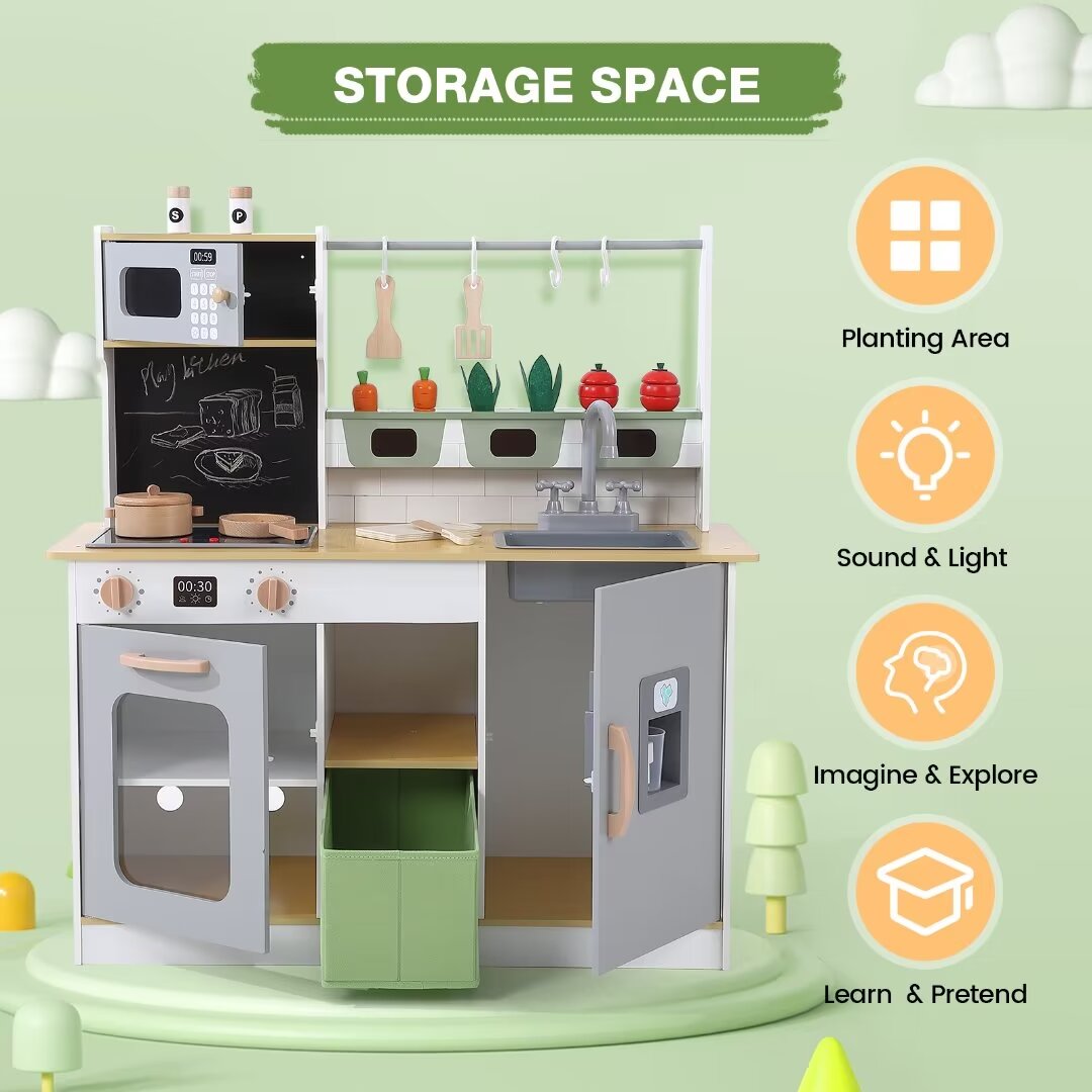 KidKraft Wooden Large Pastel Play Kitchen with Turning Knobs and Play Phone