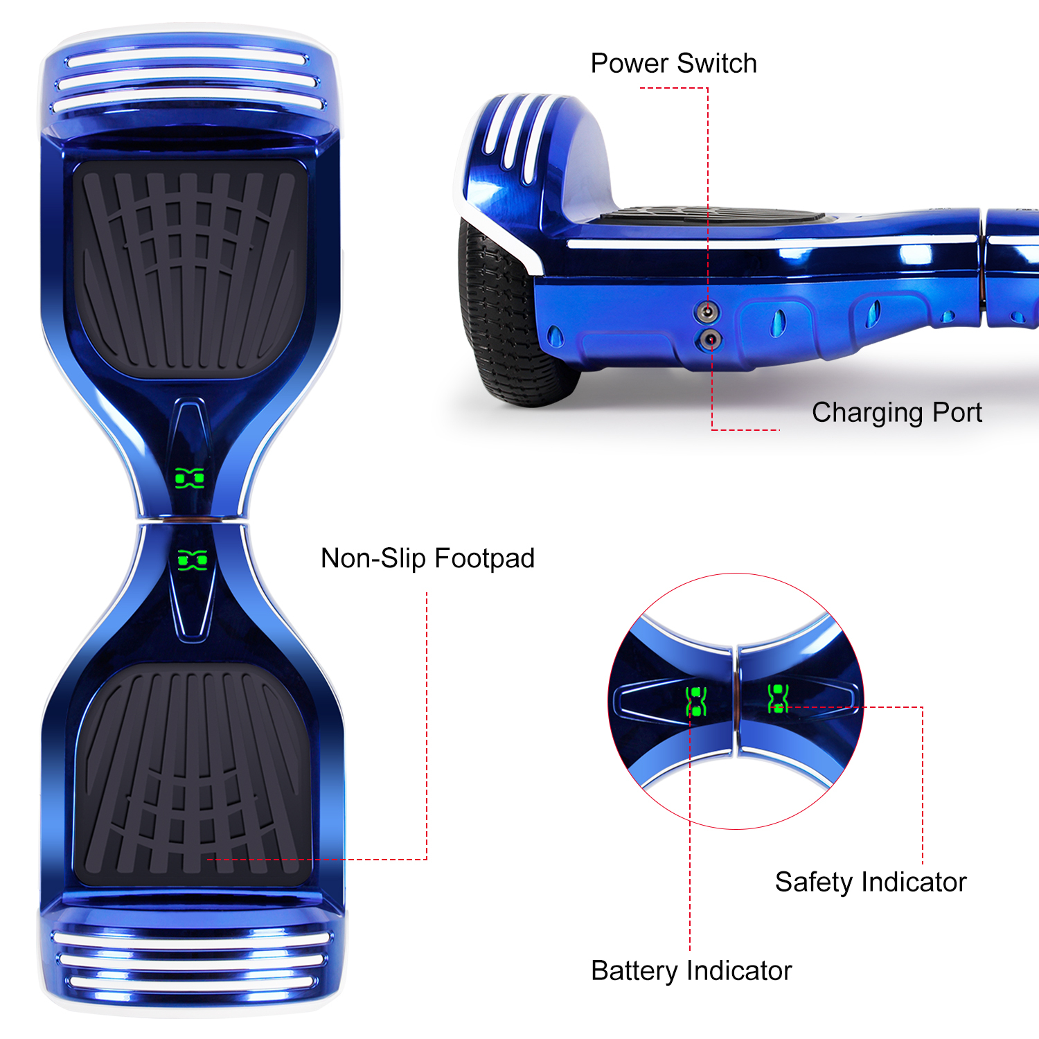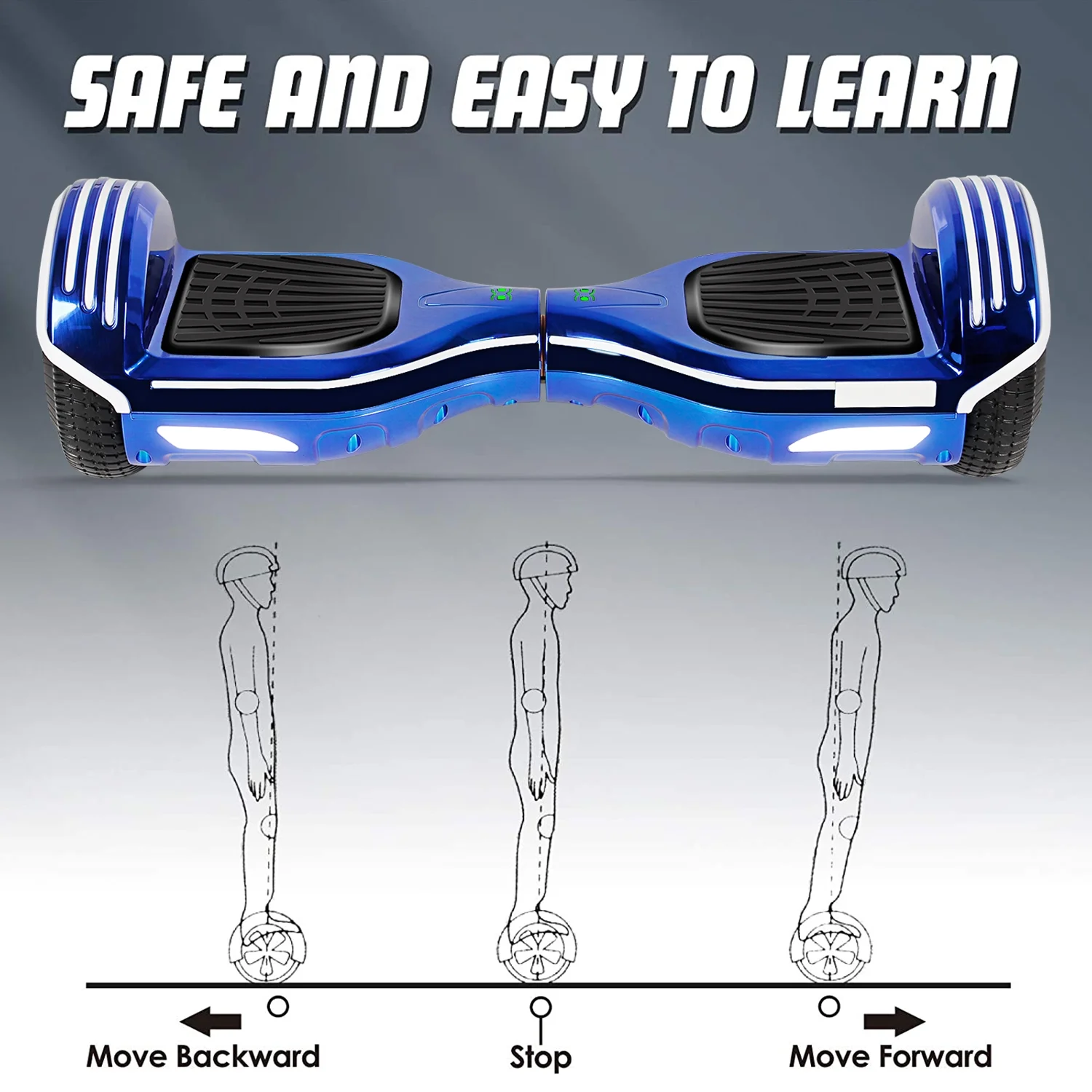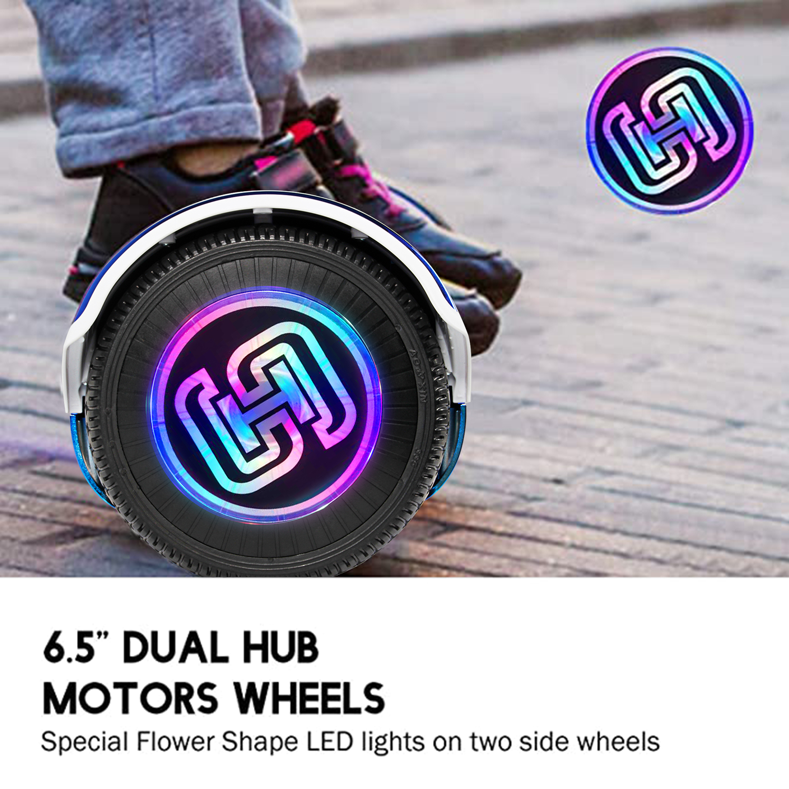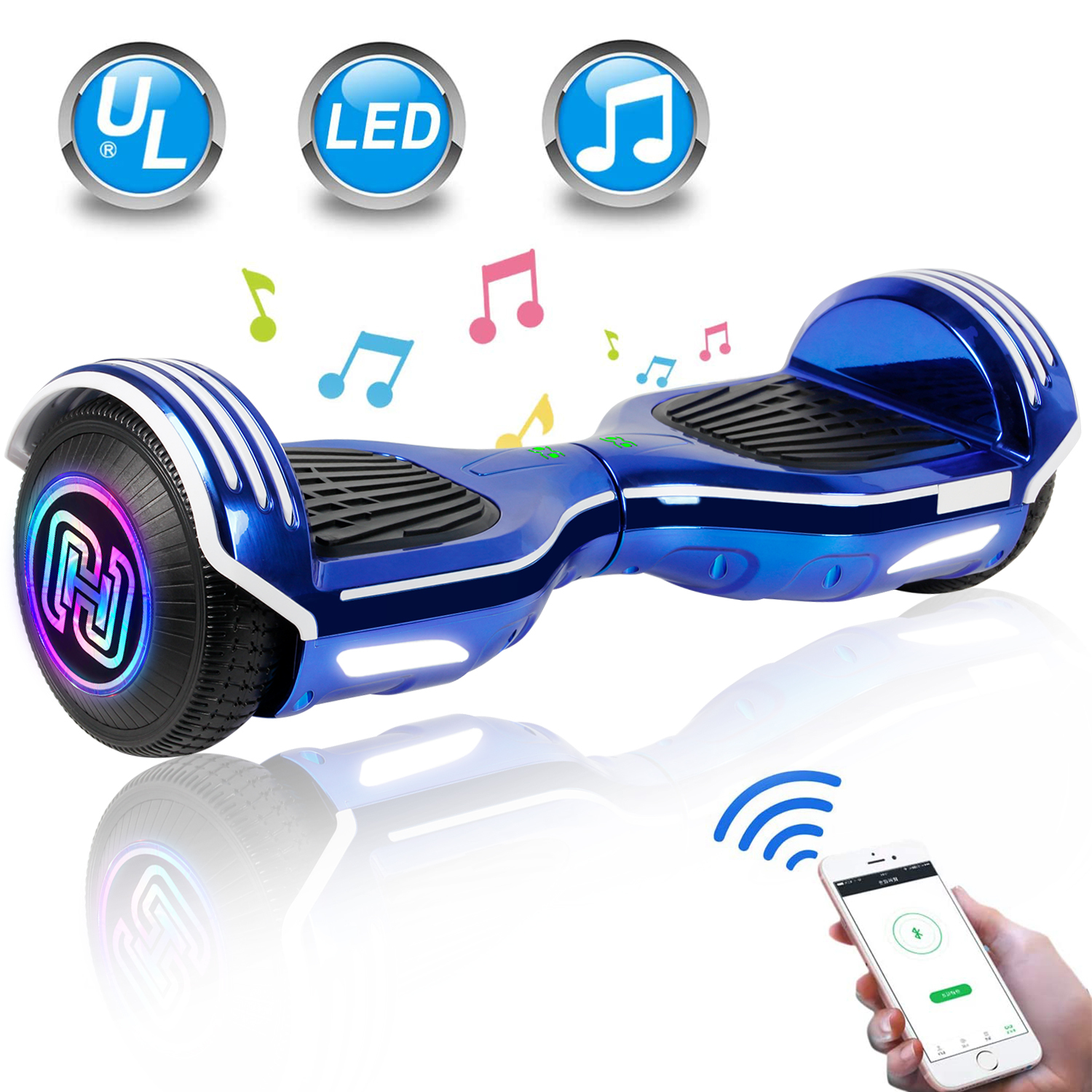 LIEAGLE Hoverboard with Bluetooth Speaker 6.5” Two Wheels Colorful Flash Self Balancing Scooter, Blue