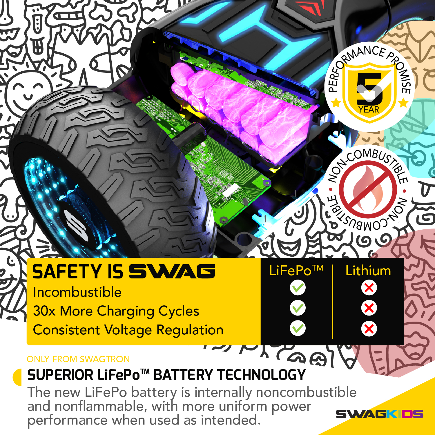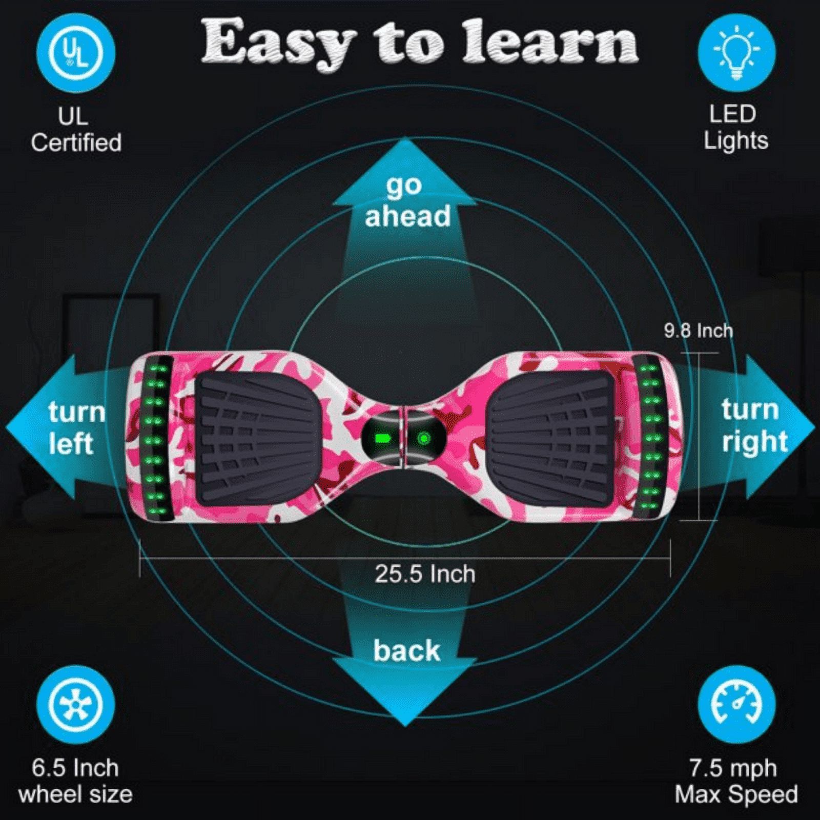 LIEAGLE Hoverboard for Kids 6.5'' Self Balancing Electric Scooter with Bluetooth Speaker and Lights