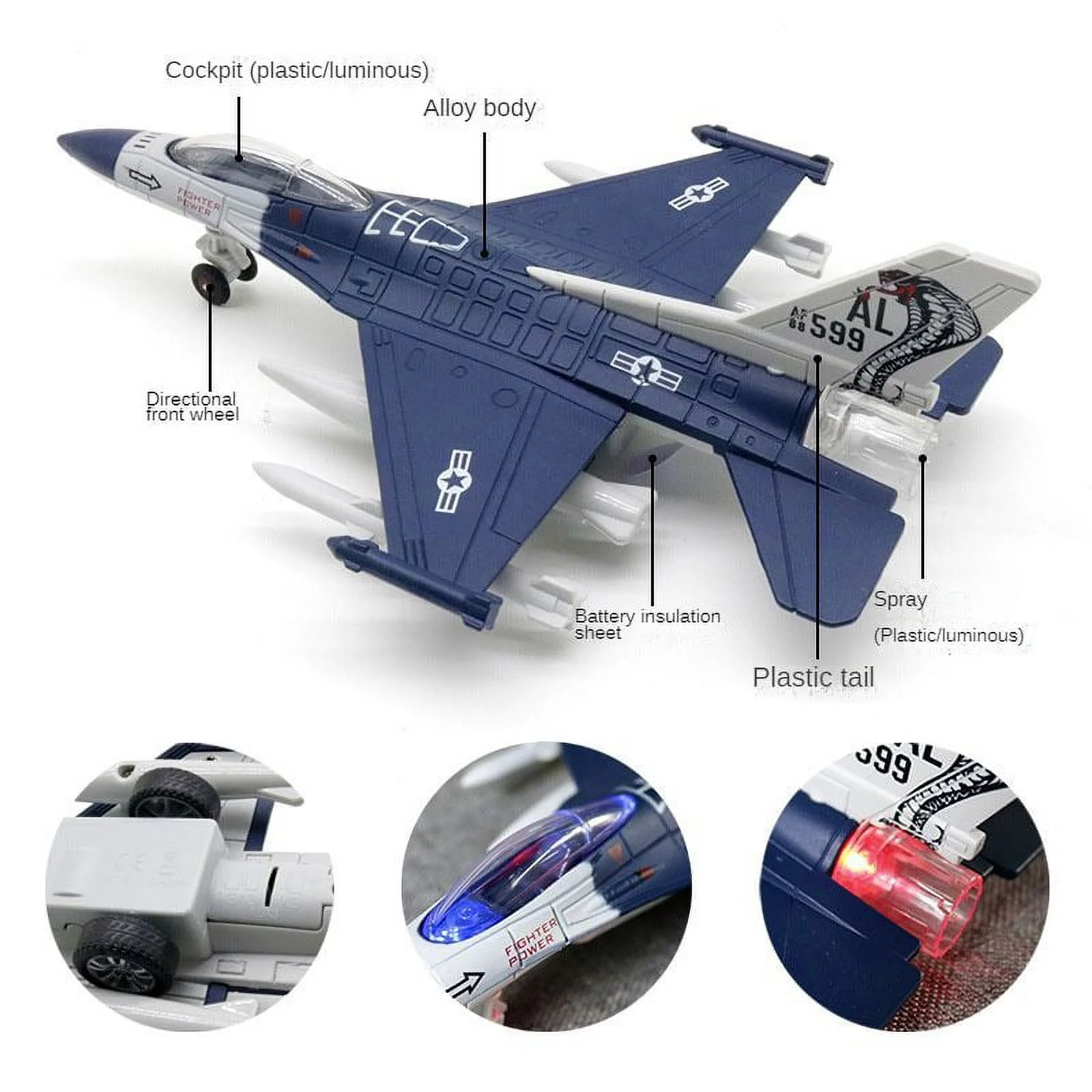 Airplane Toy for Boys, Upgraded Metal Plane Vehicle Playset, Mini Airplanes with Light, Pull Back Fighter Toy for Boys Toddler Kids 3 4 5 6 Years Old