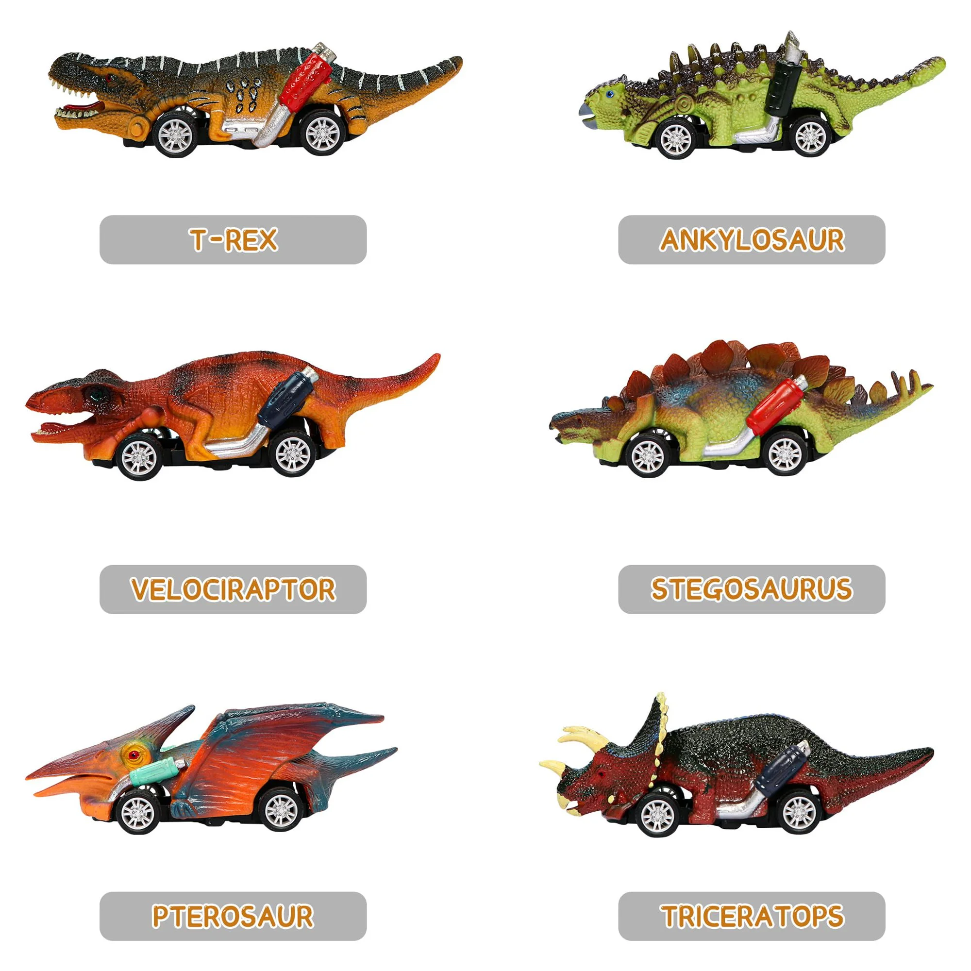 Flooyes Dinosaur Toys for Kids 3-5, Pull Back Dinosaur Cars for 3 4 5 6 7 Year Old Boys Girls 6 Pack Dino Toys Gifts for Toddlers