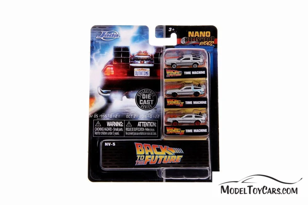 Back To The Future Time Machines 3-Pack, Gray - Jada 31583 - 1/65 scale Diecast Model Toy Car