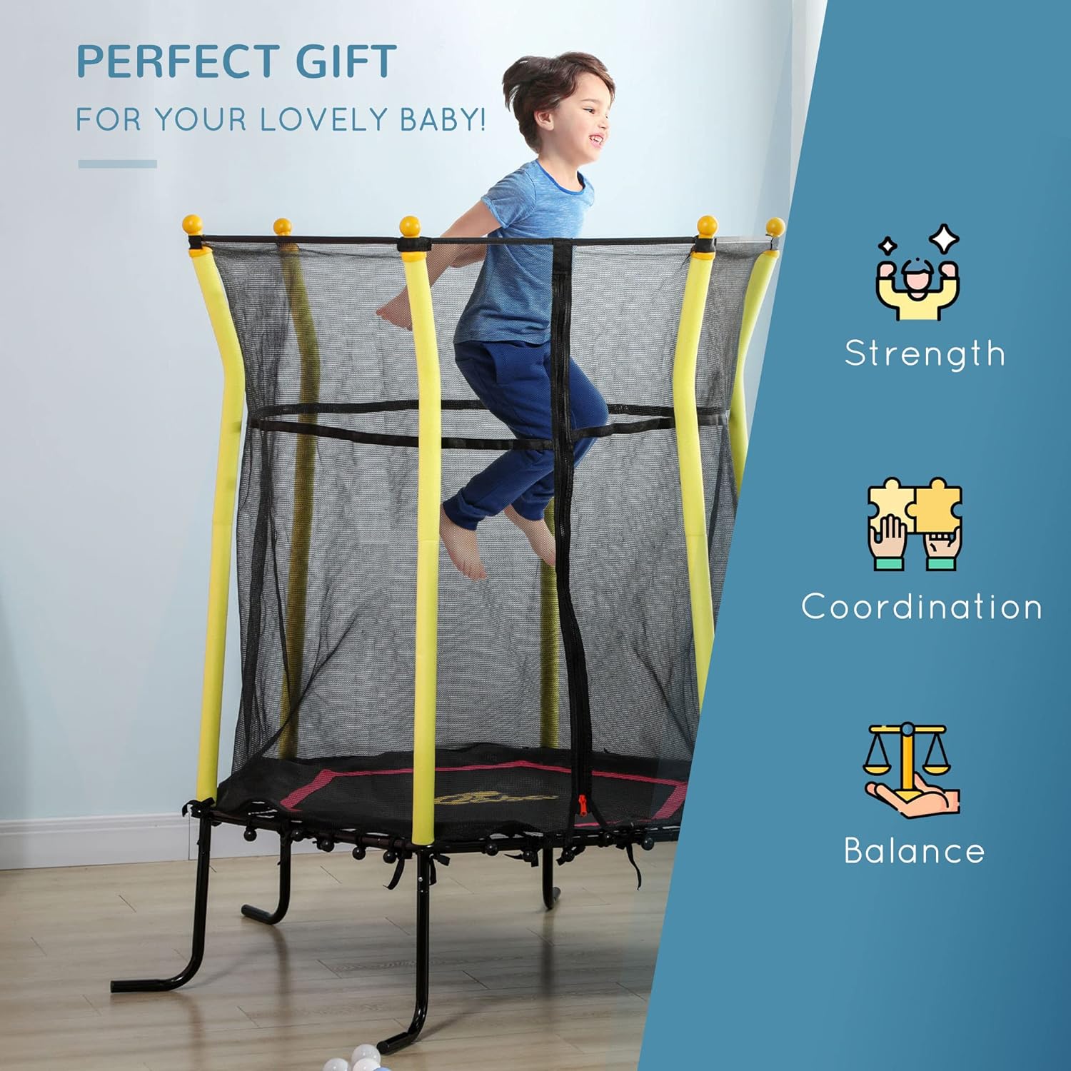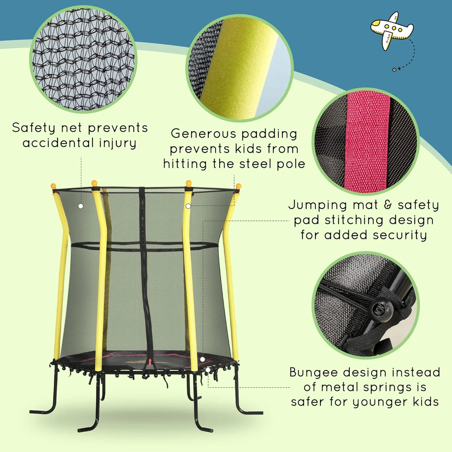 Kids Small Trampoline With Enclosure, Springfree Toddler Trampoline With Net, For Single Jumper, Indoor Play Equipment For Ages 3-10 Black