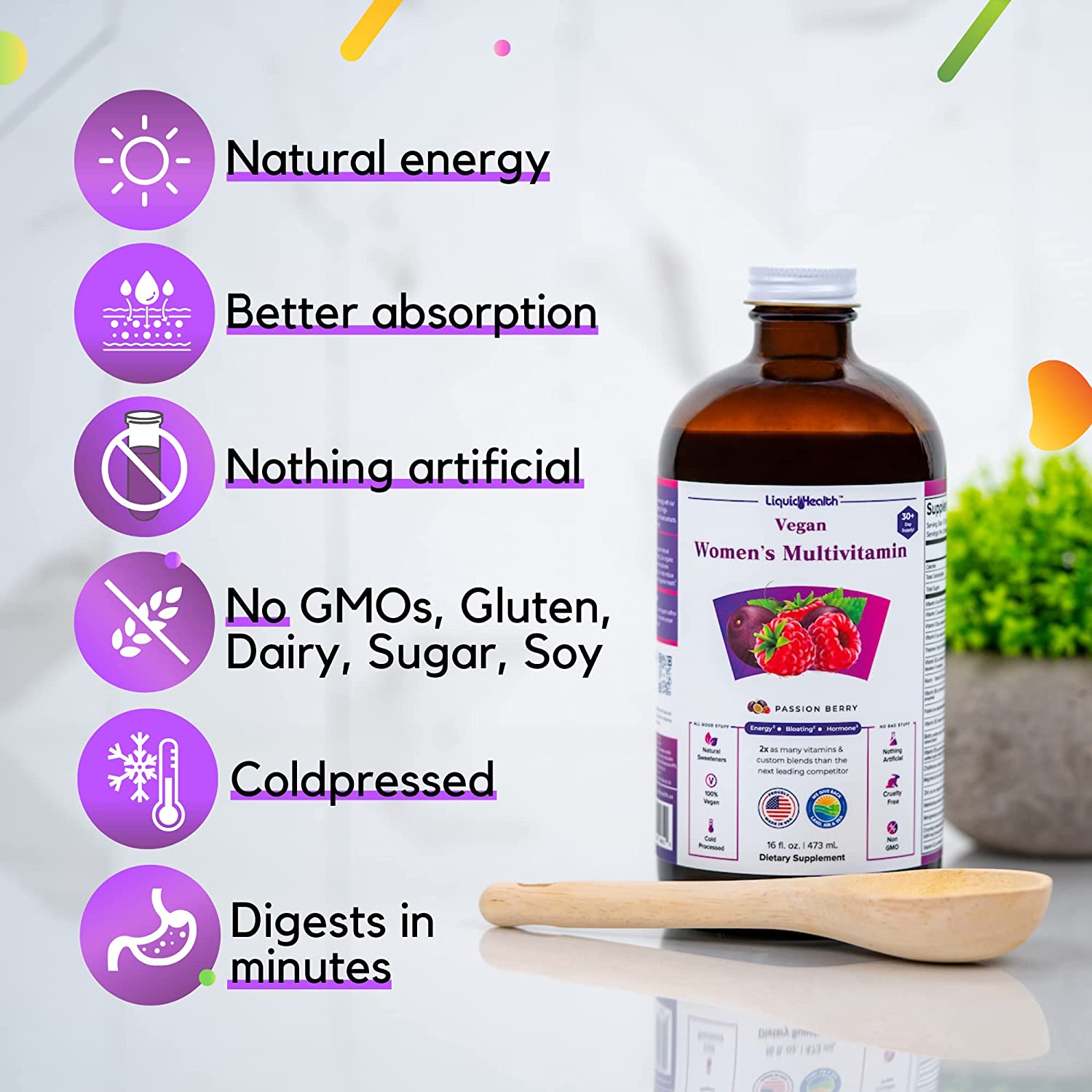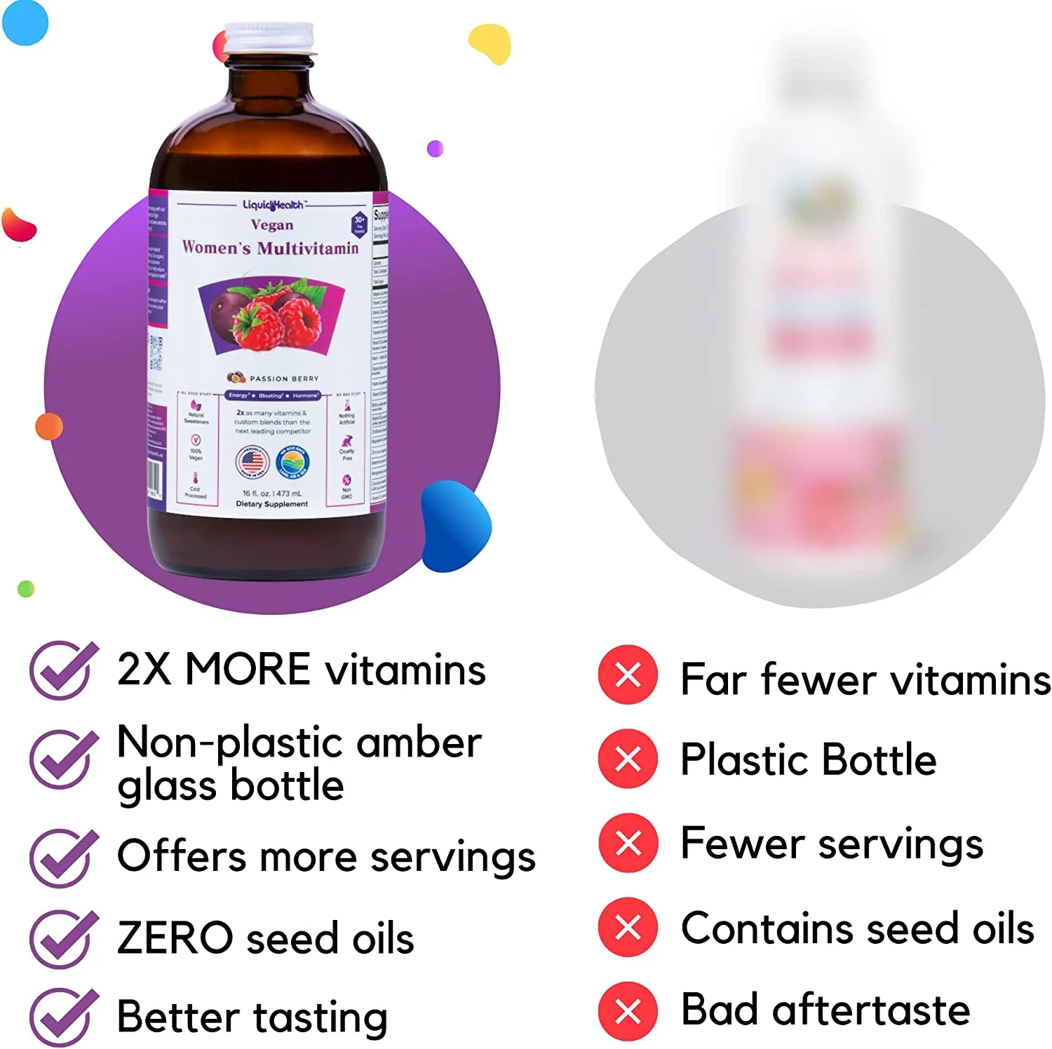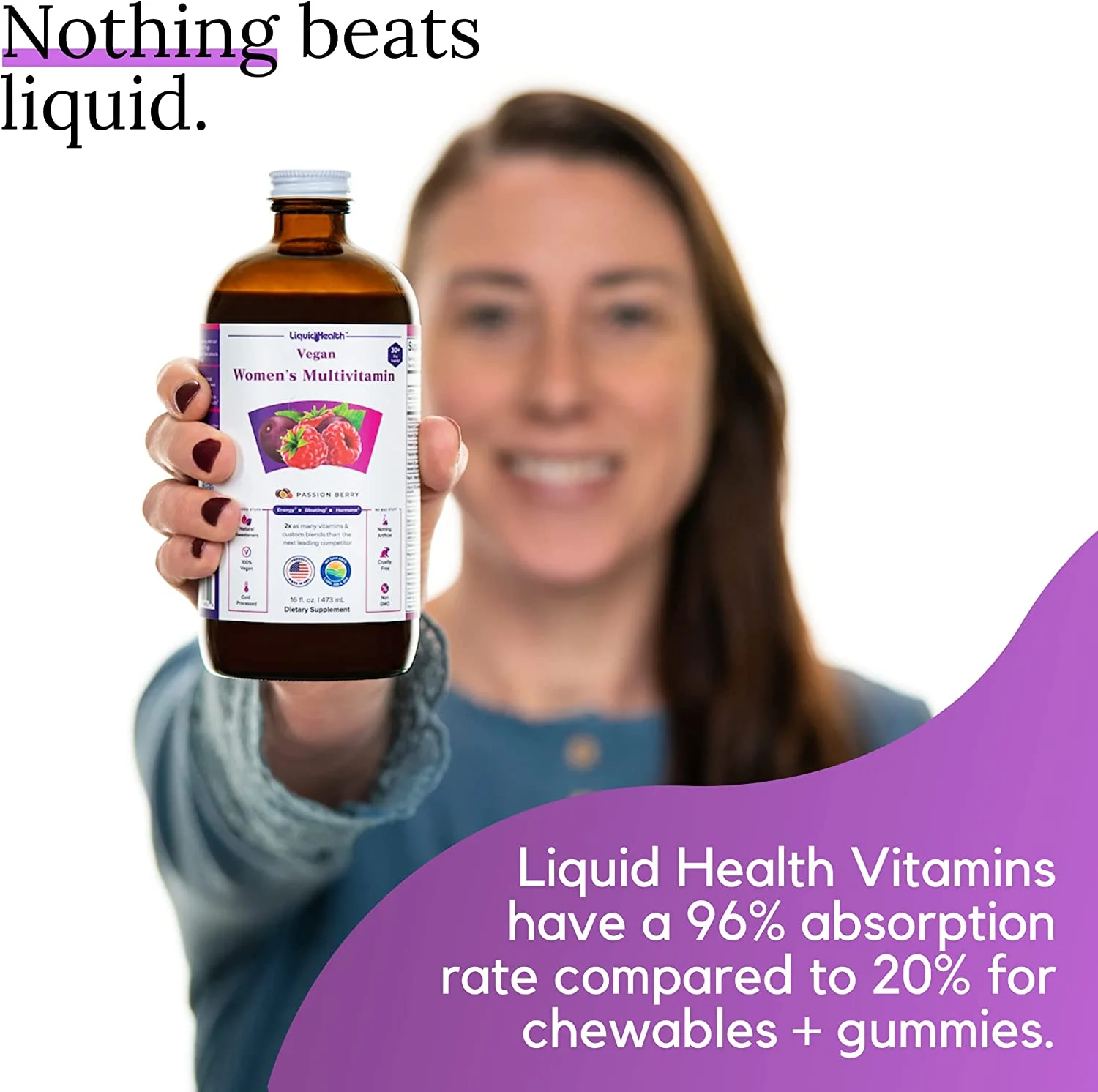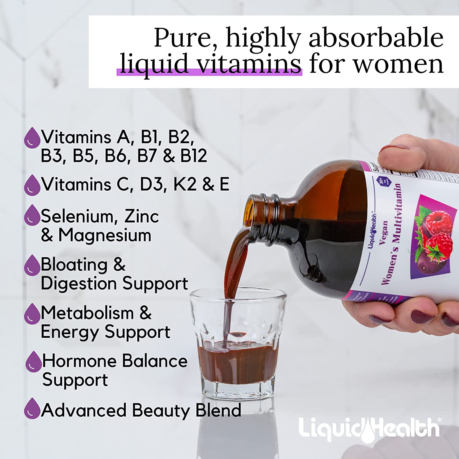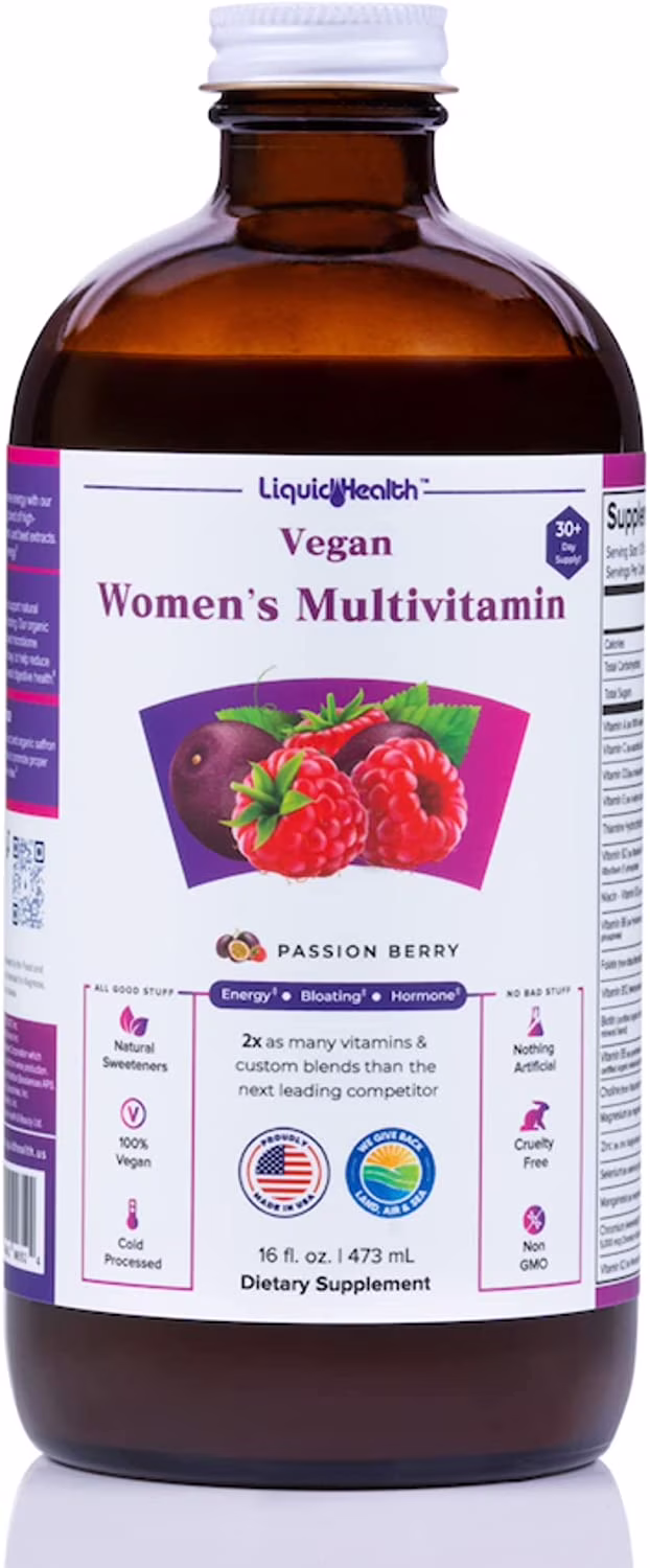 LIQUIDHEALTH Vegan Liquid Multivitamin for Women with Biotin, Folate, 16 fl Oz