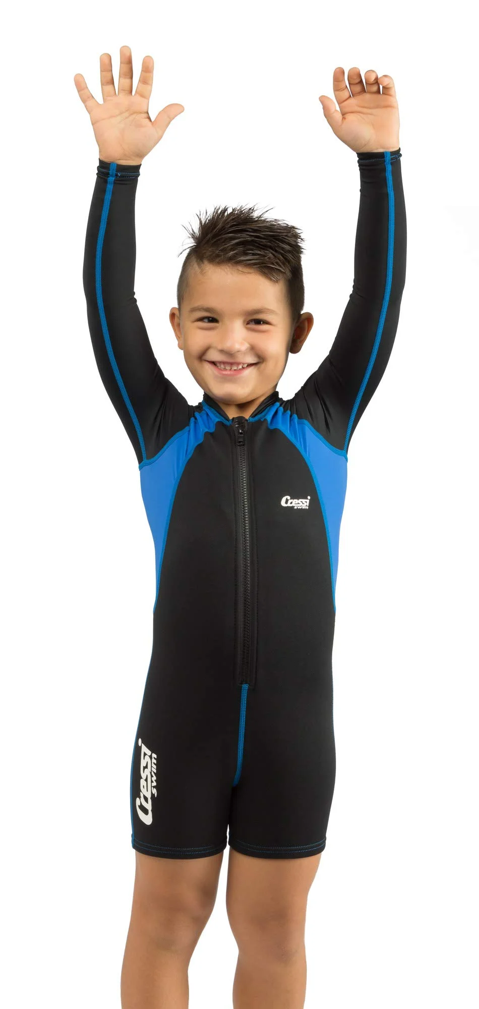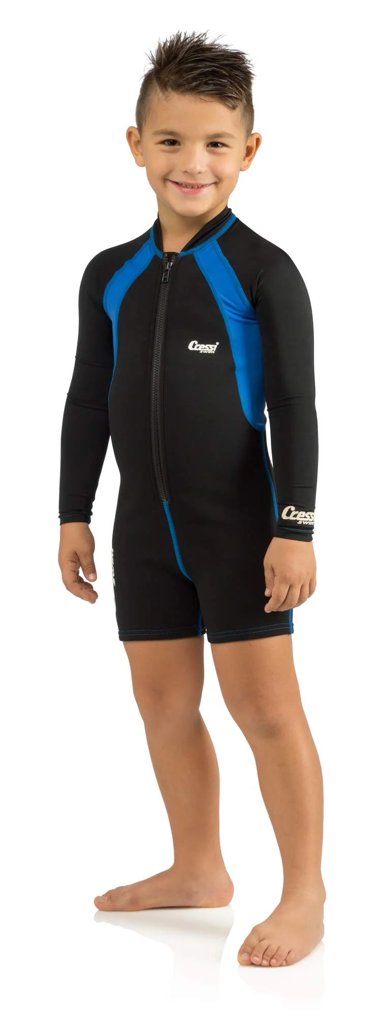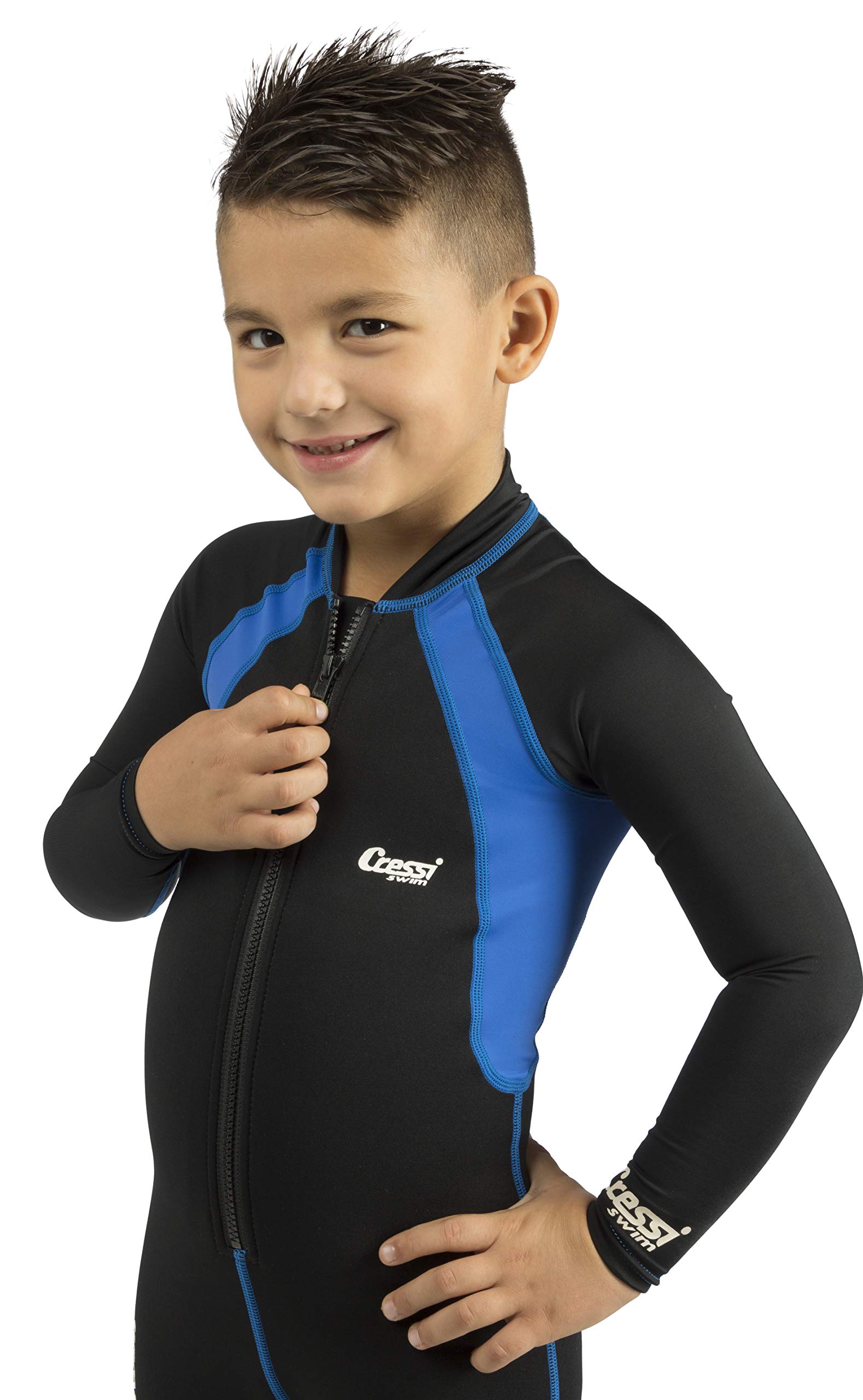 Cressi Boy's Swimsuit Long Sleeve One-piece Shorty (Black/Blue, XX-Large)