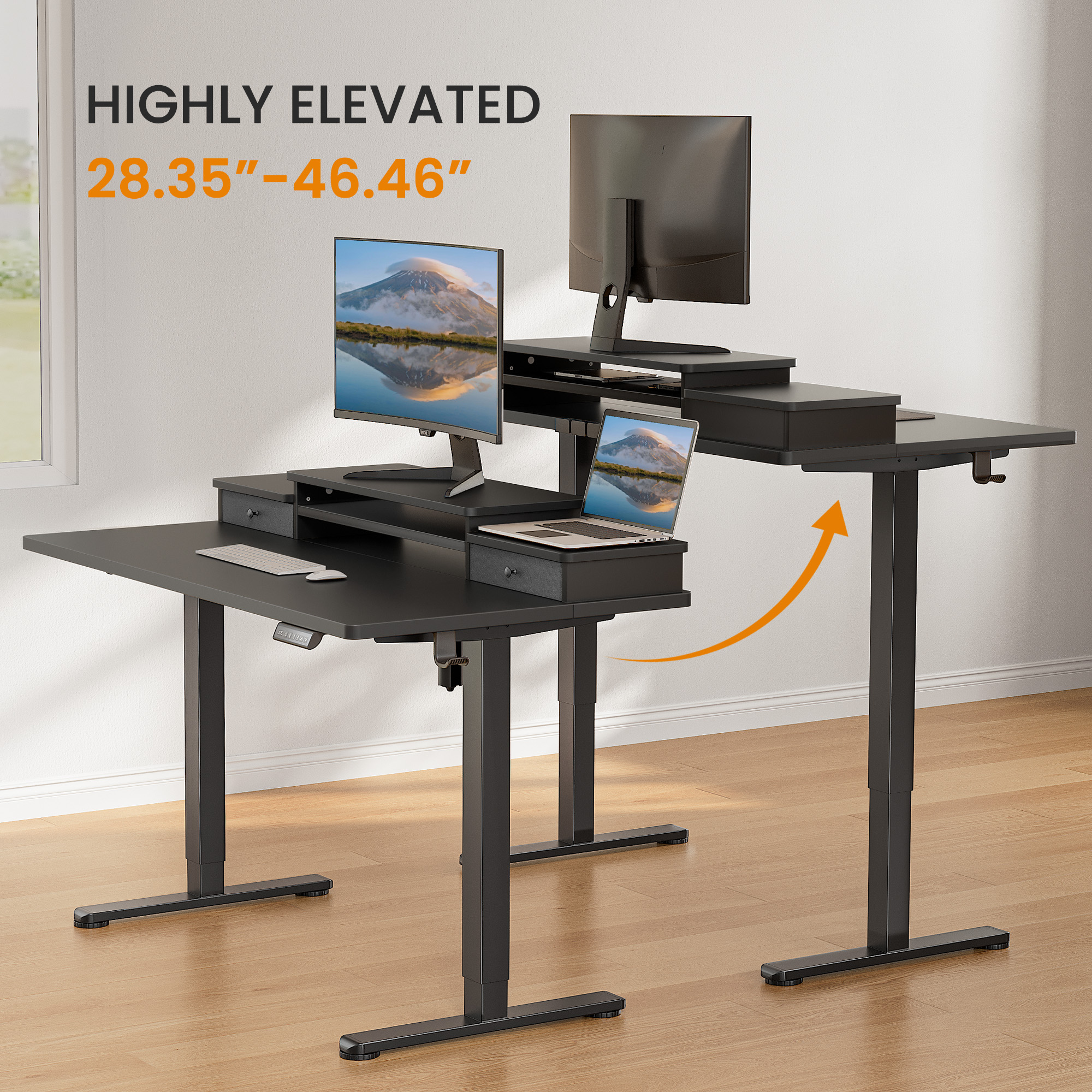 Somerset Sit to Stand L Desk Set with Bookcase in Fresh Walnut - Engineered Wood